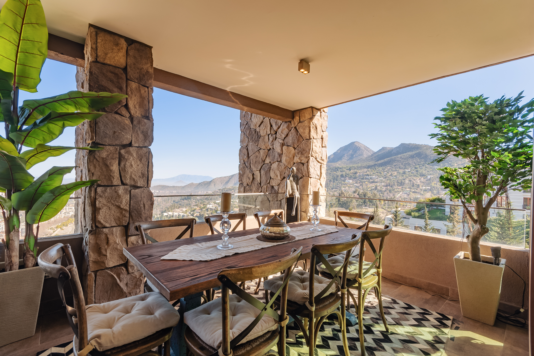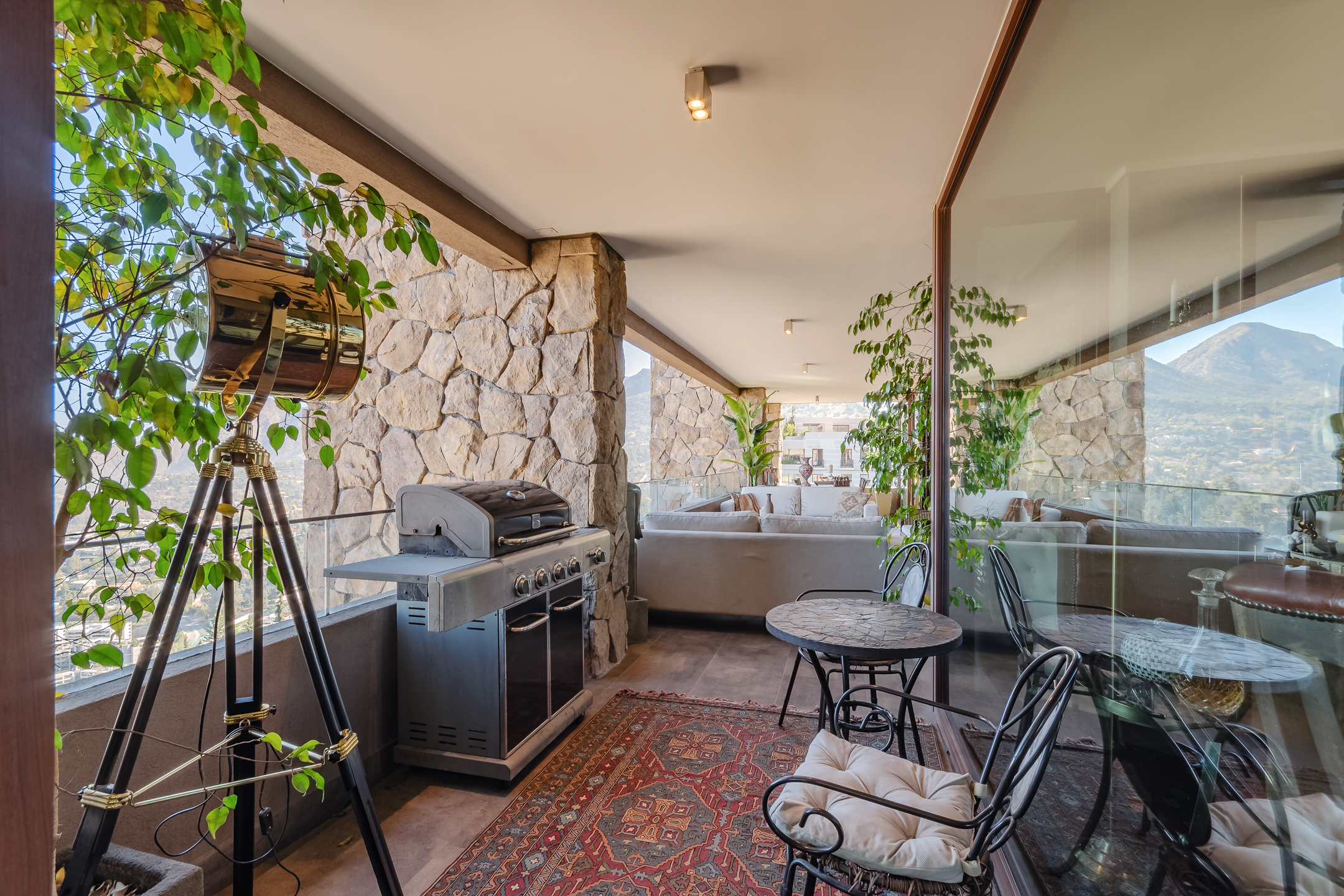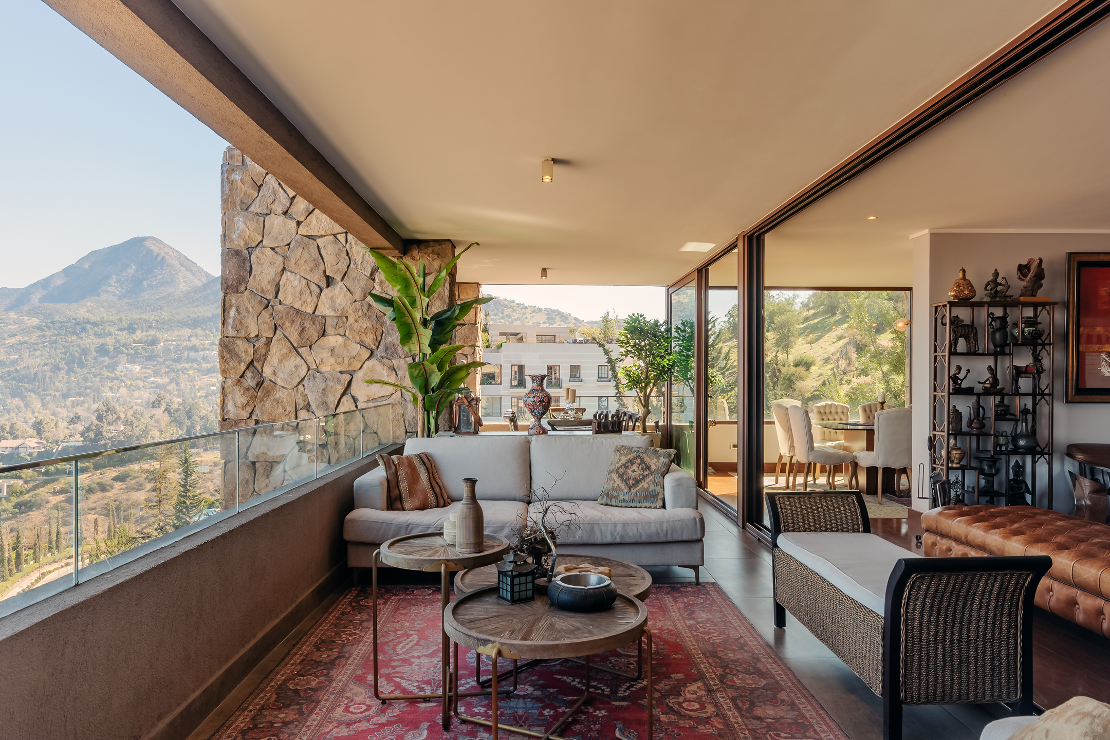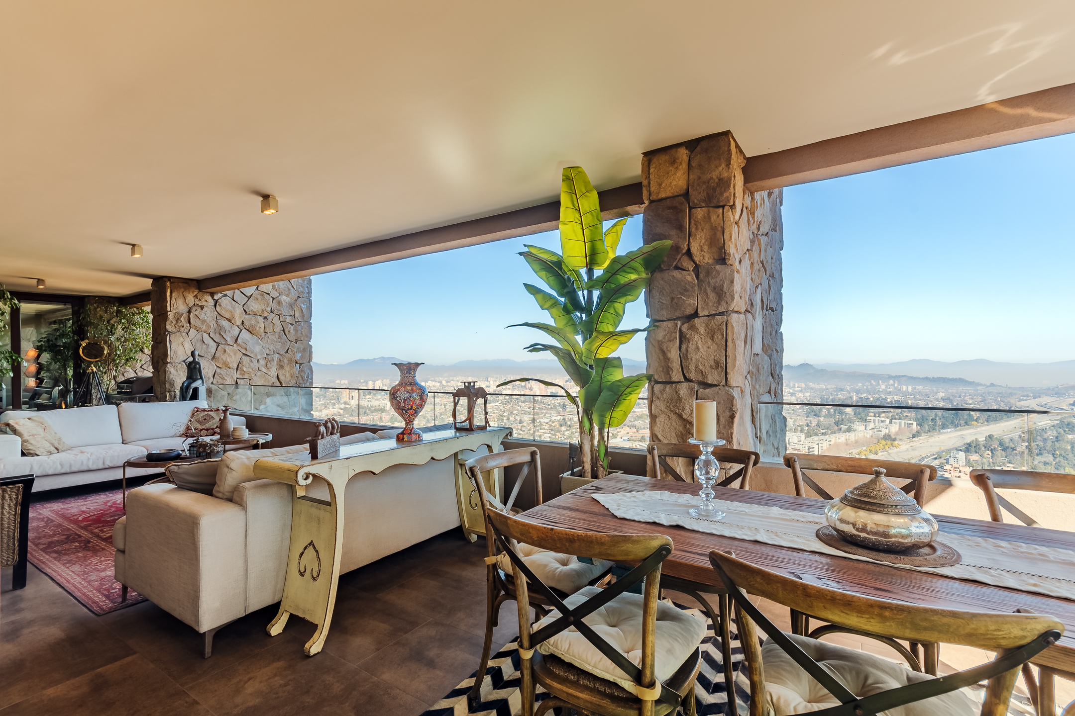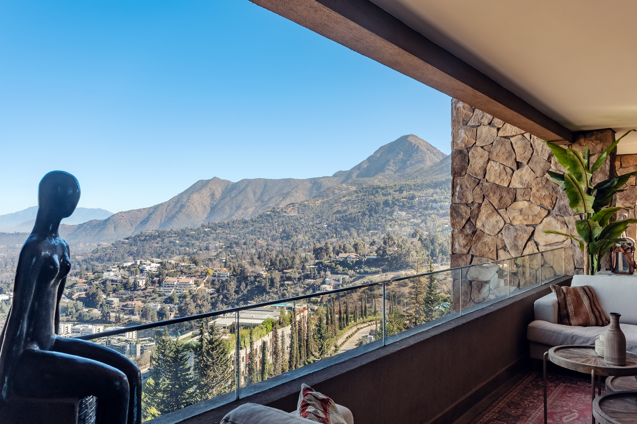 Amazing Furnished Apartment for Rent Every piece of furniture has been specially selected for each space, giving a unique identity to this exclusive apartment located in Condominio Mediterráneo with the best view of Santiago. Large Entrance Hall Guest Bathroom Spacious Living Areas: Living room and dining room are separate but connected by a large 3-room terrace, creating a great space ideal for sharing and enjoying. The dining room features a table for 12 people. Master Bedroom Area: Master Bedroom: Includes a living area and access to the terrace. Office: Connected to the master bedroom by sliding doors. Hallway: With double walk-in closets. Main Bathroom: Marble, jacuzzi, double sink, and lots of natural light. Additional Areas: Family Room Second Bedroom: Currently used as an office. Bathroom Third Bedroom: En-suite. Modern Kitchen: Equipped with plenty of storage cabinets, a central island, and a leather sofa. Laundry Room Service Bedroom and Bathroom Specifications: Large Windows: Provide natural light and warmth to each space. Wood Floors Carefully Chosen Wallpapers for each area of the apartment. Radiant Floor Heating Terrace: Integrate with the living and dining rooms through fully stackable windows. Orientation: West, North, and South. Three Parking Spaces Large Storage Room Building Amenities: Double Security at Access Outdoor Pool Well-Equipped Gym Multipurpose Room