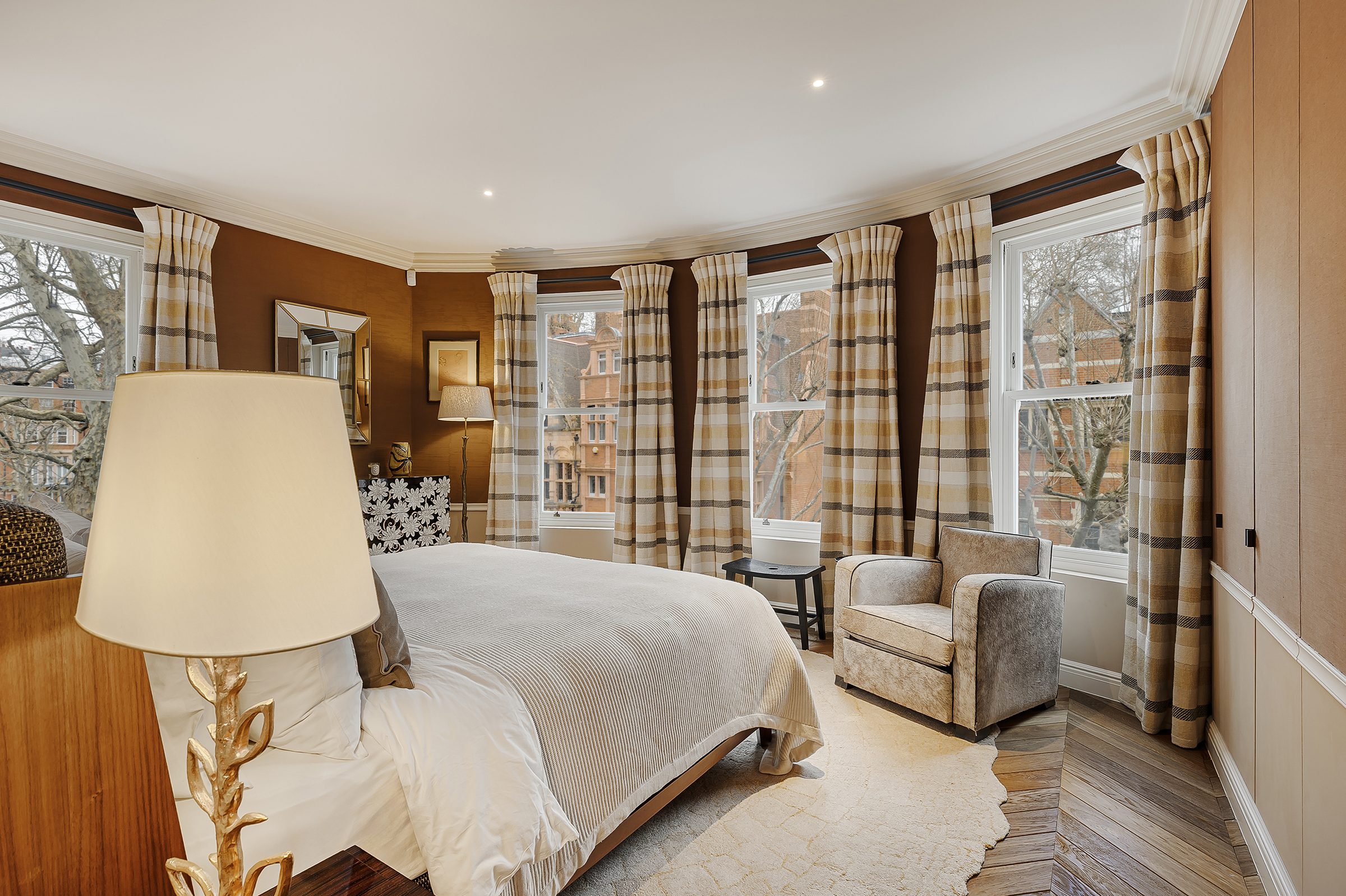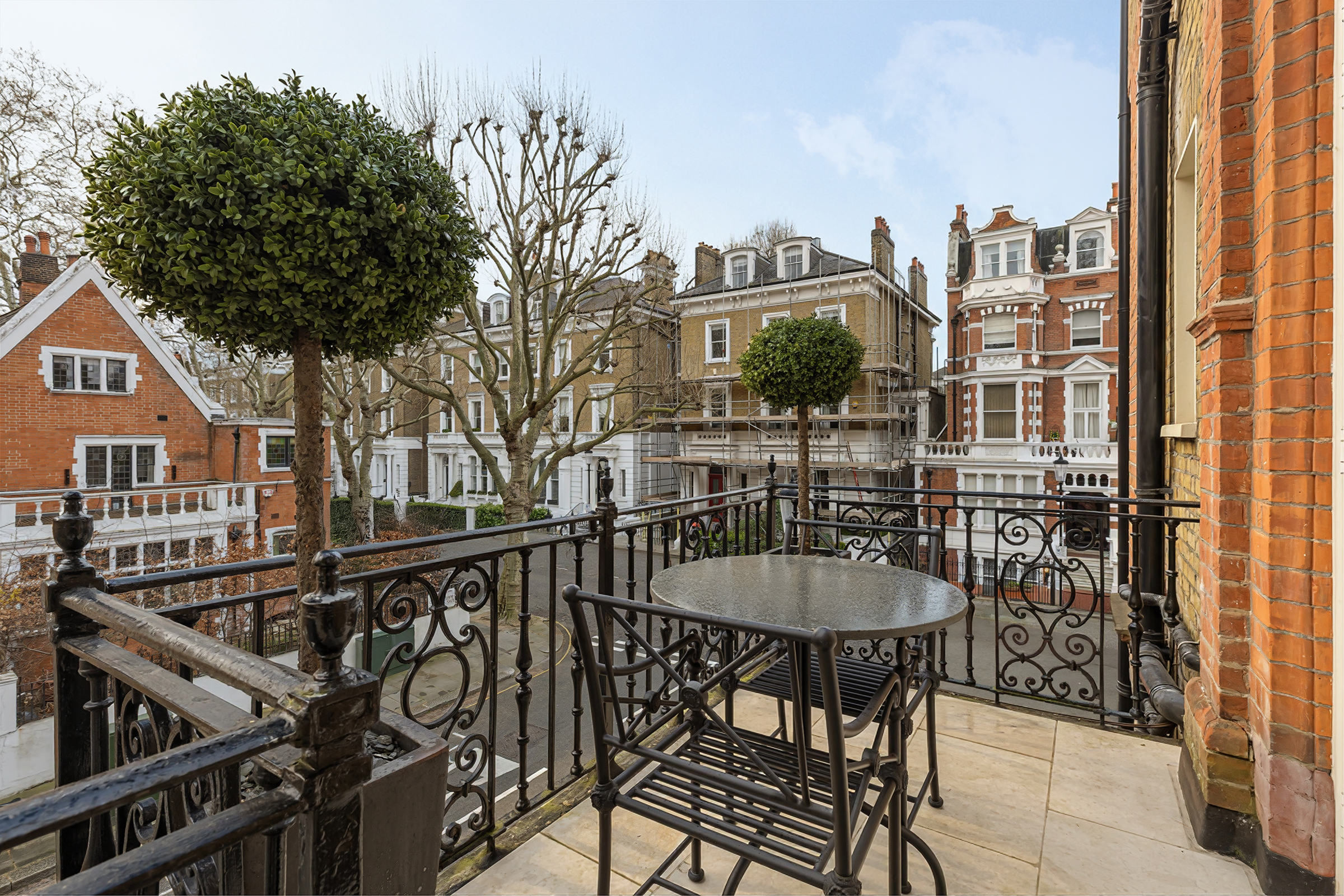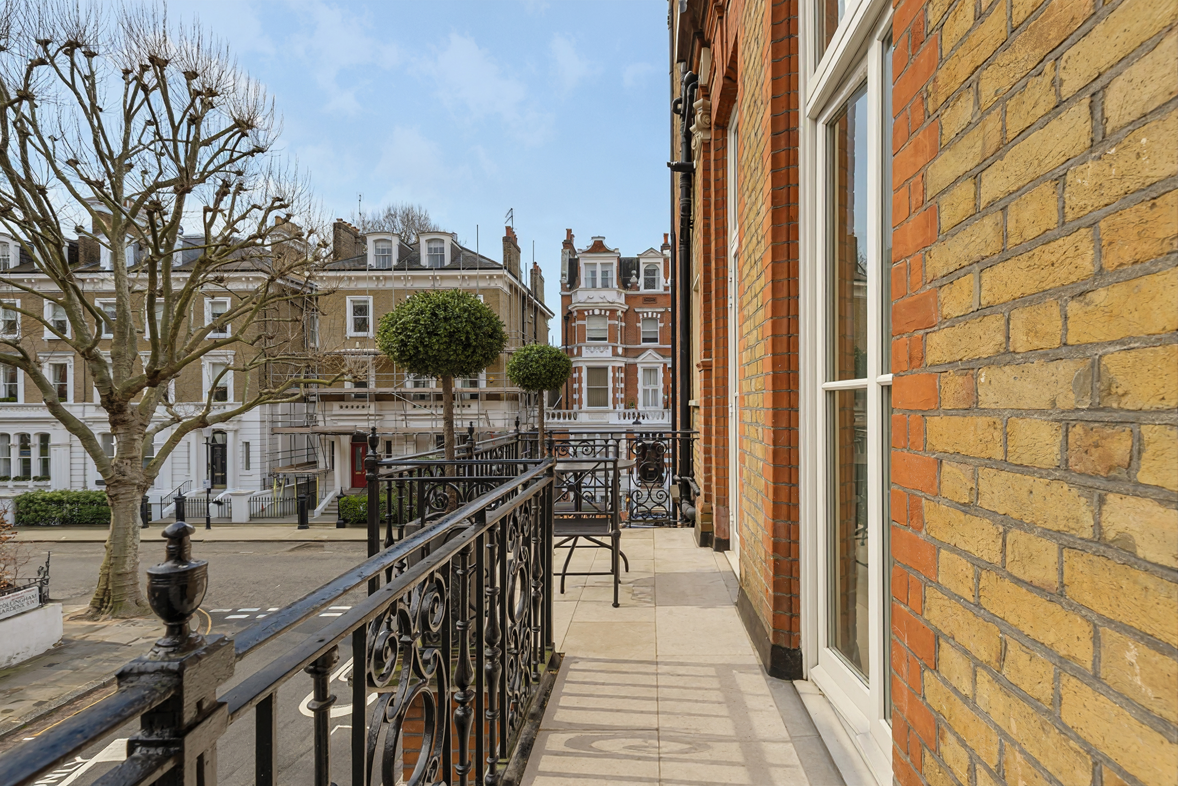 The outdoor offering is exceptional, with a rare combination of a roof terrace, two balconies and access to the residents’ garden square. The views across Bramham Gardens are uninterrupted and verdant, lending a calm, almost pastoral quality to the setting despite its central location.