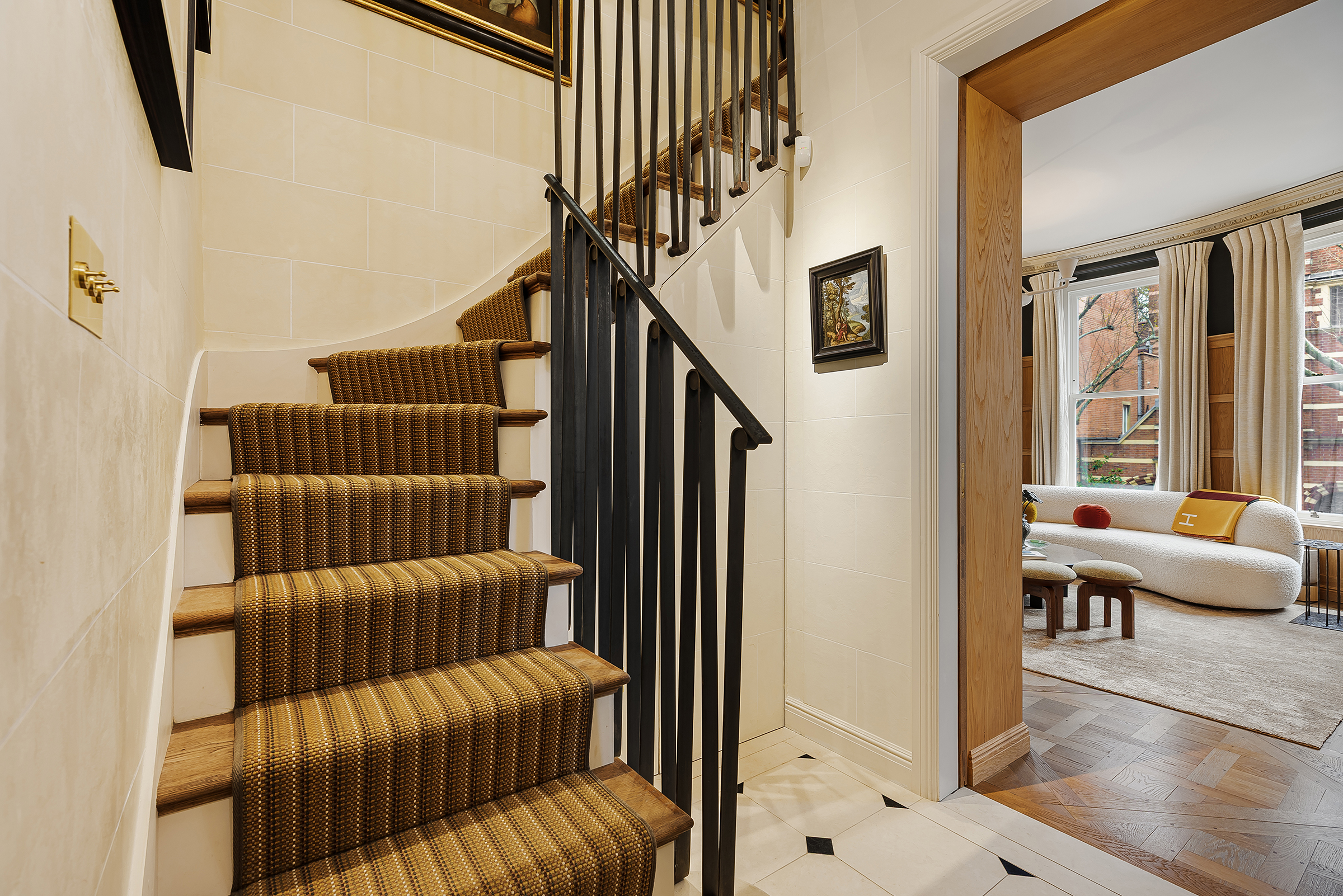 This beautifully reimagined lateral apartment has been carefully composed to create something both elegant and deeply comfortable. Set across the upper floors of a handsome red-brick building, the apartment unfolds with a natural rhythm, each space subtly connected yet distinct in character.