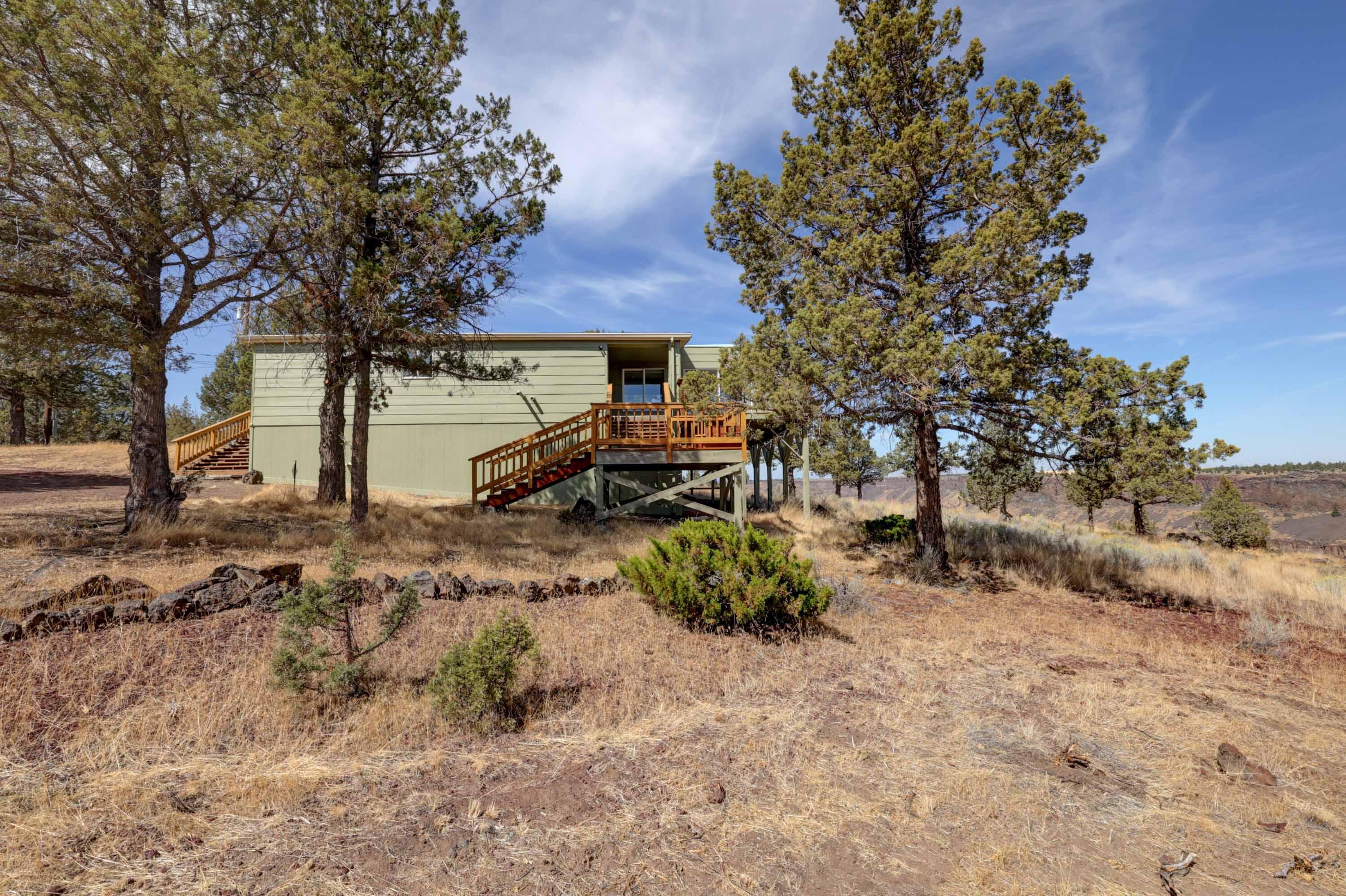 Here is a fantastic opportunity to purchase 3.53 acres (across two lots) on the rim overlooking the original 1916 CRR homestead below. Live in the existing manufactured home and take in the views & wildlife while you plan your dream home! The lots are narrow at the street and widen as you move toward the rimrock w/views of the Crooked River Canyon below and the Grey Butte/Smith Rock area to the southwest w/potential Cascade Mountain views if you build a two-story home. Community amenities include the CRR Golf Course & Pro Shop, RV Park, MacPherson Park (w/pavilion for picnics, parties, reunions, etc.), Panorama County Park (w/children's playground), Lions' Memorial Park, Dick Chandler Field (baseball/softball), tennis/pickleball courts, basketball court, swimming pool, disc golf course, horse riding arena, general store, saloon, senior center (in the original main ranch house), as well as miles of walking/hiking/riding trails, and access to the both the Crooked and Deschutes Rivers.