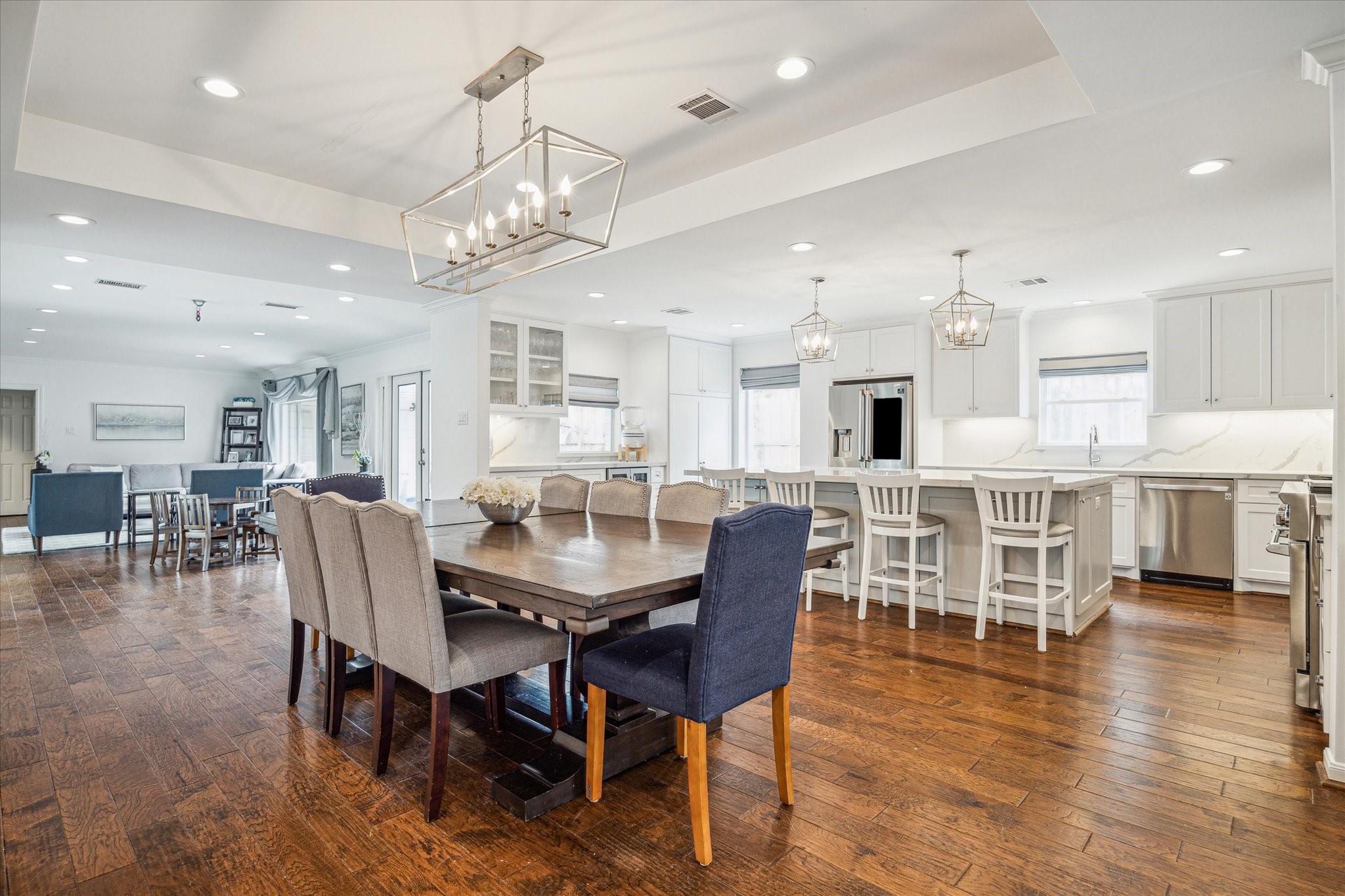 Welcome to this charming 5 bedroom ranch style home located on a quiet tree lined street in the sought after neighborhood of Briargrove! This home was beautifully renovated in 2019 with stunning finishes and function features. The incredible backyard offers ample turfed greenspace allowing plenty of room for entertaining and for children to run and play. The chef style kitchen offers high-end appliances, an oversized eat-in island, quartz countertops, and ample cabinet space allowing for TONS of storage!! This home also features richly stained hardwood floors throughout, LED recessed lighting, remodel primary bathroom and secondary bathroom, raised ceilings and features two primary suites. This happy home is also located within walking distance of the area pool and park. This one won't last long. Call and schedule your private tour today.