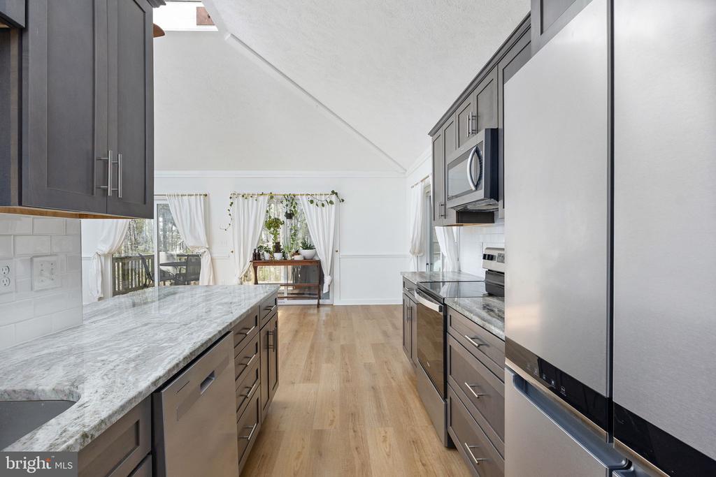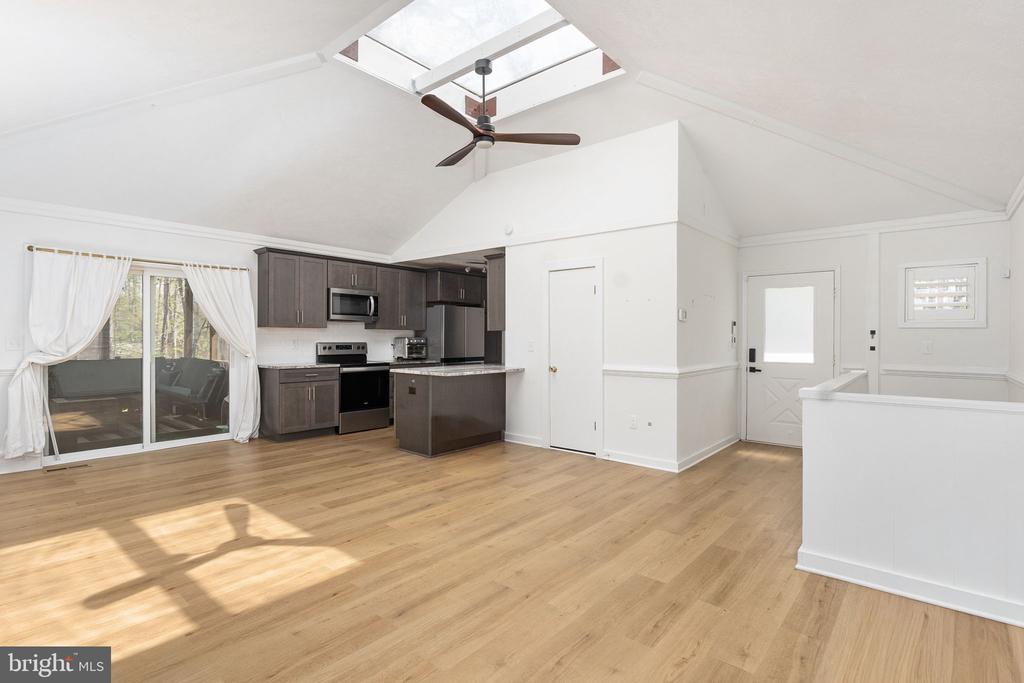 Lake of the Woods Gem! This remodeled home overlooks the golf course and offers privacy with updates throughout, including a renovated kitchen with stainless steel appliances, newer roof, updated windows, screened porch, and expansive 36' deck. The open floor plan features high ceilings, a large skylight, and abundant natural light, creating a bright and inviting space. The lower level includes a newly updated bathroom with custom glass shower, ideal for guests or additional living. Located in Lake of the Woods, this gated community is the perfect blend of resort-style living and private retreat. Don't miss out!