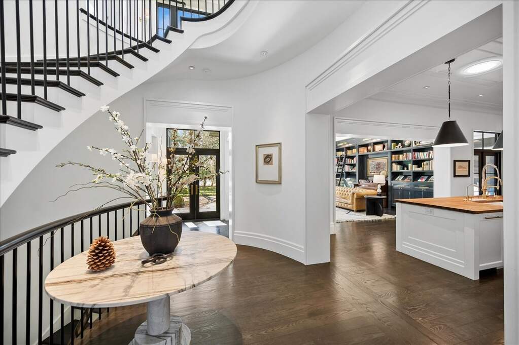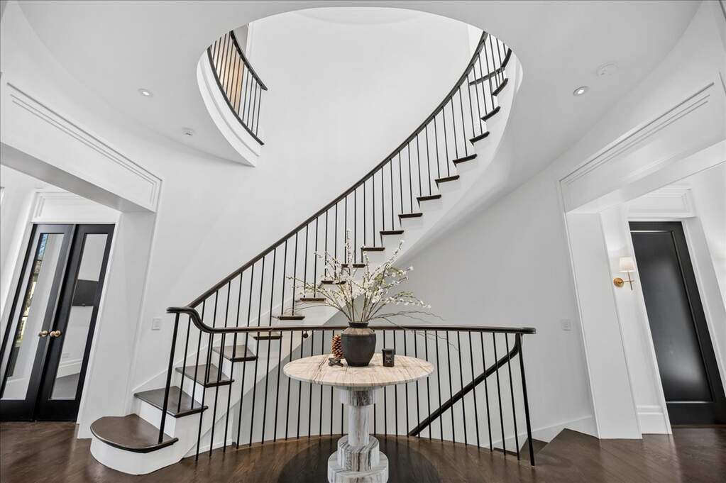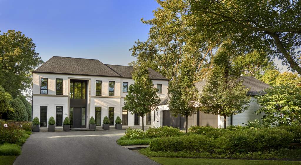 Welcome to 630 Stonegate in Glencoe-an extraordinary custom residence where contemporary architecture meets the timeless elegance of a French chateau. Built in 2016 by Highgate Builders and designed by the acclaimed architects at D Space Studios, this one-of-a-kind home was thoughtfully created for modern family living while honoring classic European inspiration. Set on nearly three-quarters of an acre, the home offers approximately 6,400 square feet of beautifully designed living space. A striking white brick facade with bold black accents sets the tone for the dramatic interiors. Guests are greeted by a breathtaking two-story foyer anchored by a sculptural floating elliptical staircase-an architectural centerpiece that immediately defines the home's sophisticated style. At the heart of the home, the expansive kitchen and family room create an effortless gathering space. Floor-to-ceiling glass doors dissolve the boundary between indoors and out, opening to thoughtfully designed outdoor living areas perfect for entertaining or quiet evenings at home. The residence offers five spacious bedrooms and 5.5 bathrooms, including a main-floor suite ideal for guests or multi-generational living. Upstairs, three bedrooms provide comfortable retreats, while the lower level includes an additional bedroom and expansive recreation spaces. One of the home's most remarkable features lies below grade: a spectacular 1,600-square-foot subterranean sport court with soaring 18-foot ceilings and a viewing lounge-an unforgettable private space for recreation and gathering. Outdoor living is equally impressive. The property features a private tennis court and a beautifully designed screened porch with television and heaters that opens to a hard-scaped patio and fire pit. The grounds are also pool-ready, with a thoughtful layout providing direct access to a full bath and laundry room. Additional highlights include a Control4 smart home system and an attached three-car garage. Elegant yet livable, bold yet timeless, 630 Stonegate is a rare architectural statement designed for the way families live today.
