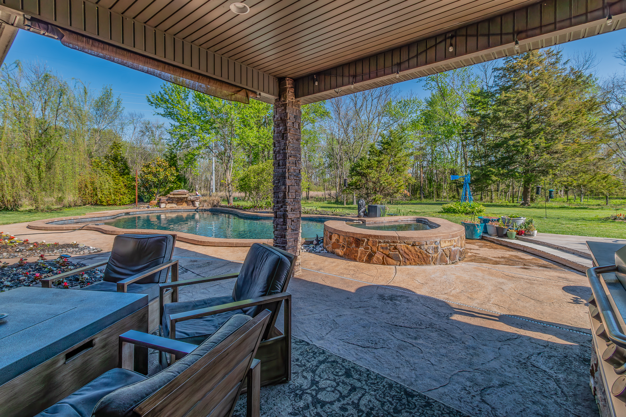 Don’t miss the opportunity to own this unique and versatile property offering 6.77 acres with private drive and park like setting in town. Stunning primary residence with resort-style Gunite, saltwater pool and a 3,600sf heated and cooled shop/warehouse building with office space. Primary residence with 4 bedrooms and spacious floor plan flanked with rich wood beams and stone accents throughout. Chef’s kitchen boasts double ovens and sinks, oversized island and walk-in pantry. Owner’s suite with fireplace and spa-like bath featuring walk around closet. Designed for outdoor entertaining with expansive patio and deck areas, kitchen, pool with tanning shelf and waterfall features and pool bath surrounded by natural beauty. Shop/warehouse is complete with 3 offices, full kitchen, powder room, plus shop area with 3 overhead doors. The opportunities are endless.
