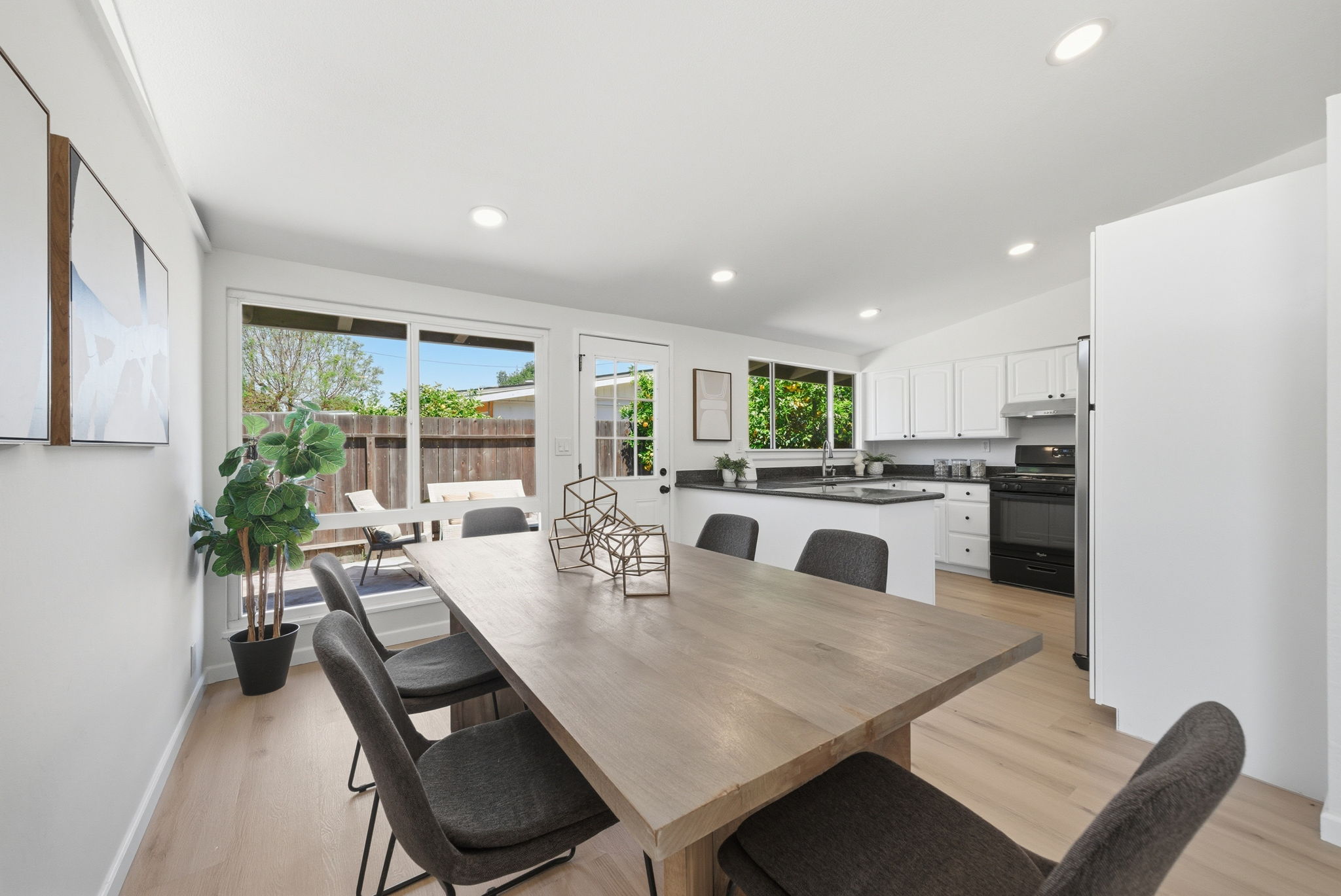 Ideally located in the heart of Silicon Valley, this mid-century 3-bedroom, 2-bath home offers a bright, functional layout with comfortable living spaces. The main living area features high ceilings and large windows that bring in natural light, creating an open and inviting feel. The kitchen connects easily to the living and dining areas, supporting both everyday living and casual entertaining. Wide-plank laminate flooring runs through the main spaces, adding warmth and continuity throughout the home. The three bedrooms are well-proportioned and offer flexibility for a variety of needs, whether for sleeping, working from home, or additional living space. Both bathrooms feature clean, simple finishes, and the overall layout is practical and easy to live in. The backyard provides generous outdoor space with mature fruit trees and room for entertaining, gardening, or future possibilities. Conveniently located near shopping, dining, and major commute routes. It is also close to many major companies such as Apple, Google, Amazon, LinkedIn, AMD, and ServiceNow, to name a few, with quick access to major freeways. A great opportunity for both first-time home buyers or seasoned investors.