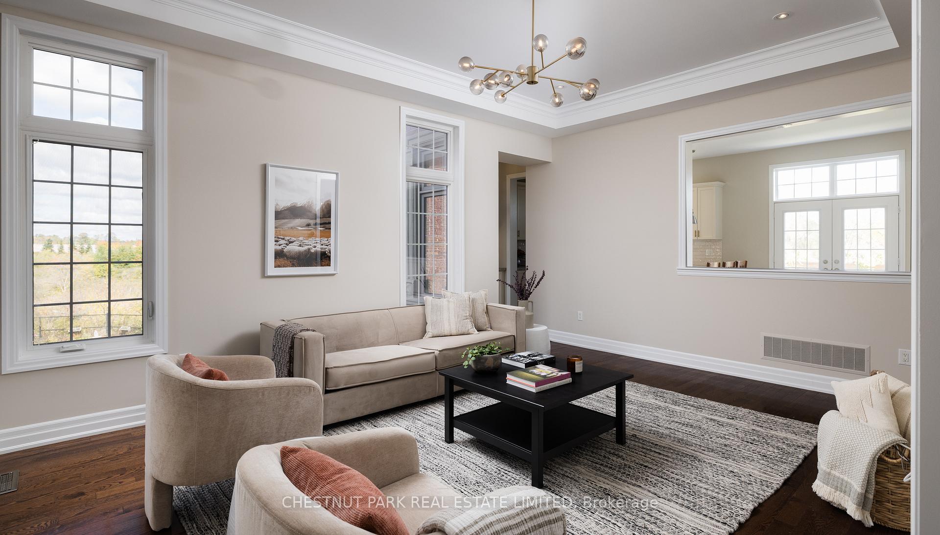 A rare find in King City this bright and spacious end-unit townhouse is tucked away on a quiet street and backs onto peaceful greenspace. Attached only by the garage above grade, it feels more like a detached home and sits on a wide pie-shaped lot with private views. With 2956 sq ft of finished living space above grade, plus a bright 1460 sq ft walk-out basement, there's room here for the whole family and then some. Inside, the main level features 10-foot ceilings, hardwood floors and a fresh coat of paint throughout. The layout offers a nice balance of open-concept flow & defined spaces, including a large family room and a dining area with a gas fireplace. The kitchen has been updated and offers lots of storage, a peninsula with seating, server/coffee station, space for a breakfast table, and access to a large deck that overlooks the backyard and green space. Large windows throughout the home let in tons of natural light and offer beautiful views from every room. Upstairs, there are four generously sized bedrooms & 9-foot ceilings. The primary suite has space for a sitting area, his-and-hers closets, and a large 5-piece ensuite with a soaker tub and a walk-in shower. The walk-out basement doesn't feel like a basement at all - it is bright and open, with two more bedrooms, each with their own ensuite bathrooms, making it ideal for extended family or guests. There's also a large family/rec room and a laundry area with two washers and one dryer, making laundry day a little easier for big households. This home offers a total of 6 beds and 6 baths, with plenty of space to live and grow. It's been designed for comfort and functionality, with thoughtful finishes and windows in all the right places to keep it light and bright all day long. Located in a great part of King City, you're just minutes from the King City GO Station, Highway 400, schools, transit, shops and restaurants. It's a quiet, friendly area with everything you need close by.