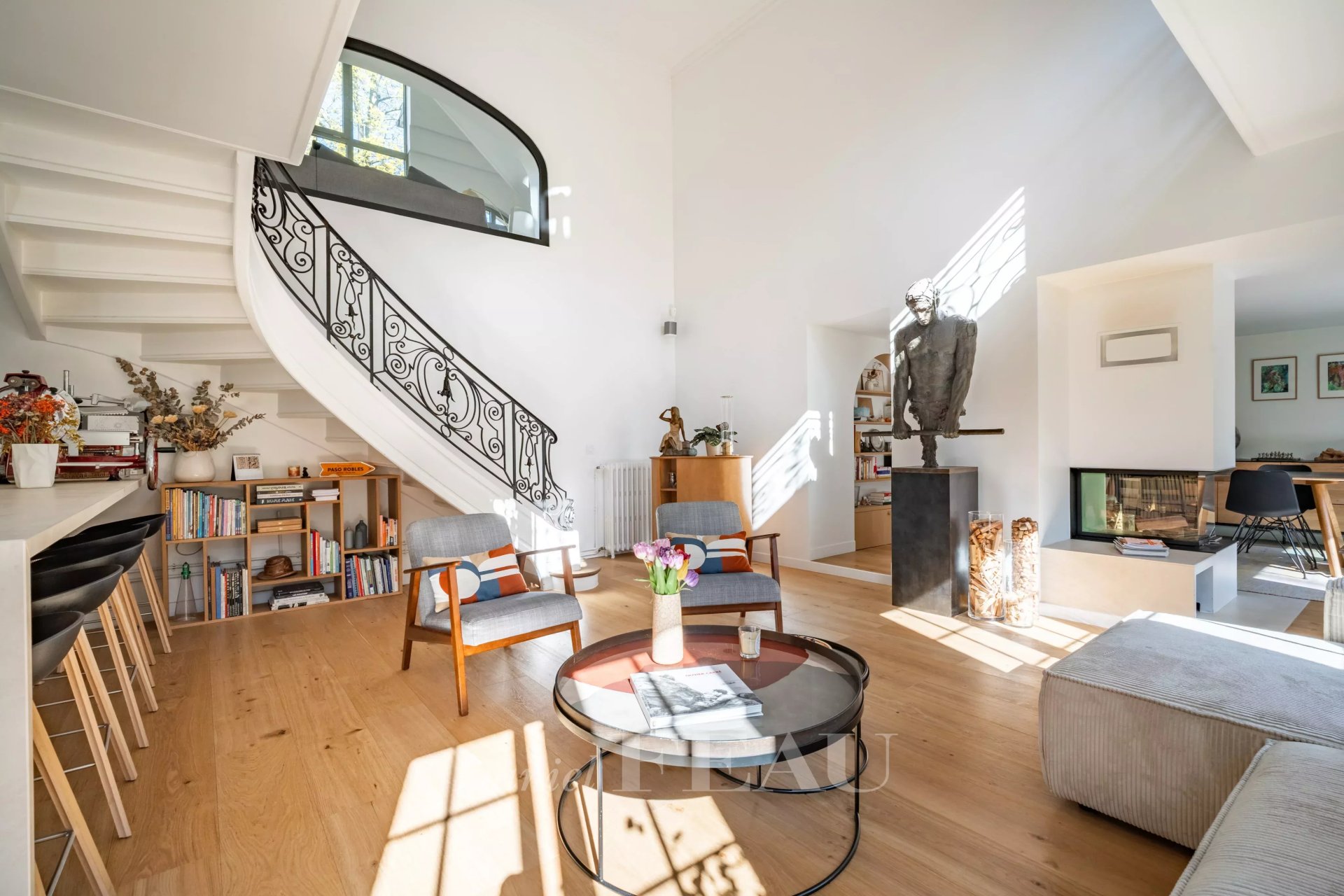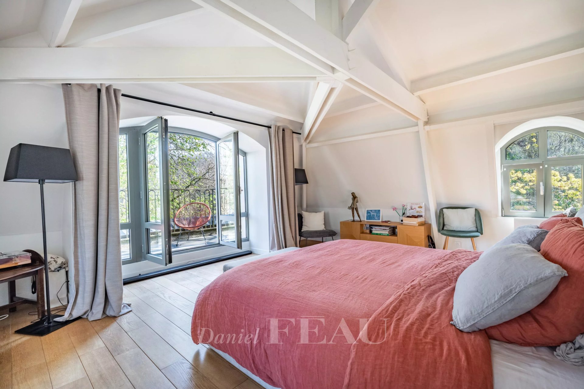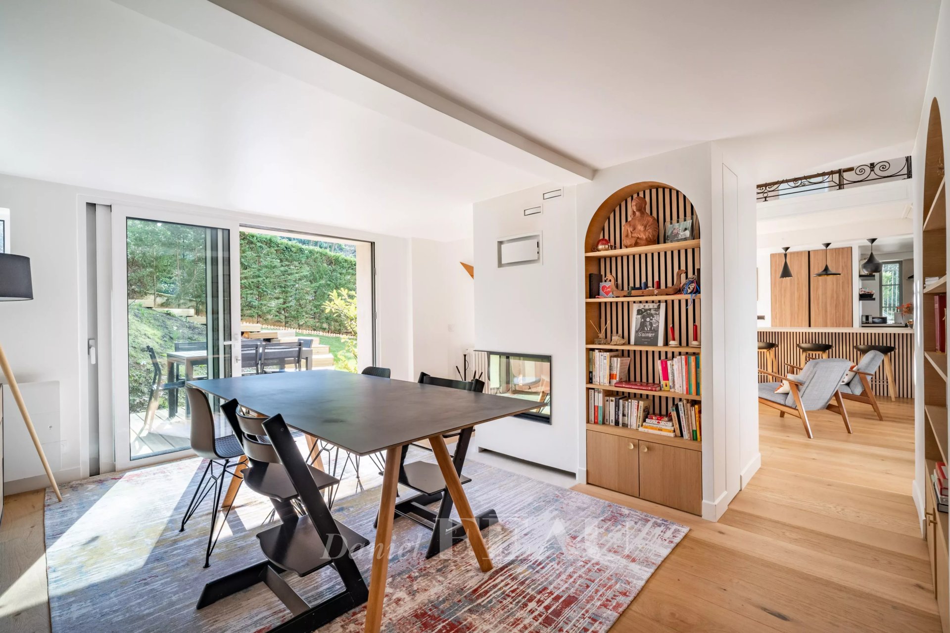 Flooded with natural light and offering generous volumes, this property has been thoughtfully designed so that everyone can enjoy their own living space in perfect harmony. The main house features four bedrooms, complemented by an adjoining studio that can easily be connected, allowing for the creation of a fifth bedroom as well as a second living room or an independent space to suit your needs.