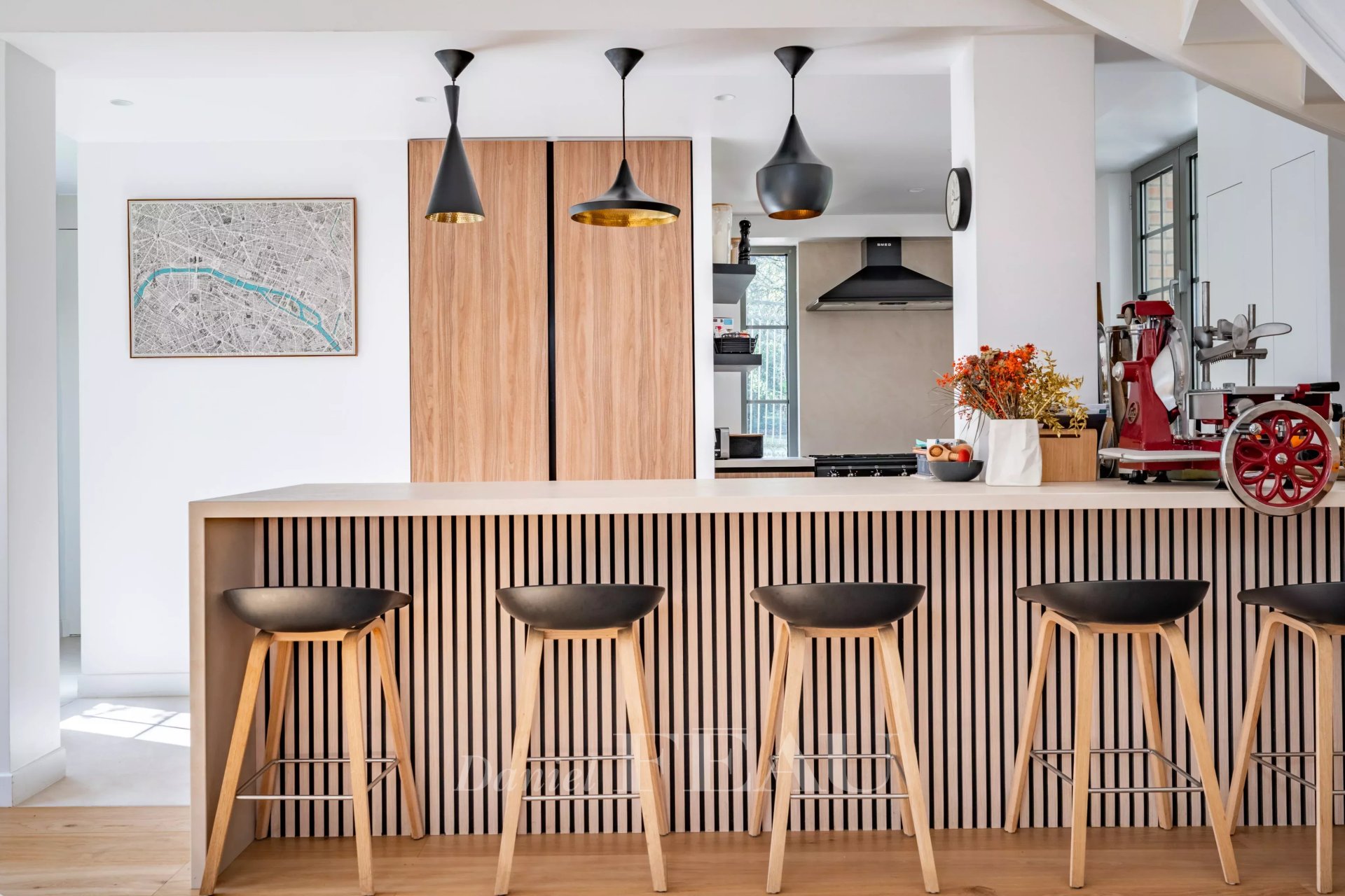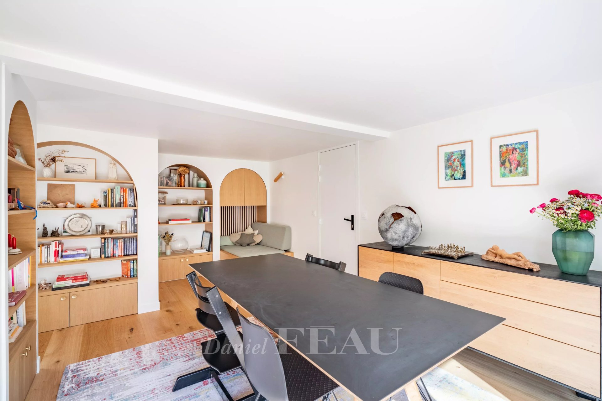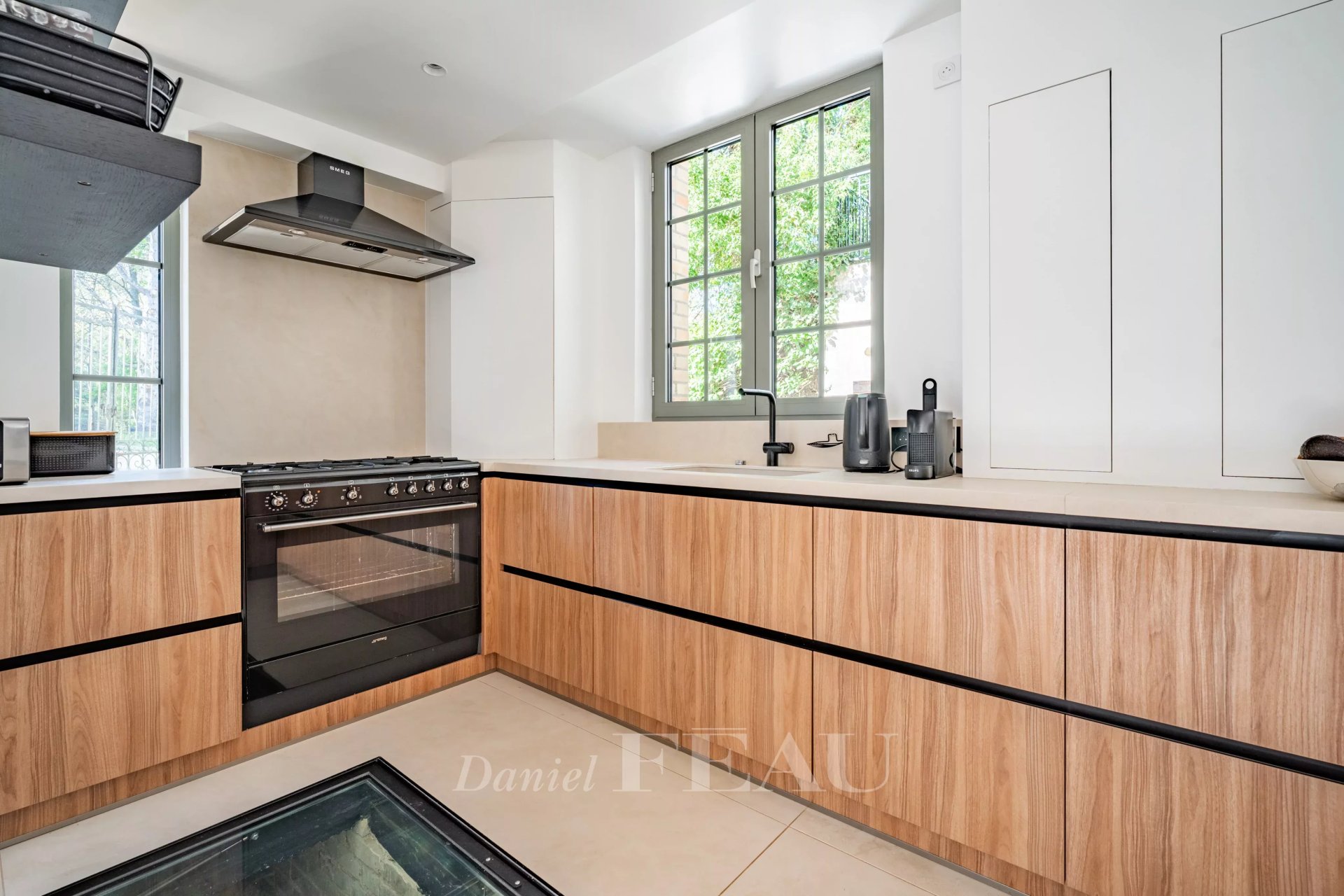 Flooded with natural light and offering generous volumes, this property has been thoughtfully designed so that everyone can enjoy their own living space in perfect harmony. The main house features four bedrooms, complemented by an adjoining studio that can easily be connected, allowing for the creation of a fifth bedroom as well as a second living room or an independent space to suit your needs.