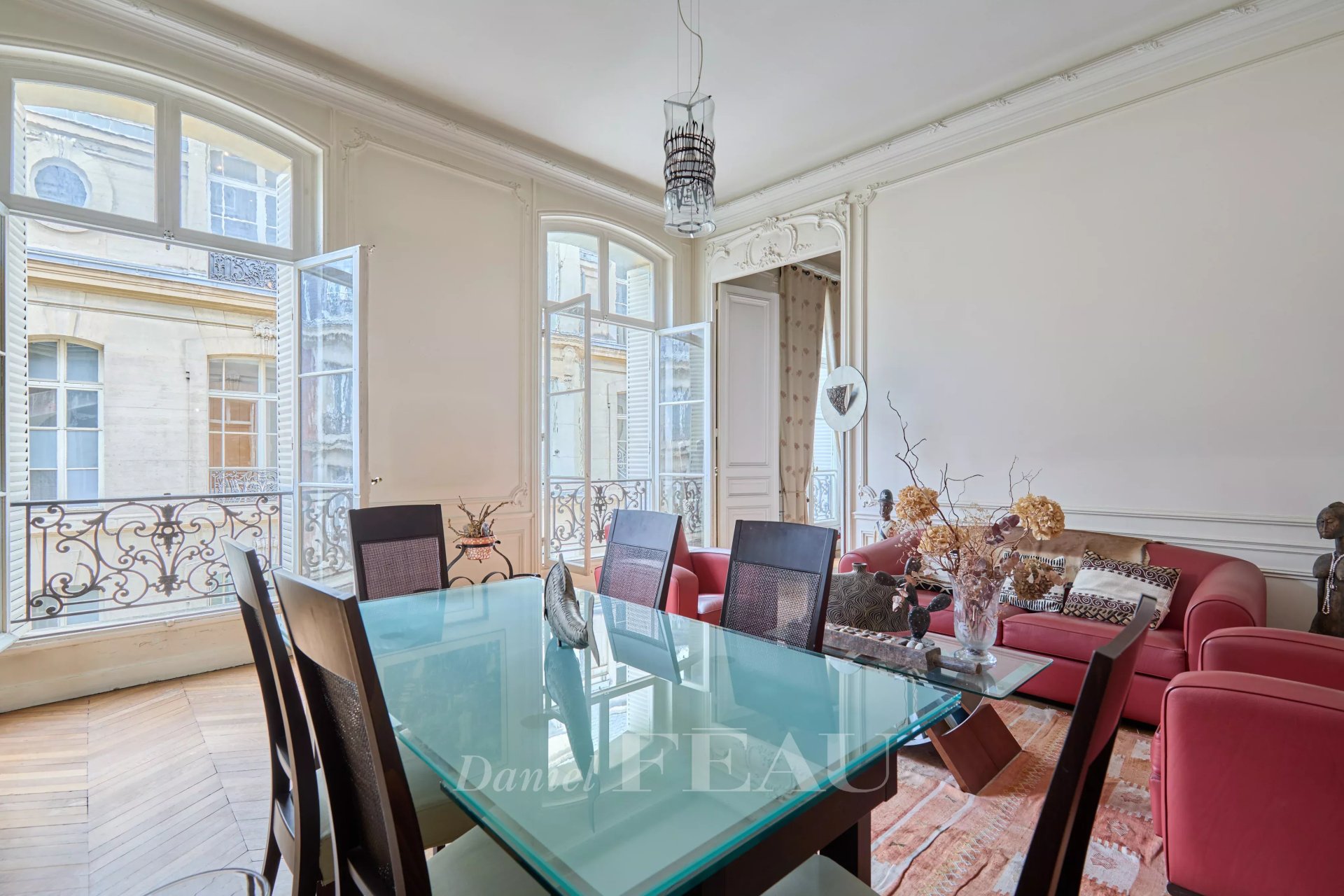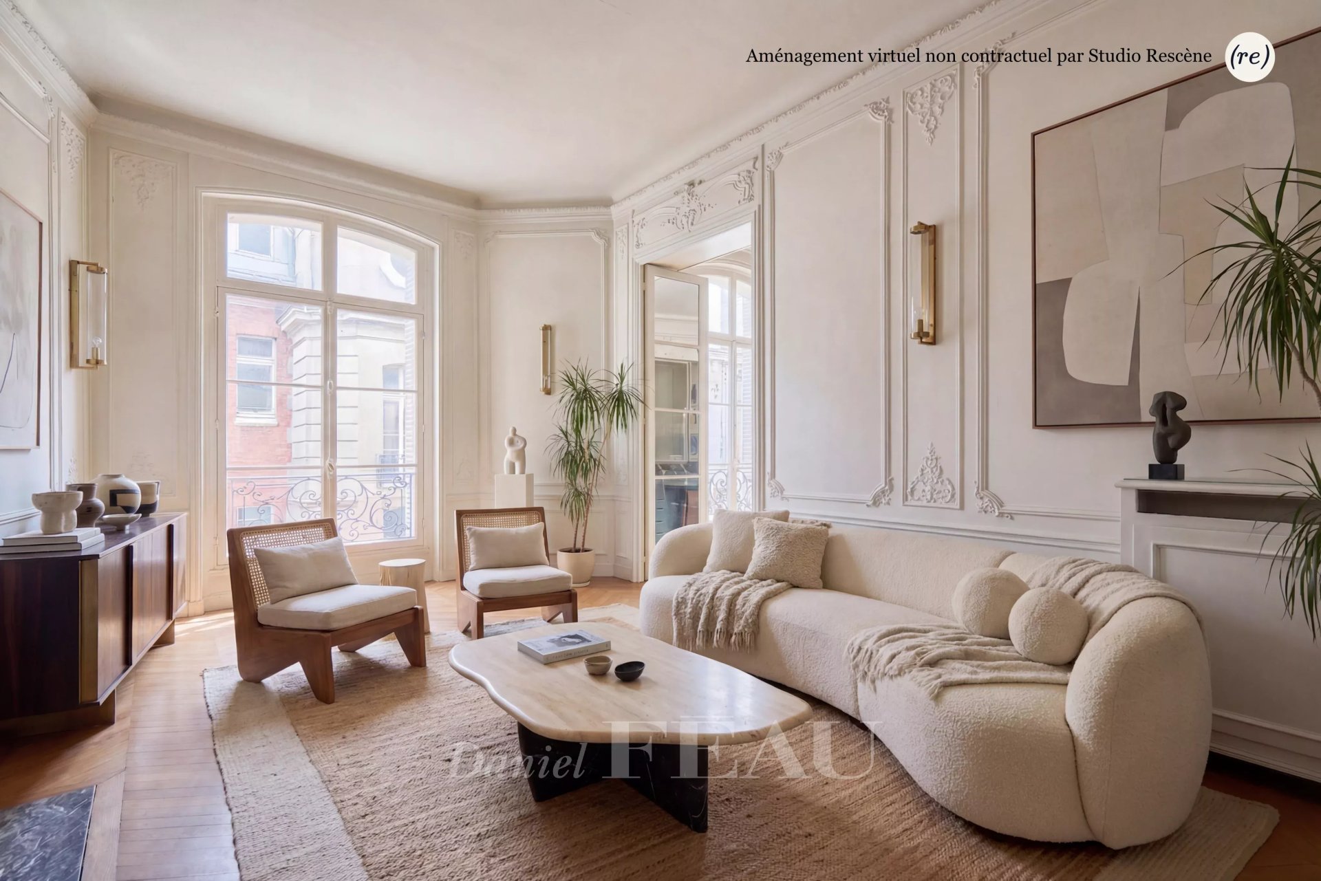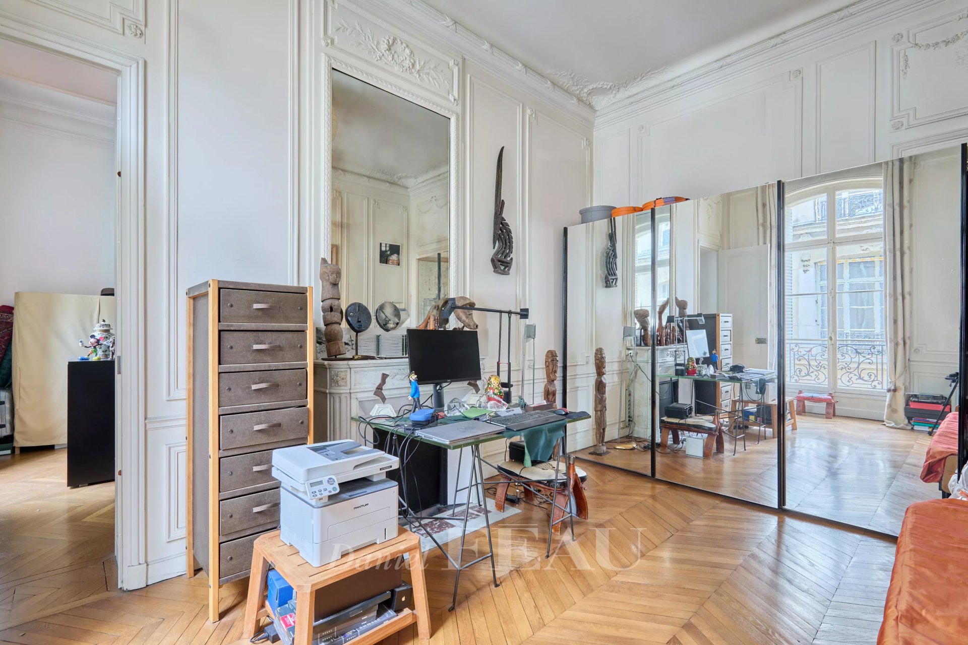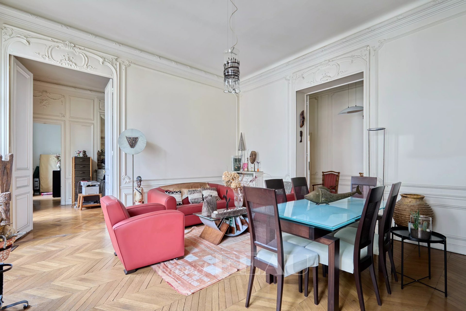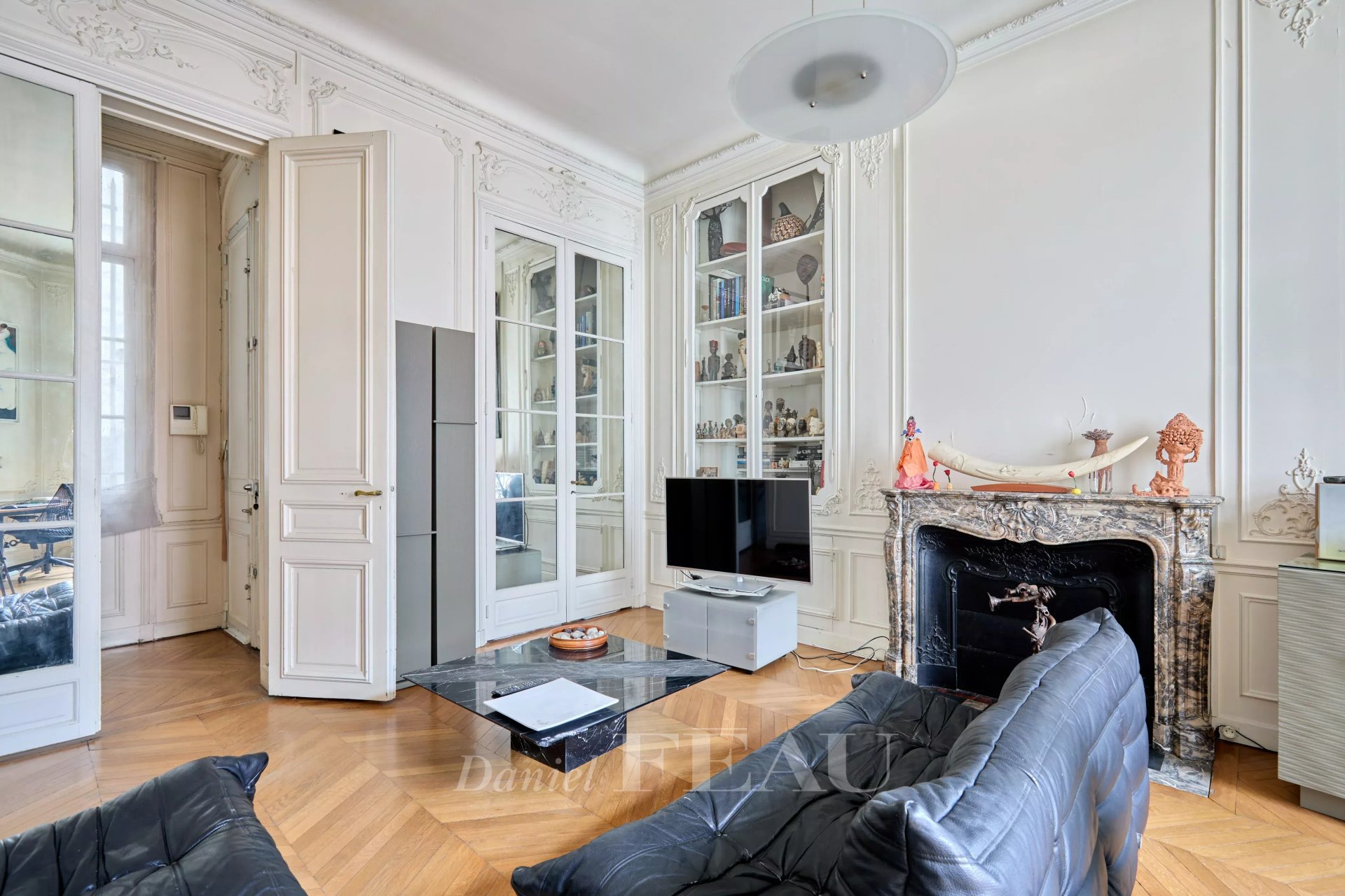 This bright apartment offering 174 sqm of living space as defined by the Carrez Law occupies the whole 3rd floor of a luxurious period building located in the immediate vicinity of leafy parc Monceau, the shops and the schools. Featuring 3.45 metre high ceilings with mouldings, parquet flooring and fireplaces, it includes a living/reception room, a kitchen, four bedrooms, a bathroom, a shower room, two separate wc, a dressing room and a utility room.