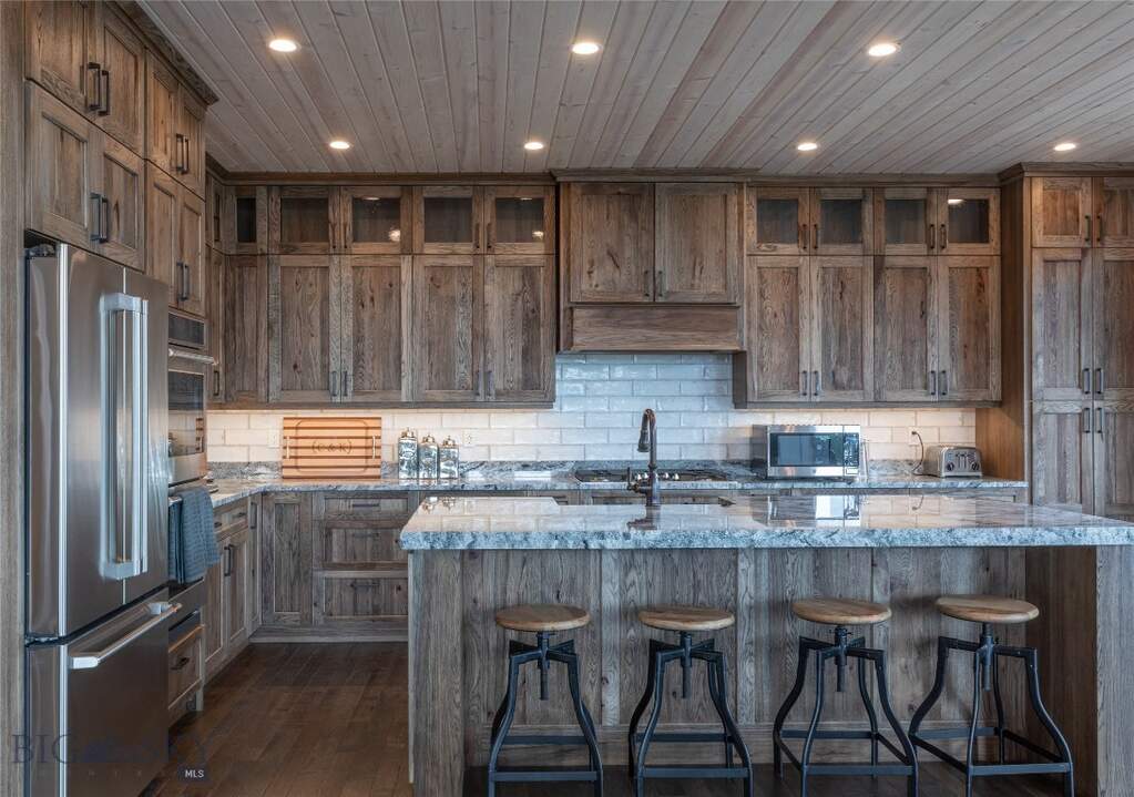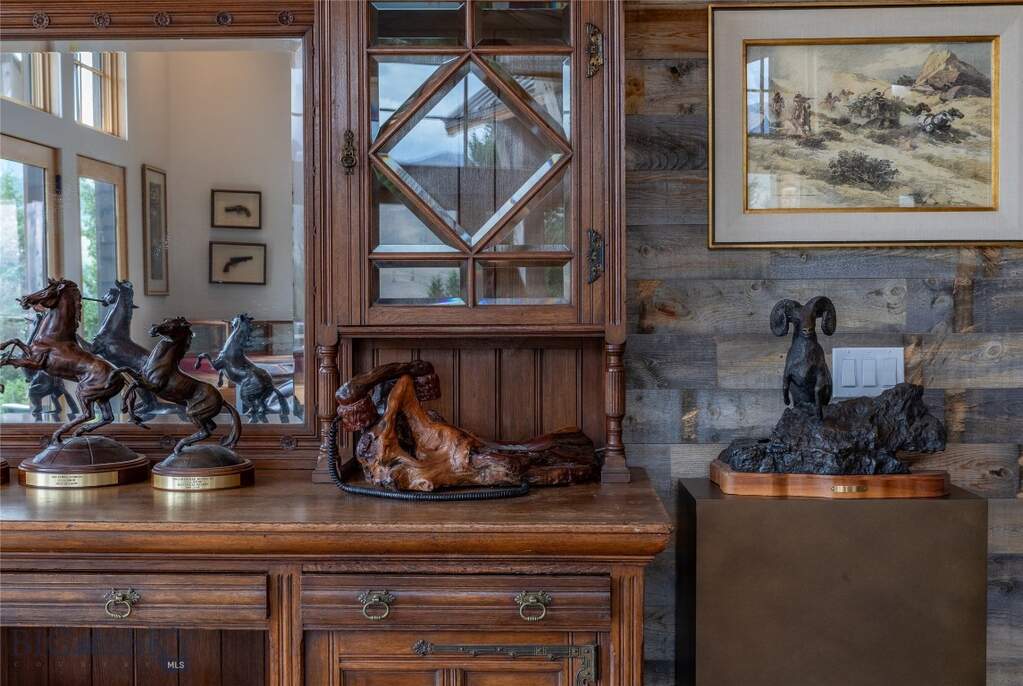 Rare opportunity to own an upper-end custom home on one of the most desirable lots in Sun West Ranch, where homes seldom come to market. This thoughtfully designed 4BR/4.5BA residence offers approximately 3,745 square feet and is perched to capture wide-open, unobstructed views across conservation ranchland and surrounding mountain ranges. An open-concept layout is complemented by a separate living room anchored by an impressive stone, wood-burning fireplace. Mountain-rustic finishes are elevated with dark timber beams, white-washed tongue-and-groove ceilings, and expansive Marvin windows and doors. Two decks and a stamped concrete patio extend living space outdoors, creating a strong connection to the natural surroundings. The kitchen features GE Cafe appliances, double ovens, and a gas cooktop. The main level primary suite includes a propane fireplace with a natural Montana stone mantle and stunning views. Two main level guest rooms have private baths. A second primary suite on the lower level provides exceptional privacy. The residence is offered fully furnished with high-quality and custom pieces for immediate enjoyment. The 4.353-acre lot is covered with mature Douglas fir trees, limbed up for fire prevention and a park-like setting. The property borders ranch open space with nearby access to National Forest and Standard Creek, ensuring permanently protected views and privacy. Additional features include a finished, insulated, and heated three-bay garage stubbed for EV charging, a 75 SF secure room for valuables, Generac backup power with remote monitoring, fiber optics, on-demand hot water, water filtration, oversized cistern, underground irrigation, and monitored security and alarm systems. Sun West Ranch is a gated 2,000-acre community with approximately 1,600 acres of open space, two miles of Madison River frontage, stocked ponds, and equestrian amenities. Homes may be used as vacation rentals between May and October. Conveniently located near Yellowstone National Park, Big Sky Resort, and regional and private air access.