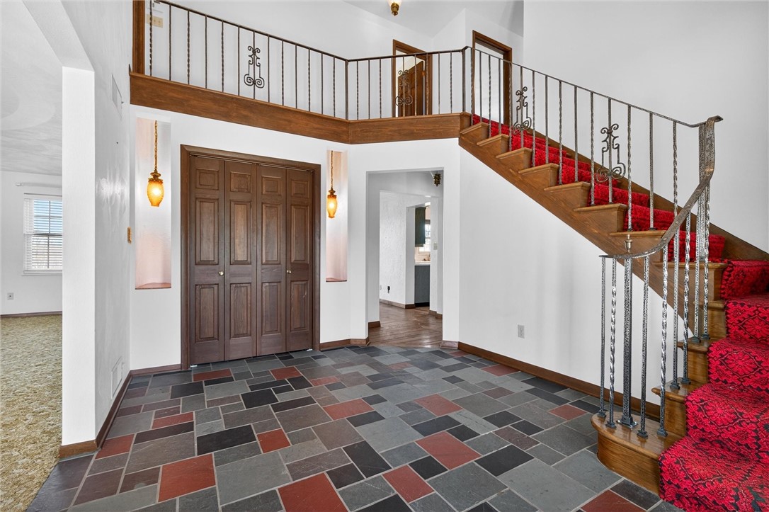 Welcome to this beautiful, sprawling two-story brick home nestled at the end of a quiet cul-de-sac in Apollo. Offering 4 bedrooms and 3 full bathrooms, this spacious residence combines classic charm with incredible potential, all set against the stunning backdrop of the Apollo Elks Golf Course. Situated on a generous 1.2-acre mostly level lot, the outdoor space is a blank canvas ready for your vision - whether it's a garden retreat, entertainment area, or private oasis. Step inside to a grand entryway highlighted by an eye-catching staircase that sets the tone for the rest of the home. The expansive living room is filled with natural light, creating a warm and inviting atmosphere. Just beyond, the cozy family room features a gas fireplace and sliding glass doors that lead to the rear deck - perfect for relaxing or entertaining while enjoying scenic views. The kitchen is designed with functionality in mind, offering abundant cabinet and counter space, an electric cooktop, and a double wall oven - ideal for any home chef. A charming breakfast nook sits just off the kitchen, while a large formal dining room provides the perfect setting for gatherings and special occasions. The main floor also includes a versatile bedroom or home office along with a full bathroom, offering convenience and flexibility. Upstairs, you'll find a spacious primary suite complete with a private full bathroom. Two additional generously sized bedrooms - each with multiple closets - provide ample storage, along with a third full bathroom and a large walk-in storage room. Additional features include a large unfinished basement ready for your finishing touches and a spacious two-car integral garage. This home offers space, comfort, and endless potential - all in a peaceful setting with beautiful golf course views. Don't miss the opportunity to make it your own!