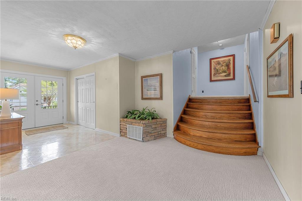 Welcome to this beautifully maintained one-owner home, where warmth greets you at the front door with a spacious entry foyer, and an expansive Great Room ideal for gatherings of any size. The main level features a large home office, dining room with backyard views, and an eat-in kitchen. Upstairs, you'll find four generous bedrooms (two with Juliet balconies), including a renovated primary suite with ensuite bath. Relax downstairs in the cozy family room with a stone fireplace or step into the sun-filled game room overlooking the backyard and inviting in-ground pool. Recent upgrades include an architectural shingle roof and replacement windows. Nestled on 1.2 acres at the end of a quiet neighborhood, you'll enjoy privacy while being near bases, beaches, and shopping. This is the perfect blend of comfort, style, and convenience! Full list of recent renovations available. Hardwood floors under carpeting.
