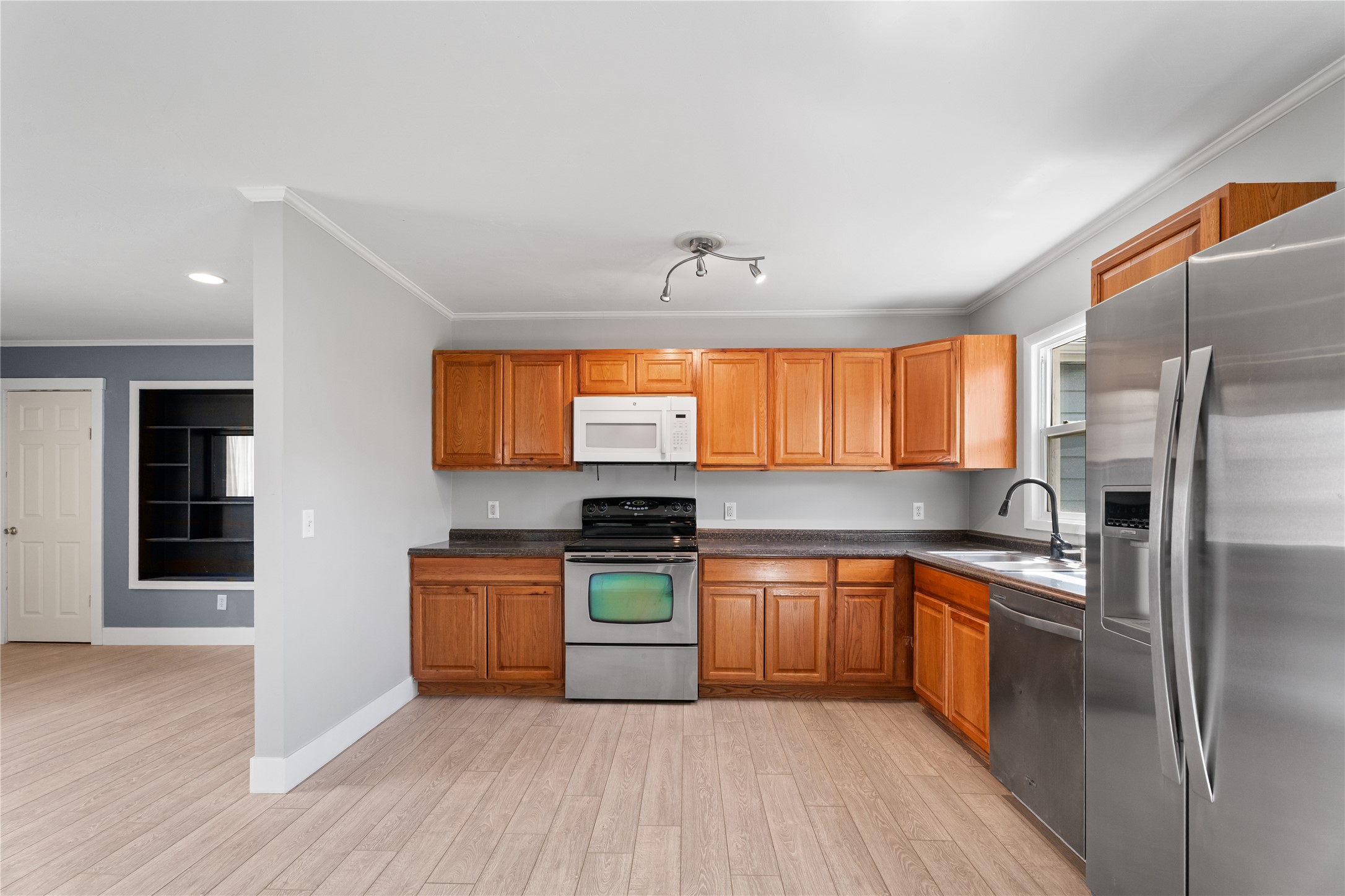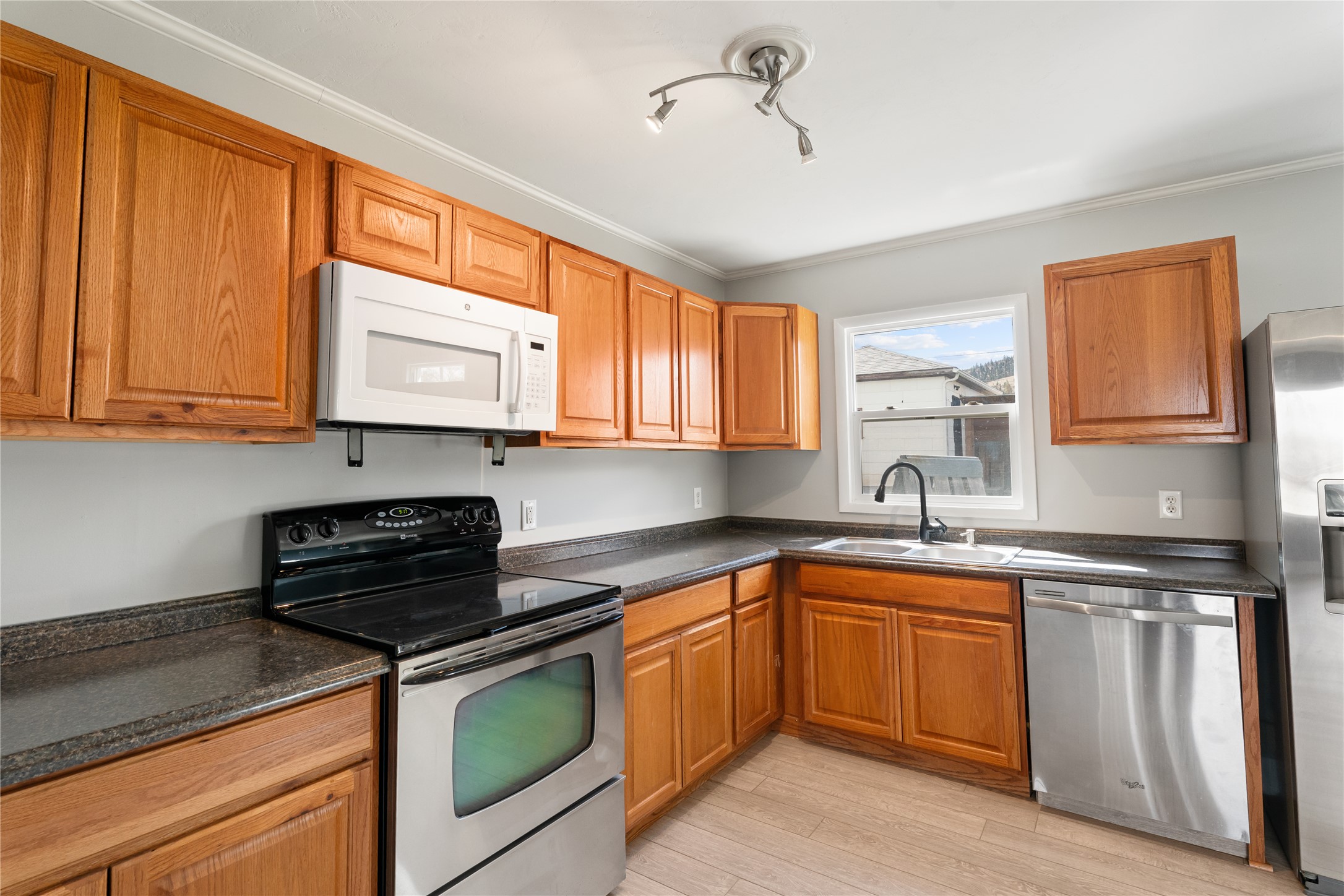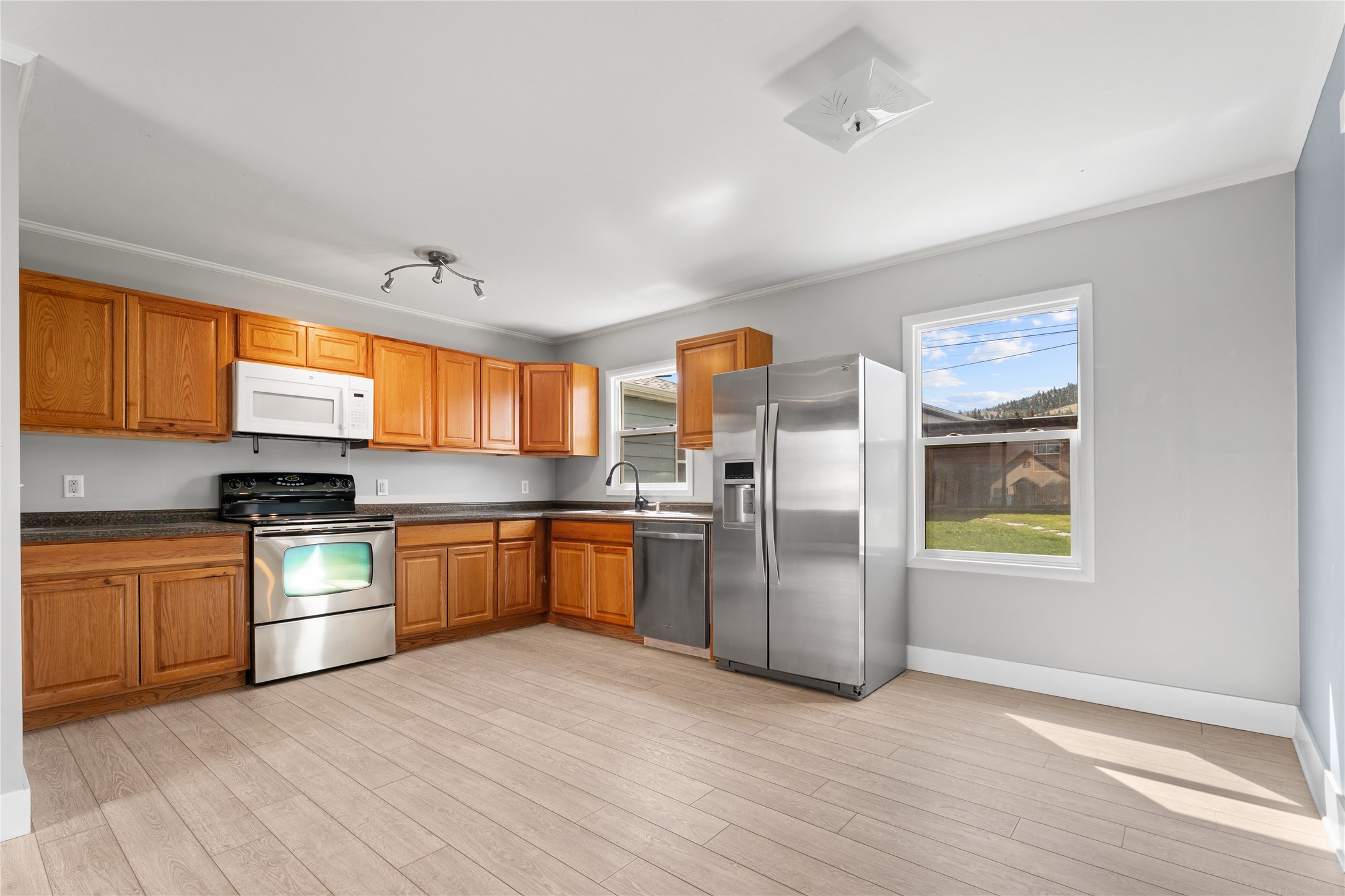 This charming rancher has 1508 sq ft with 4 bedrooms, one bathroom, a large open living room/kitchen area plus a fenced backyard oasis; close to schools, shopping, and Carroll College. Step inside to find new flooring and a kitchen with newer appliances. The flexible layout has four official bedrooms, each having its own possibility, to make your own; lots of storage with closets in all. The house has gas hot water, radiant heat (one bedroom has electric baseboard heat). A handy laundry area comes complete with the washer and dryer. The backyard has a deluxe chicken coop, and a hobby shed for garden supplies, craft area, workout space, or playhouse. The one car garage allows room for the car, convenient alley access, and storage. Enjoy raised garden beds and the ease of underground sprinklers. New roof on house and garage in 2022.