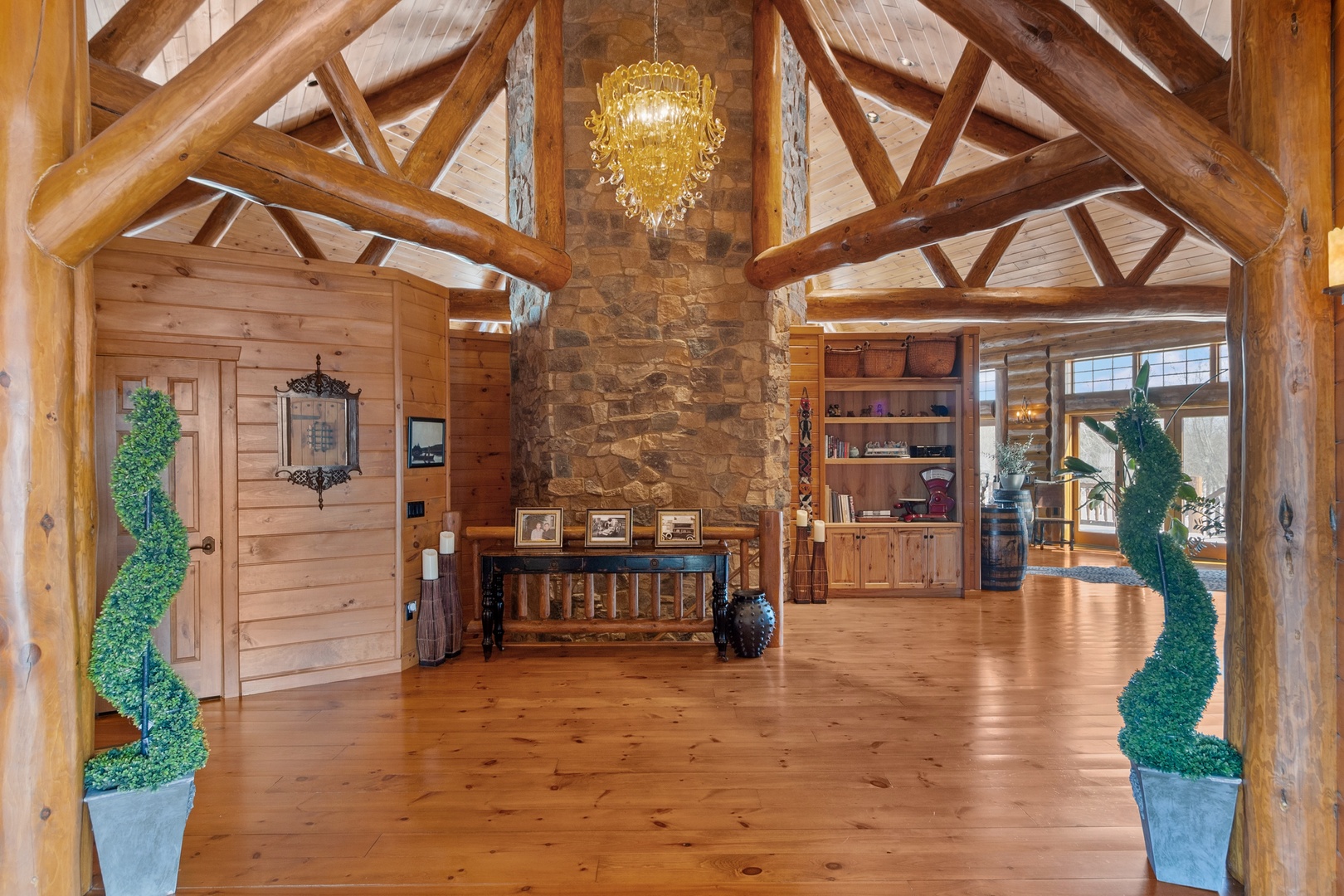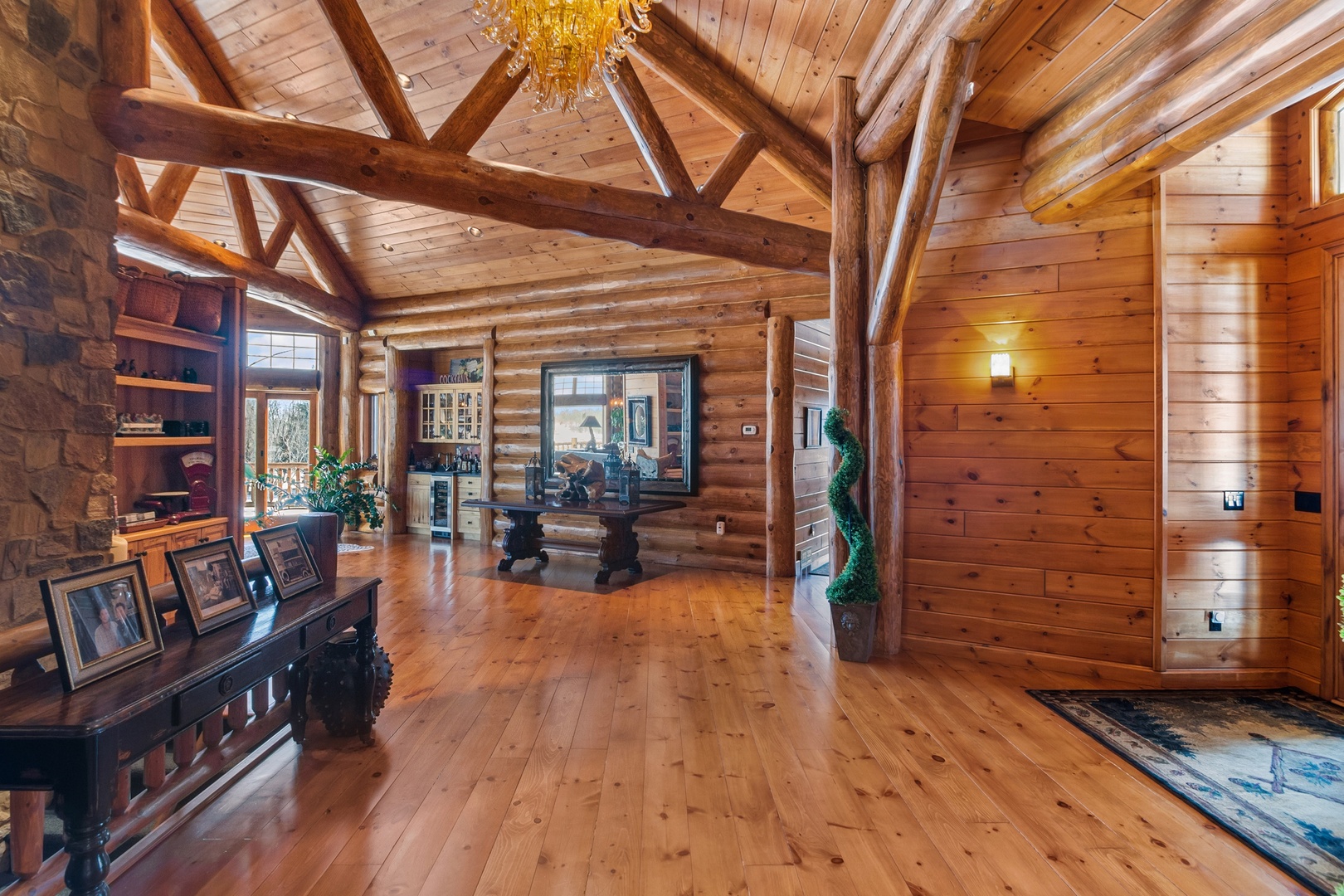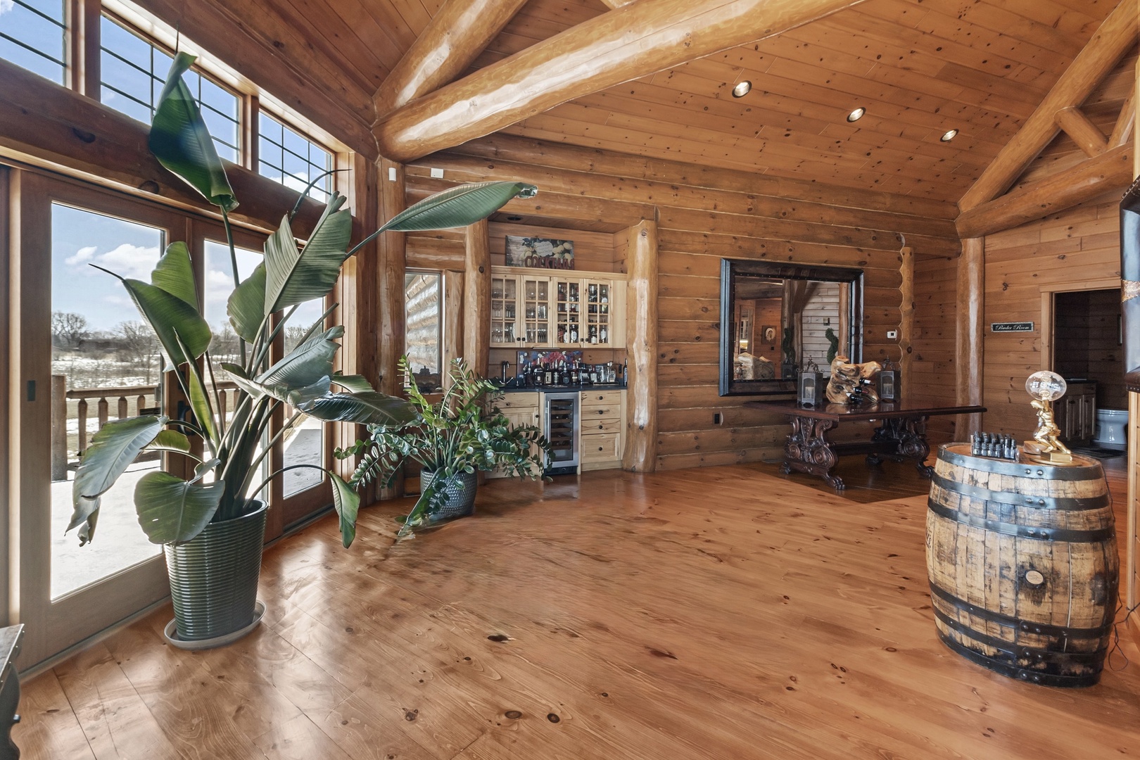 Private custom-built log estate set on 40 rolling acres just minutes from Lake Geneva. This 7,750 square foot lodge-style residence offers 6 bedrooms, 4.5 baths and is designed for both everyday living and large scale entertaining...The dramatic two-story great room features a floor to ceiling stone fireplace and expansive windows overlooking the property...A gourmet kitchen with high-end appliances, walk-in pantry and custom finishes opens to an oversized wraparound deck with panoramic views... The walkout lower level includes a full entertainment space with home theater, wet bar, wine cooler and additional living area with fireplace... The property offers a rare combination of privacy and usability, with open fields, maturing black walnut plantings and a 50' x 80' heated outbuilding with 800 AMP 3-phase power----ideal for hobby, storage or business use...This is a unique opportunity for a private estate, equestrian use or retreat style living within reach of Chicago, Milwaukee and the Lake Geneva areas - Call for Details!