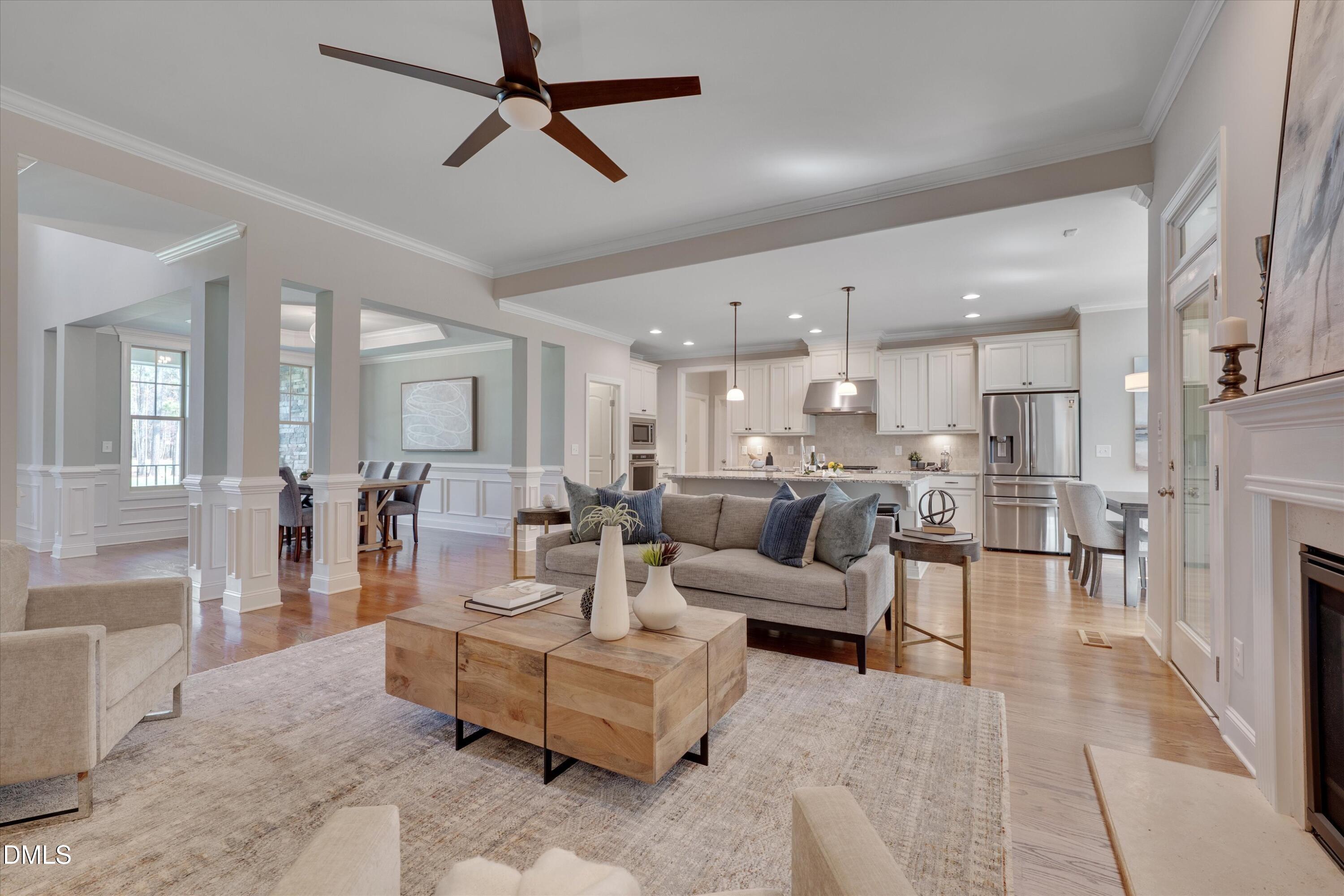 Stunning home with a saltwater pool and 3-car garage just 3.5 miles from downtown Wake Forest! This beautifully maintained home features hardwood floors throughout the main living areas and a spacious, open layout designed for comfortable living and entertaining. The gourmet kitchen is the heart of the home, offering granite countertops, custom cabinetry, stainless steel appliances, a tile backsplash, walk-in pantry, and a large center island with breakfast bar. The kitchen opens to the inviting great room with a double-sided gas fireplace and custom mantle. Step outside to enjoy the screened porch with its own fireplace, plus a deck overlooking the private, fully fenced backyard and saltwater pool--perfect for relaxing or entertaining. The beautifully landscaped yard includes a sprinkler system for easy maintenance. The first-floor owner's suite features a tray ceiling and hardwood floors, along with a spacious bath with tile flooring, dual vanity, soaking tub, and tile-surround shower, plus a large walk-in closet. A first-floor guest bedroom and bath offers flexibility for visitors or a home office. Upstairs spacious bedrooms & bonus room, walk-in storage/additional unfinished space with excellent potential for expansion. Whole home network wiring provides reliable high-speed internet. Conditioned crawl space with professional dehumidification system, thoughtfully installed to maintain ideal humidity levels and support long-term home maintenance. This exceptional home combines comfort, function, and outdoor living in a prime location close to shopping, dining, and everything downtown Wake Forest has to offer.