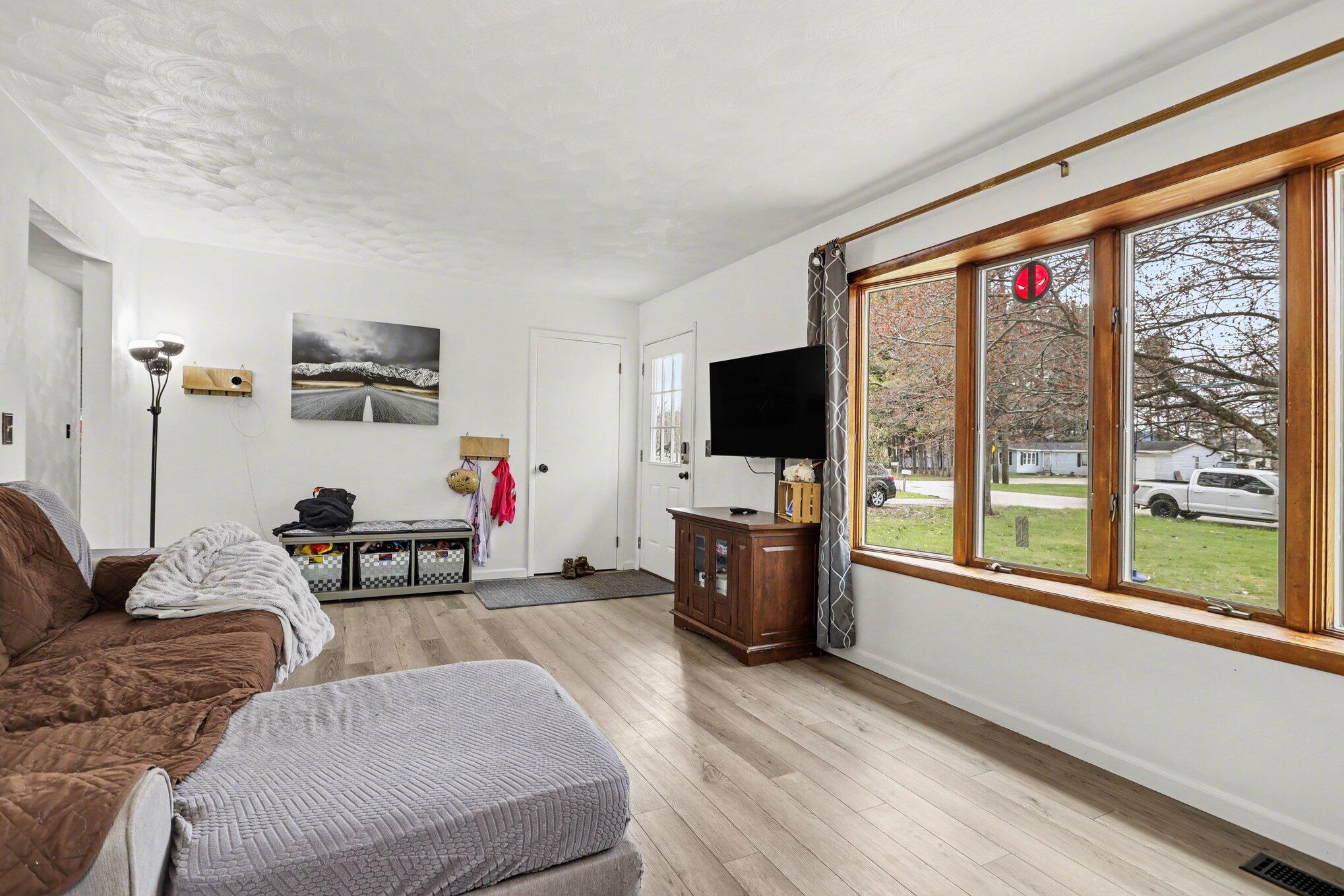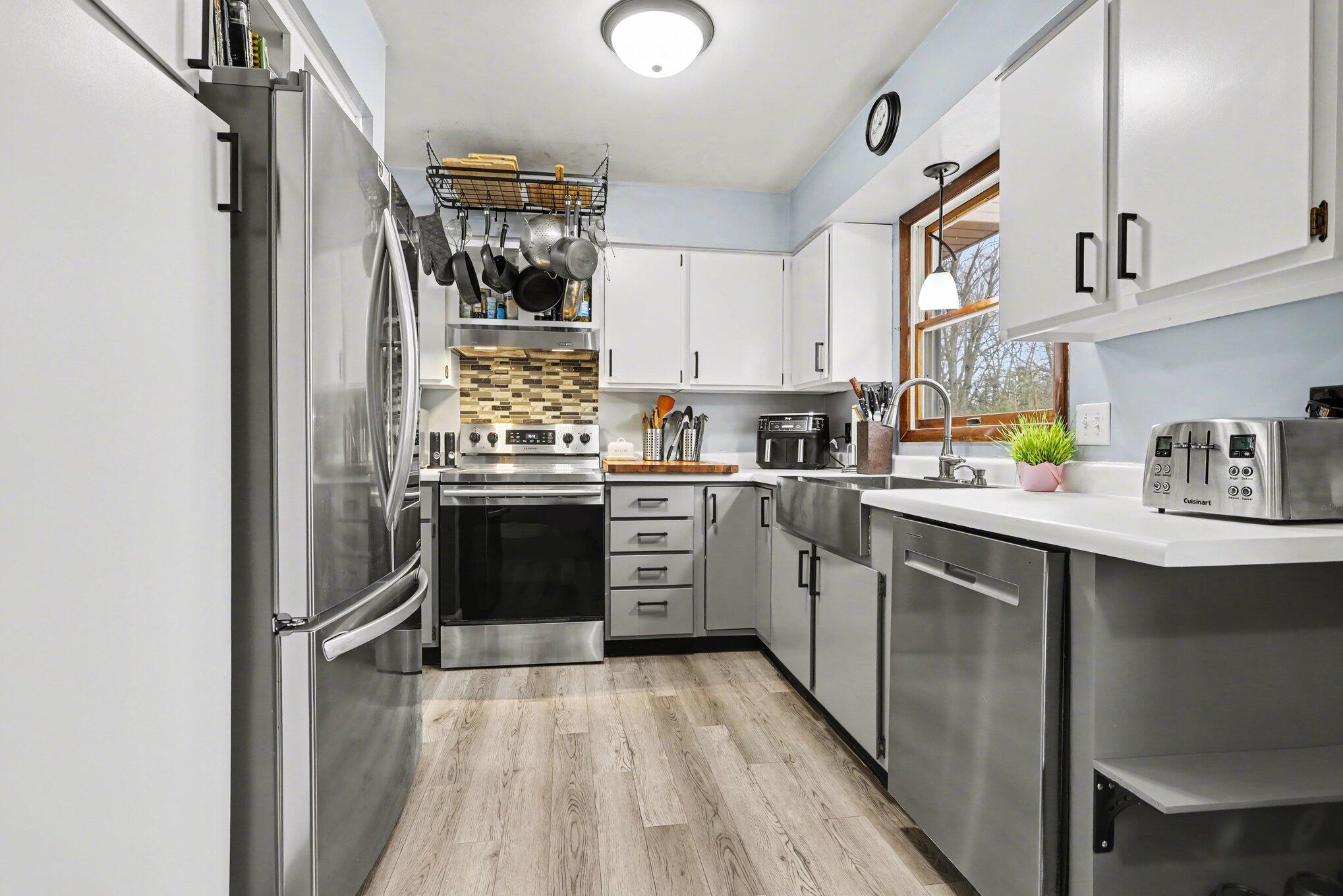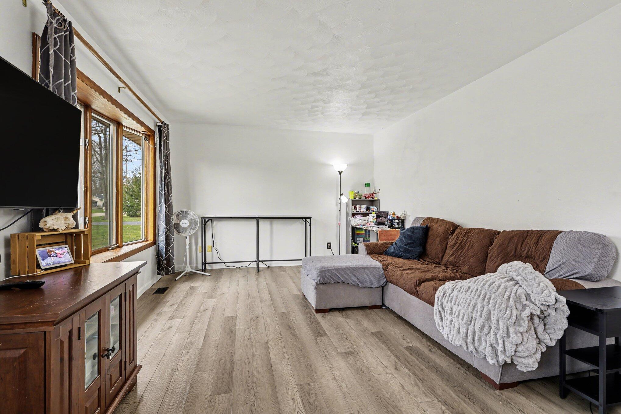** OPEN HOUSE ** 4/12 ** 12-2PM ** Welcome to this beautifully updated ranch in desirable Portage, a great value under $250,000. Major improvements have already been completed, including a new furnace/AC and water heater (2021), roof replacement (2016), and energy-efficient solar panels installed two years ago to help keep utility costs low. Inside, you'll find stylish vinyl plank flooring throughout the main level, along with fresh paint in most rooms. The kitchen shines with newer stainless steel appliances and freshly painted cabinetry, creating a clean and modern feel. The bathroom has been tastefully updated with bamboo flooring and a newer toilet. The spacious living room provides plenty of room to relax. The primary bedroom is huge and the second is good sized too. Downstairs, the finished basement expands your living space with a cozy family room and bar area--perfect for entertaining. Additionally the stove, refrigerator and washer/dryer are included. A brick patio, and a large fenced backyard as well.