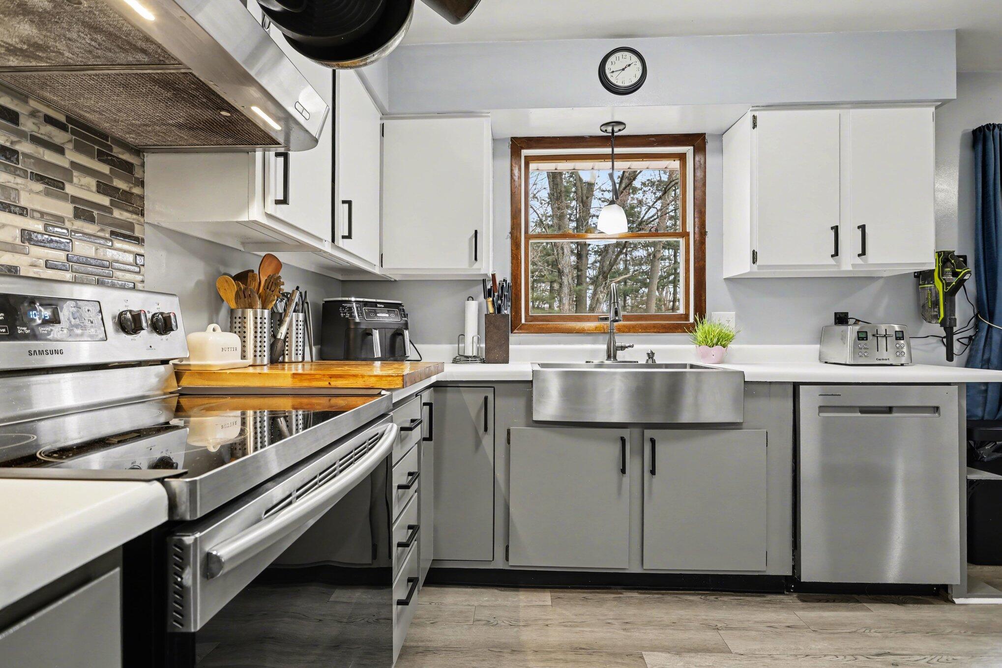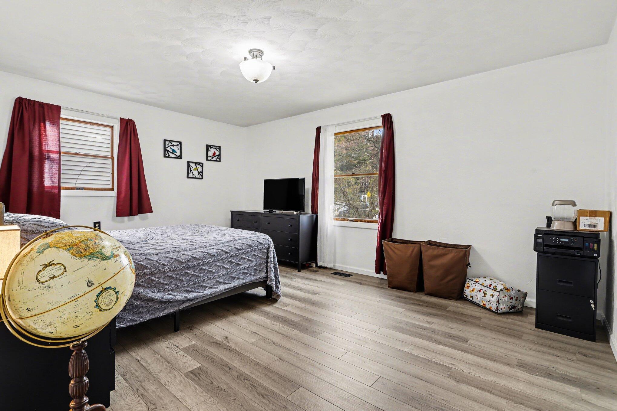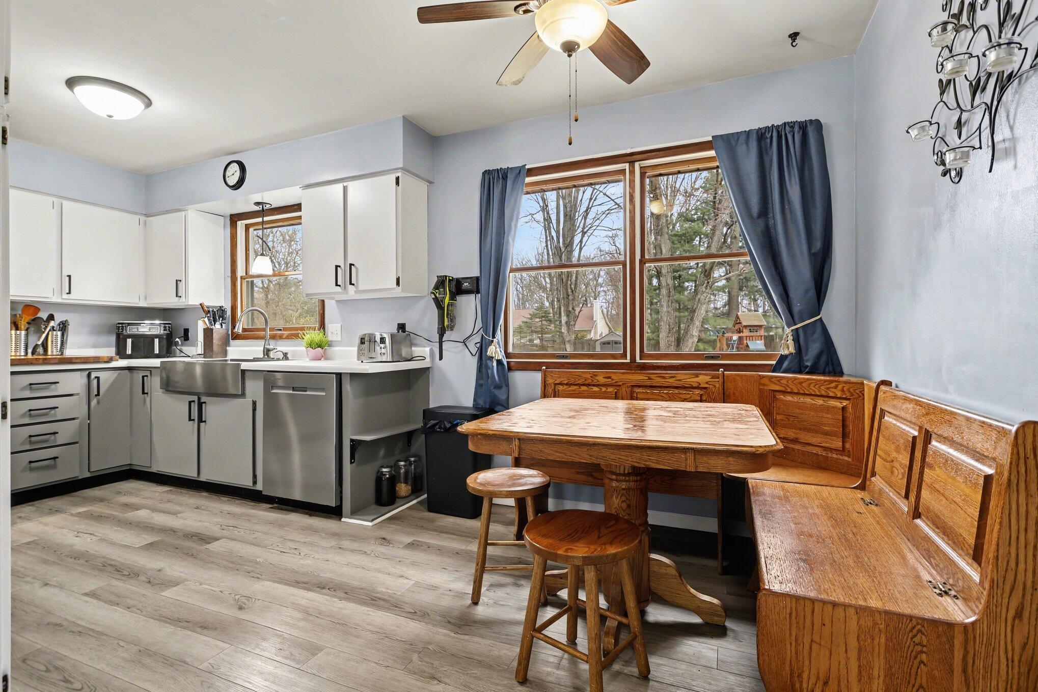 ** OPEN HOUSE ** 4/12 ** 12-2PM ** Welcome to this beautifully updated ranch in desirable Portage, a great value under $250,000. Major improvements have already been completed, including a new furnace/AC and water heater (2021), roof replacement (2016), and energy-efficient solar panels installed two years ago to help keep utility costs low. Inside, you'll find stylish vinyl plank flooring throughout the main level, along with fresh paint in most rooms. The kitchen shines with newer stainless steel appliances and freshly painted cabinetry, creating a clean and modern feel. The bathroom has been tastefully updated with bamboo flooring and a newer toilet. The spacious living room provides plenty of room to relax. The primary bedroom is huge and the second is good sized too. Downstairs, the finished basement expands your living space with a cozy family room and bar area--perfect for entertaining. Additionally the stove, refrigerator and washer/dryer are included. A brick patio, and a large fenced backyard as well.