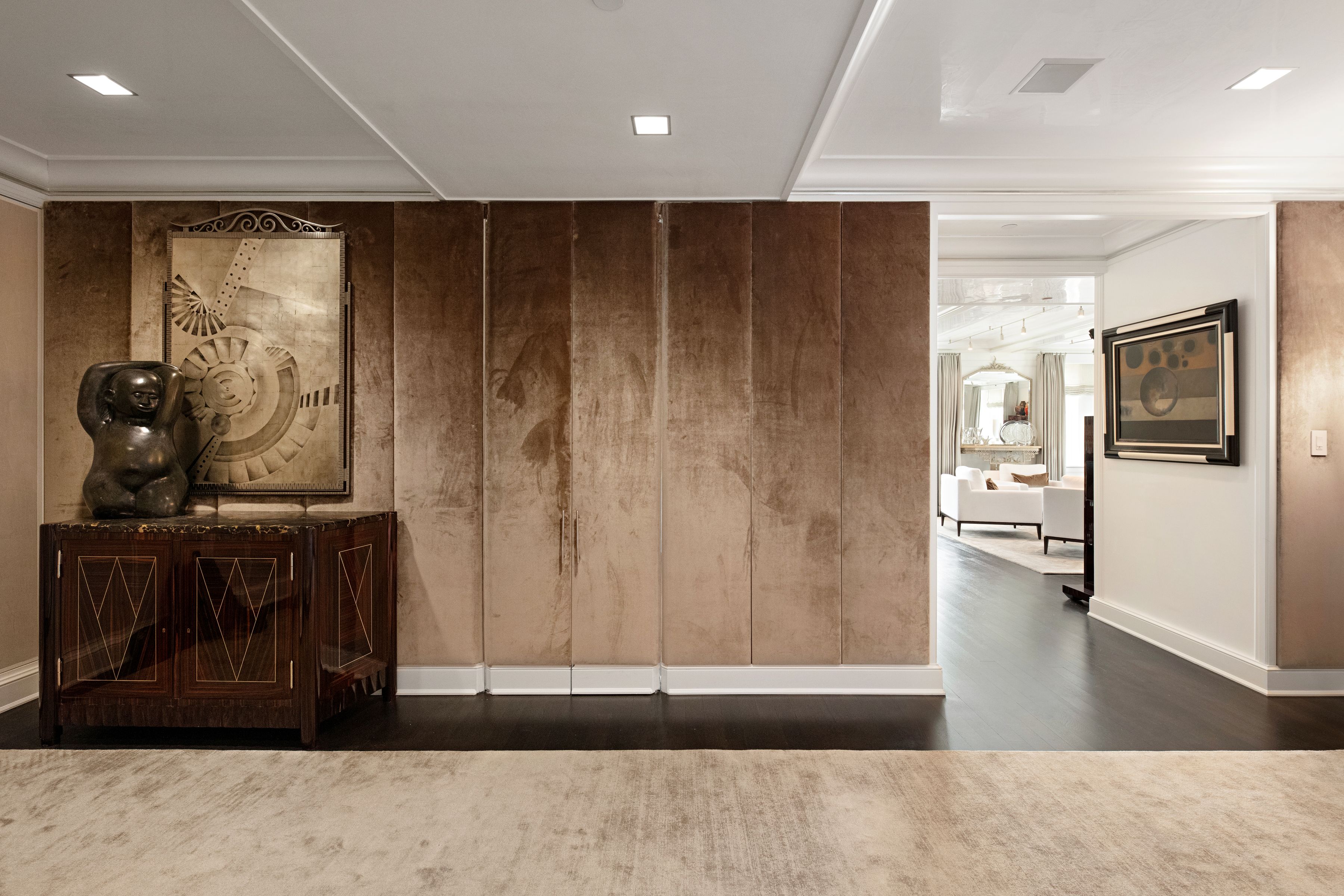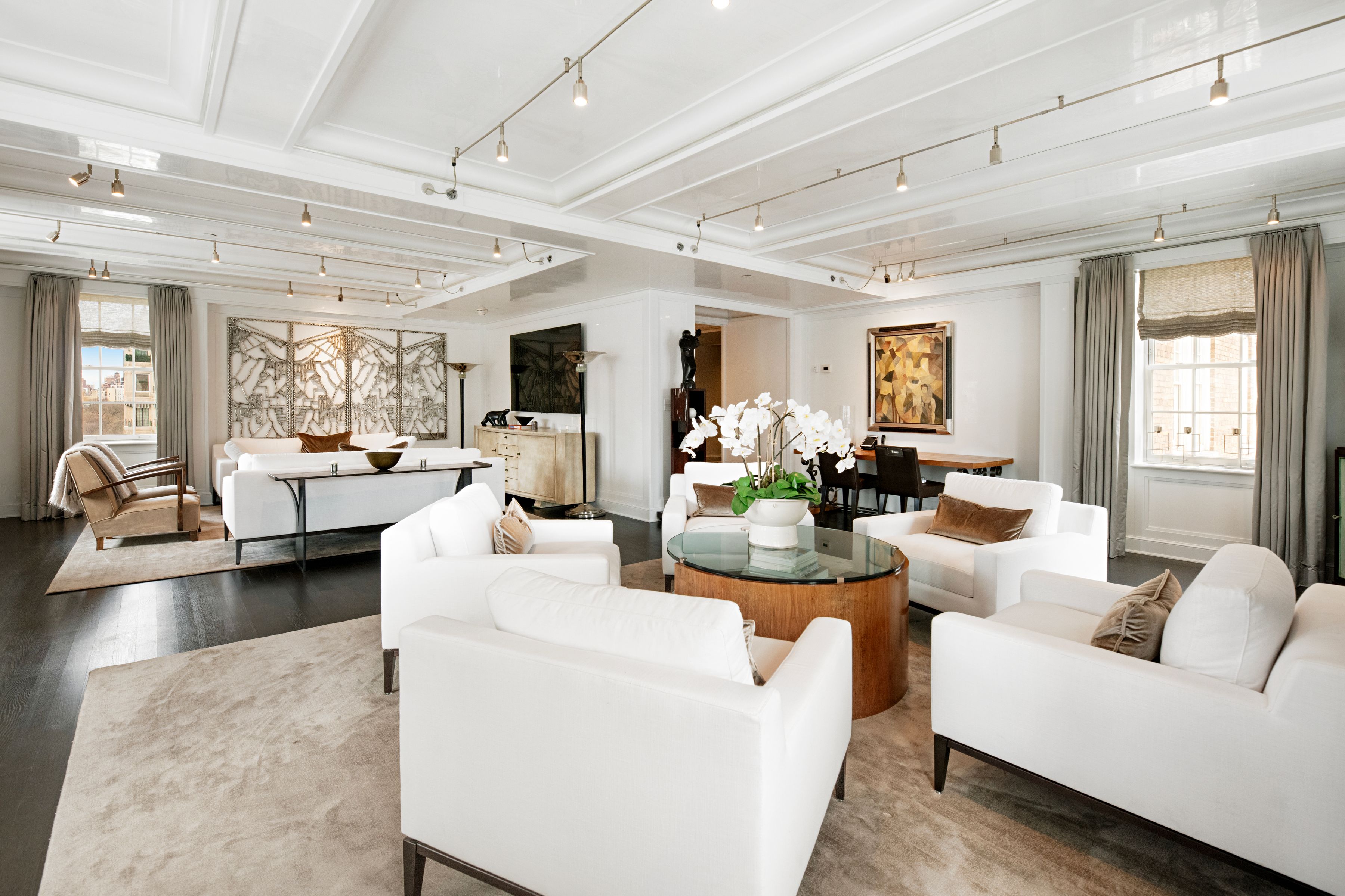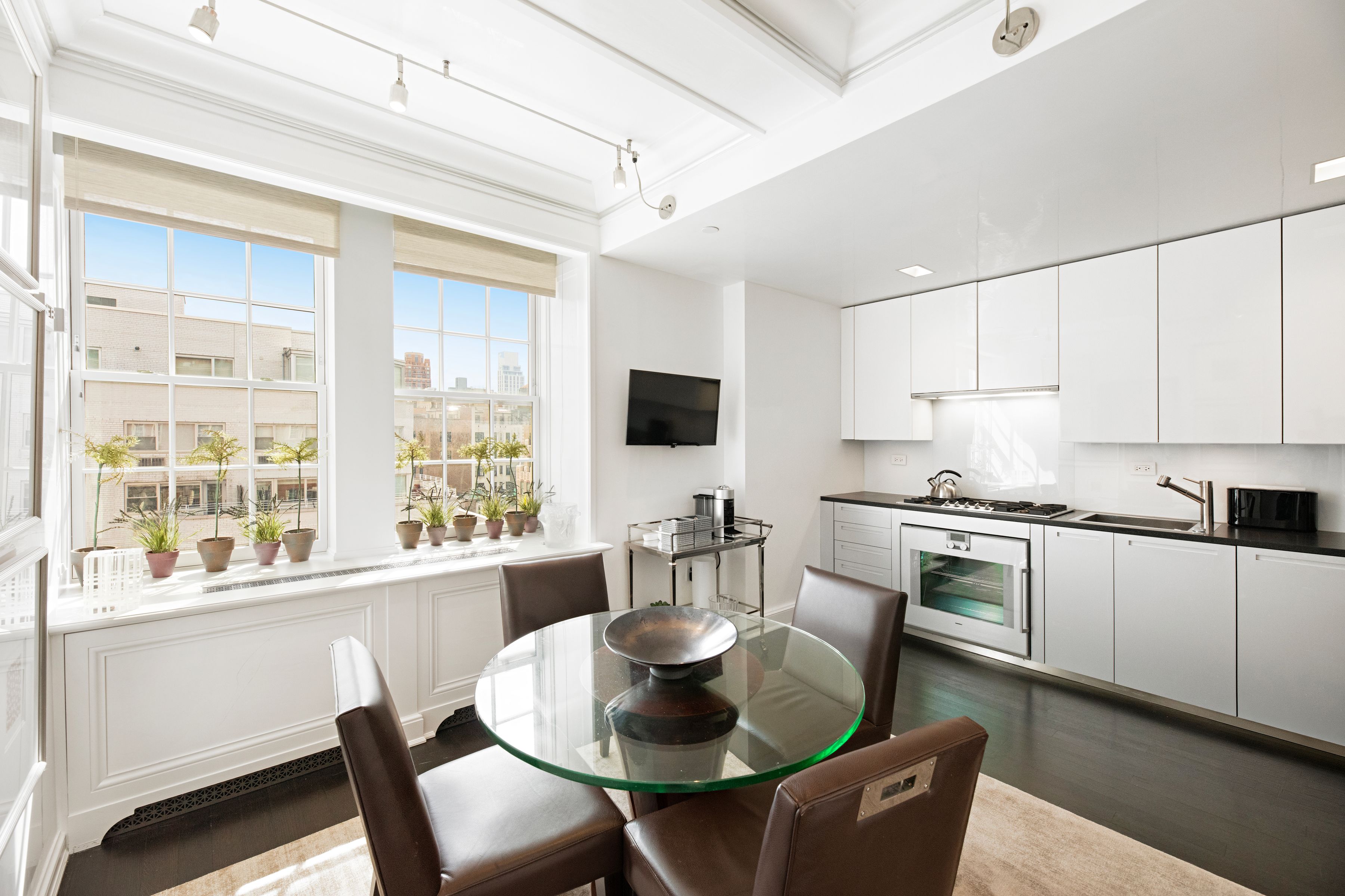 The Mark | Rare Corner Residence | Four Exposures | Madison Avenue Frontage | Furnished & Turnkey A rare corner trophy residence at The Mark Hotel, just half a block from Central Park, Residence 1502 offers four exposures and sweeping Madison Avenue frontage. With the privacy of just 10 residential units and the service, ease, and prestige of one of Manhattan’s most iconic hotels, this is a rare opportunity to enjoy a true hotel-style lifestyle in an exceptional Upper East Side setting. Residence 1502 is a masterfully reimagined corner home by a celebrated designer, offering an extraordinary level of craftsmanship, scale, and architectural refinement rarely found on the Upper East Side. The home is impeccably finished with coffered ceilings and custom solid white oak floors throughout, and has been significantly enhanced with Venetian stucco finishes across the entire residence, creating a warm, richly textured, and highly sophisticated ambiance. At the heart of the home is a dramatically expanded corner living room, a true statement space with four exposures and sweeping frontage along Madison Avenue, placing this residence among the most desirable corner lines in the building. Flooded with natural light throughout the day, the room offers remarkable volume, openness, and presence rarely found in hotel-branded residences. Measuring just over 2,300 square feet, the residence offers an impressive sense of scale while maintaining an elegant and highly livable layout. Originally configured as a three-bedroom home, the third bedroom has been seamlessly incorporated into the living room to enhance scale and flow. The layout can easily be restored to its original three-bedroom configuration, offering flexibility for future needs. The windowed eat-in kitchen, designed by Piero Lissoni for Boffi, is outfitted with a full suite of top-tier appliances, including Sub-Zero, Gaggenau, and Miele, delivering both exceptional performance and timeless design. The primary bathroom is a serene, spa-like retreat with floor-to-ceiling white marble slab walls and refined Lefroy Brooks fixtures. Two additional bedrooms, each with en-suite marble baths, provide privacy and comfort for both residents and guests. Additional features include climate control, three layers of fully automated window shades in every room, a Miele washer and dryer, and a fully integrated Crestron smart home system. The residence is available fully furnished at an additional cost, allowing for a seamless and elevated move-in experience. Residents enjoy The Mark’s unmatched white-glove services and amenities, including 24-hour room service, a state-of-the-art fitness center, the renowned Frédéric Fekkai Salon, and The Mark Restaurant by Jean-Georges. A truly exceptional offering, equally suited as a primary residence, refined pied-à-terre, or long-term investment, Residence 1502 delivers immediate comfort, enduring value, and an unparalleled lifestyle.