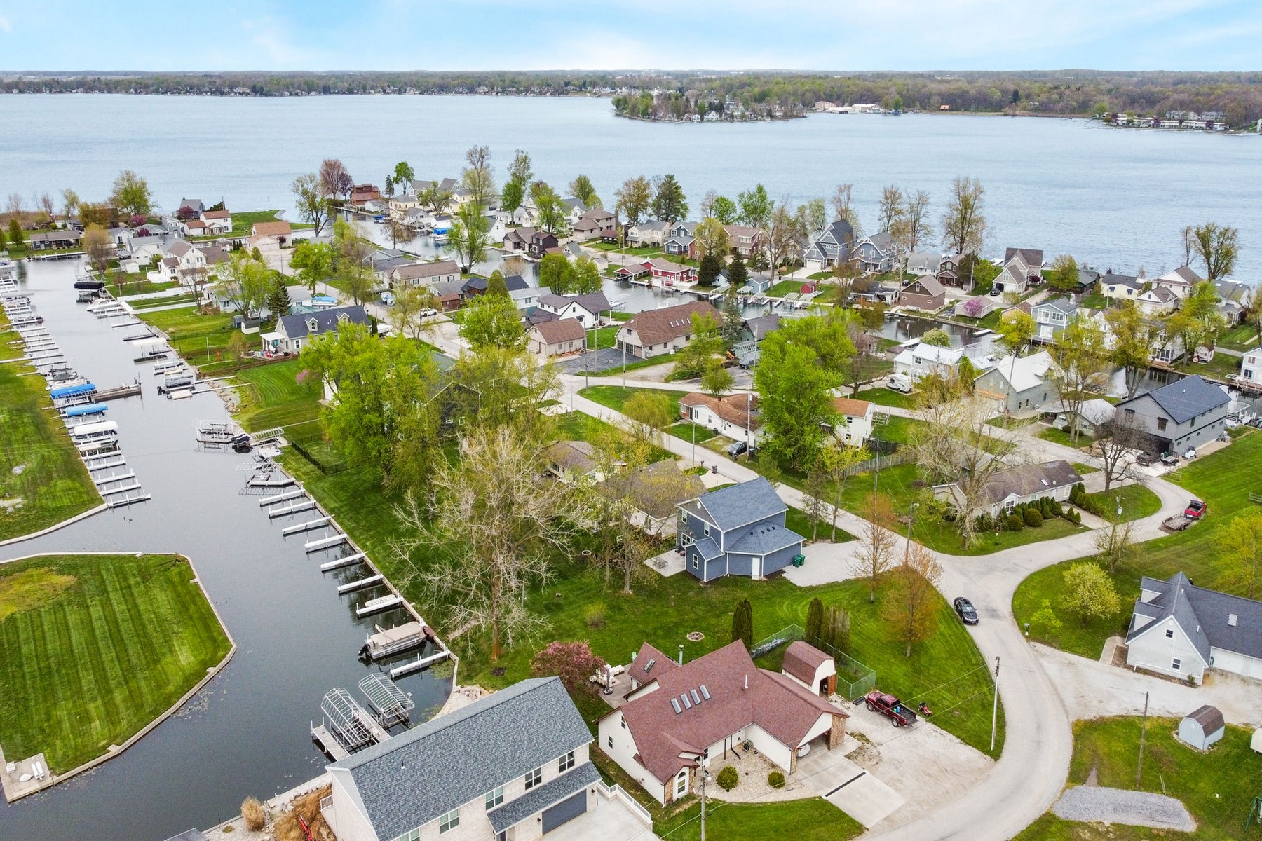 Lake Wawasee living— designed for effortless enjoyment. This beautifully maintained 5-bedroom, 3-bath home offers space, style, & a prime setting along a quiet channel w/ peaceful water views & a strong connection to the lake lifestyle. Built in 2019, the home features a bright, open-concept layout w/ nearly 2,400 sq ft of finished space—ideal for hosting, relaxing, & making lasting memories. The kitchen is the heart of the home, offering ample prep space, modern finishes, & seamless flow into the dining & living areas. Gather around the large dining table for meals w/ family & friends, or unwind in the spacious living room designed for comfort after a day on the water. With 5 generously sized bedrooms—many w/ direct bath access—there’s plenty of room for guests, making this an ideal full-time residence, vacation getaway, or investment opportunity. Step outside to enjoy the lakeside setting—featuring a large patio w/ seating for 10+, fire pit, & natural gas grill—all perfectly positioned to take in the serene channel views leading out to Lake Wawasee. The home overlooks a channel w/ an HOA-owned easement between the residence & water; no deeded frontage is included, but the setting still offers peaceful waterfront views. Opportunity to request a boat slip through the HOA, subject to availability & approval—offering convenient access to Lake Wawasee. This home is ready for immediate enjoyment just in time for lake season. Conveniently located near walking trails, restaurants, & all that the Wawasee area has to offer.
