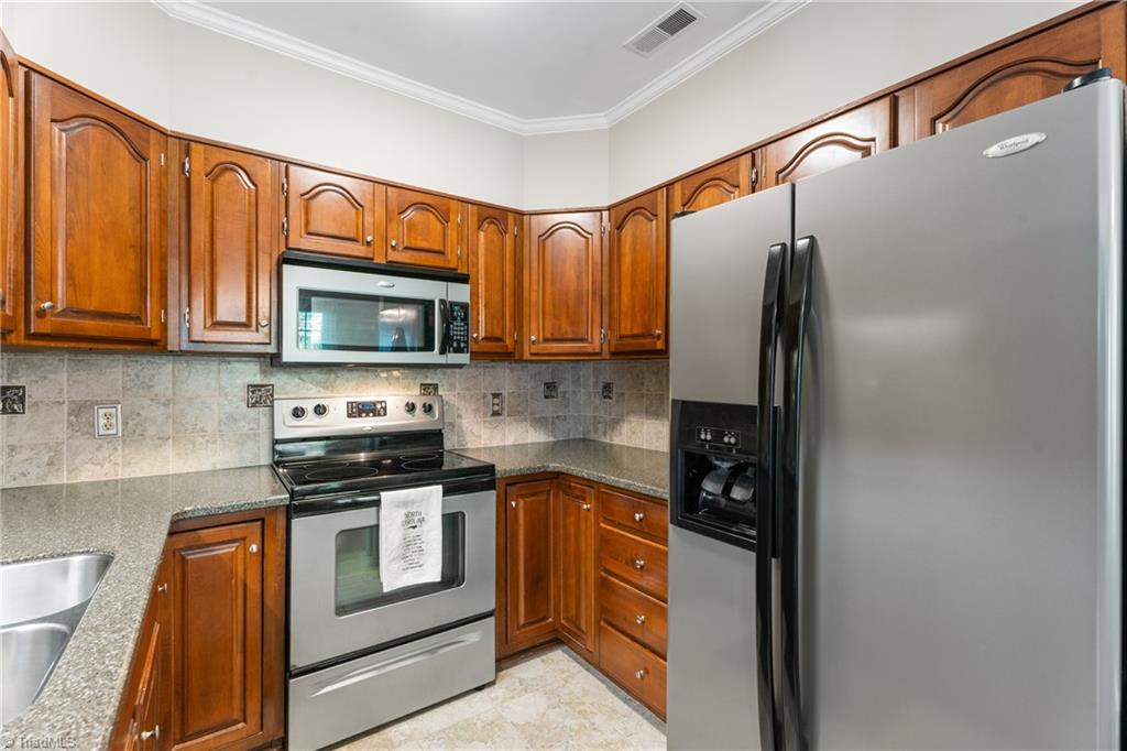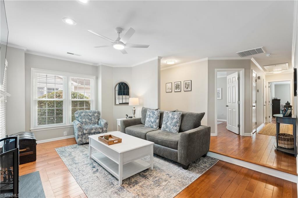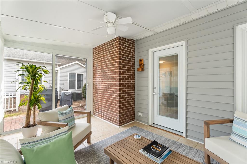 Beautifully maintained 2-bedroom condo in the sought-after 27104 area of Winston Salem. This property offers easy main-level living and low-maintenance appeal. A convenient location, attached 1-car garage and exterior upkeep covered by the HOA simplify day-to-day life. Inside, tile and luxury vinyl plank flooring run throughout, combining style and durability. The living room features a cozy fireplace and opens through to a covered screen porch - perfect for morning coffee or relaxed evenings. Step through the French doors onto the patio to enjoy time outdoors and the borrowed view out back. The layout is efficient and comfortable, with well-sized bedrooms and a natural flow. Ideally located near shopping, dining, medical facilities, and major roadways, this home offers a comfortable lifestyle in a prime location. Showings begin today at 5 pm!