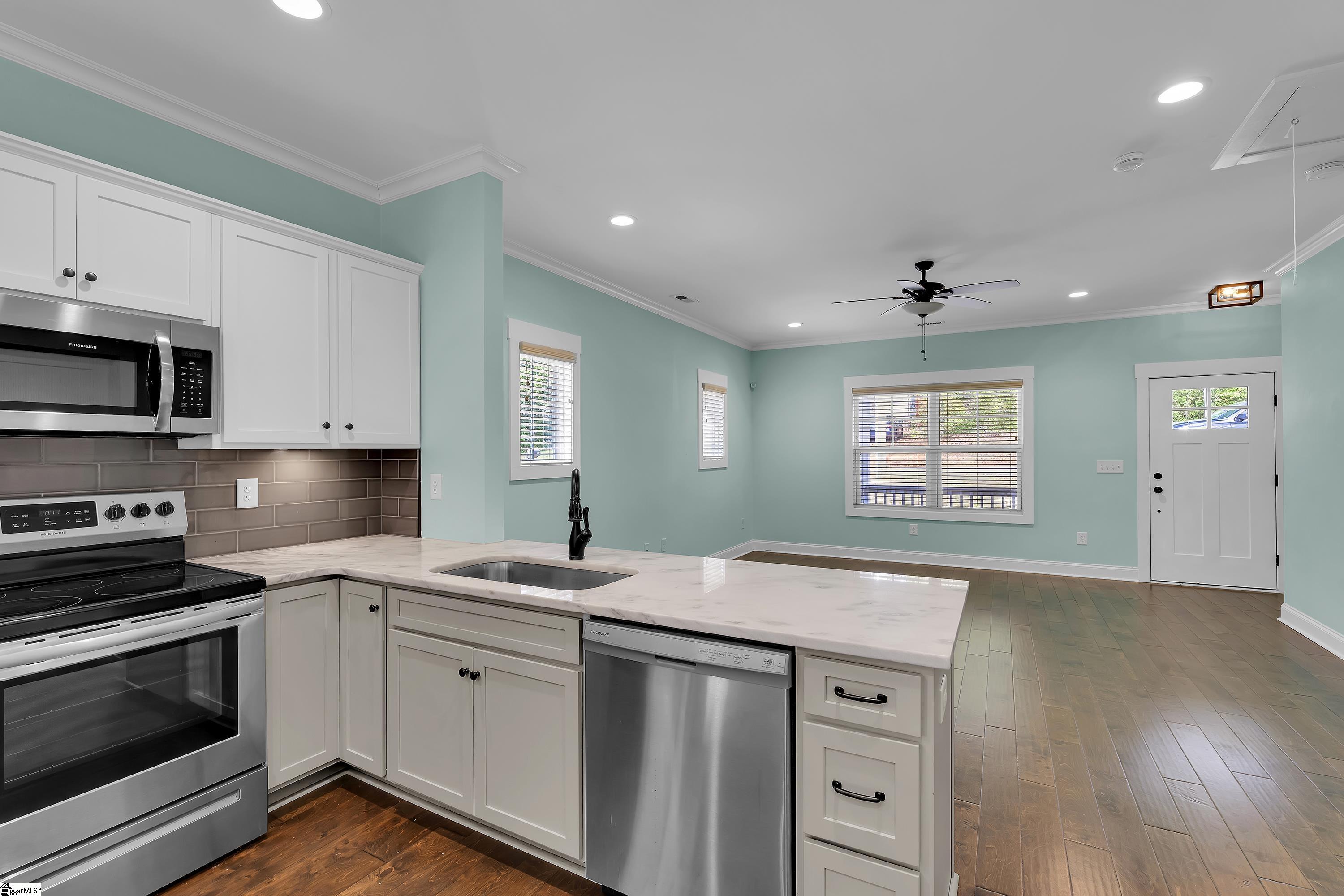Some homes just put you in the middle of everything and that's exactly what 27 Burgess Ave delivers. Tucked into one of Greenville's most connected pockets, you're minutes from the energy of Downtown Greenville, the trails of Paris Mountain, the charm of Travelers Rest, and the tree-lined streets surrounding Furman University. Whatever your version of a great weekend looks like, it starts right outside your front door. Built by Renaissance Custom Homes, one of the most respected names in Greenville's local building community, the craftsmanship here is the kind you notice the moment you pull up. A covered front porch framed by thoughtful landscaping welcomes you home every single day, and sets the tone for everything inside. Step through the door and the space opens up in all the right ways. Nine-foot ceilings, rich engineered hardwood floors, and an open-concept layout create a home that feels both elevated and effortlessly livable, whether you're hosting a dinner party or just enjoying a quiet evening in. The kitchen is where it all comes together: marble style granite countertops, stainless steel appliances, and solid maple soft-close cabinetry that's as beautiful as it is functional. This is a space that actually makes you want to cook. The primary suite is your retreat at the end of the day with a walk-in closet, dual vanities, and a spa-like tiled walk-in shower that feels far more like a luxury hotel than a home. Two additional bedrooms offer flexibility for guests, a home office, or whatever your life calls for right now. A dedicated walk-in laundry and storage room keeps everything organized and out of sight. Out back, the flat, fully fenced yard is a blank canvas for the life you want to live, morning coffee on a quiet Saturday, summer barbecues with your favorite people, a garden, a firepit, a dog. The space is ready for all of it. This is Greenville living at its most connected, most considered, and most comfortable.