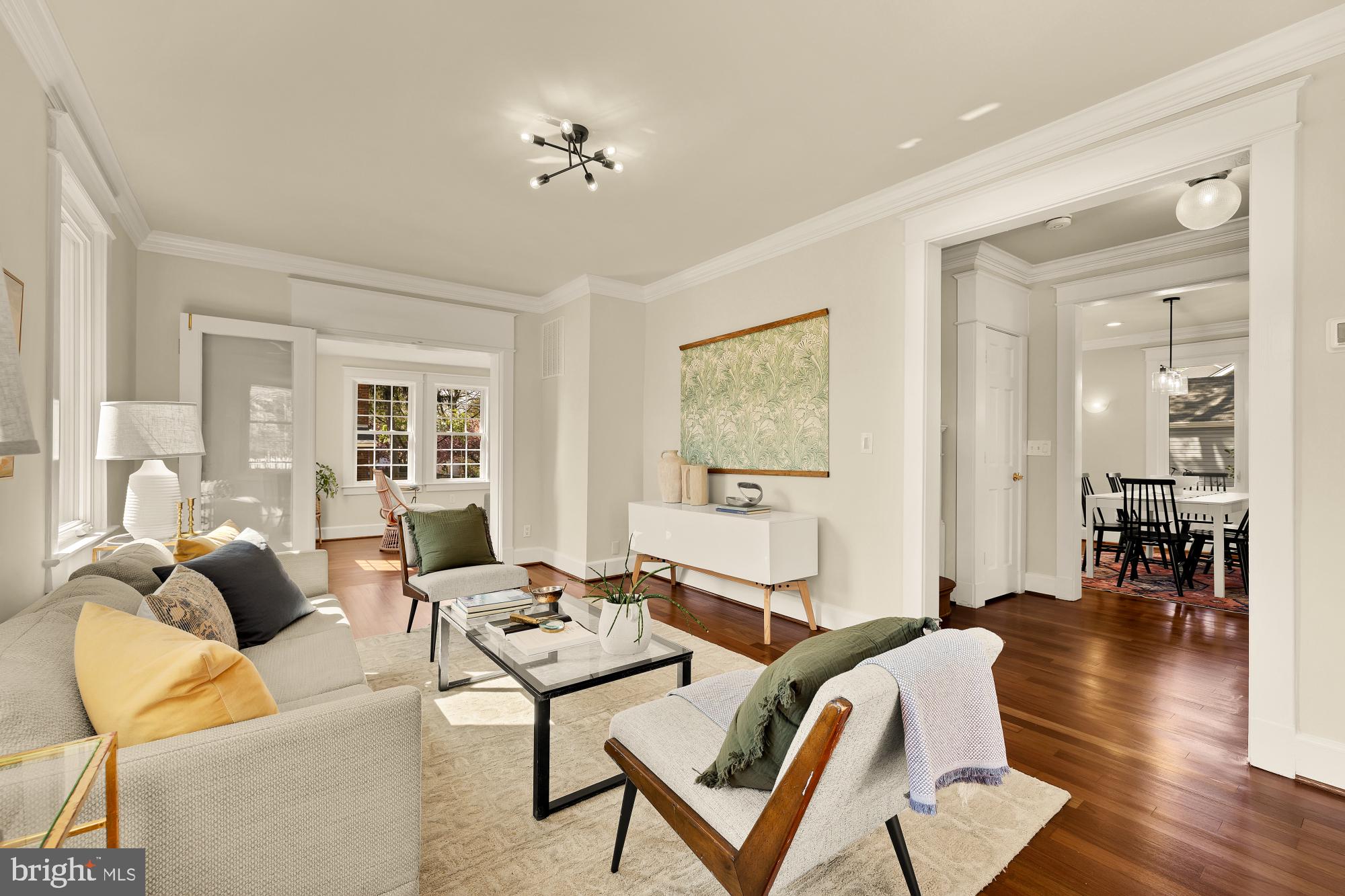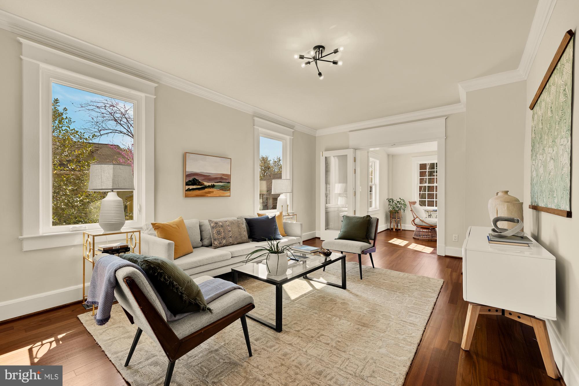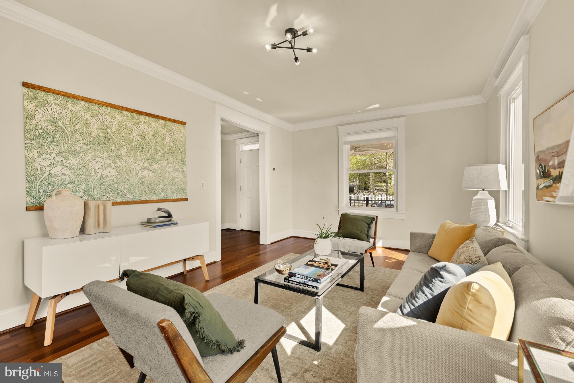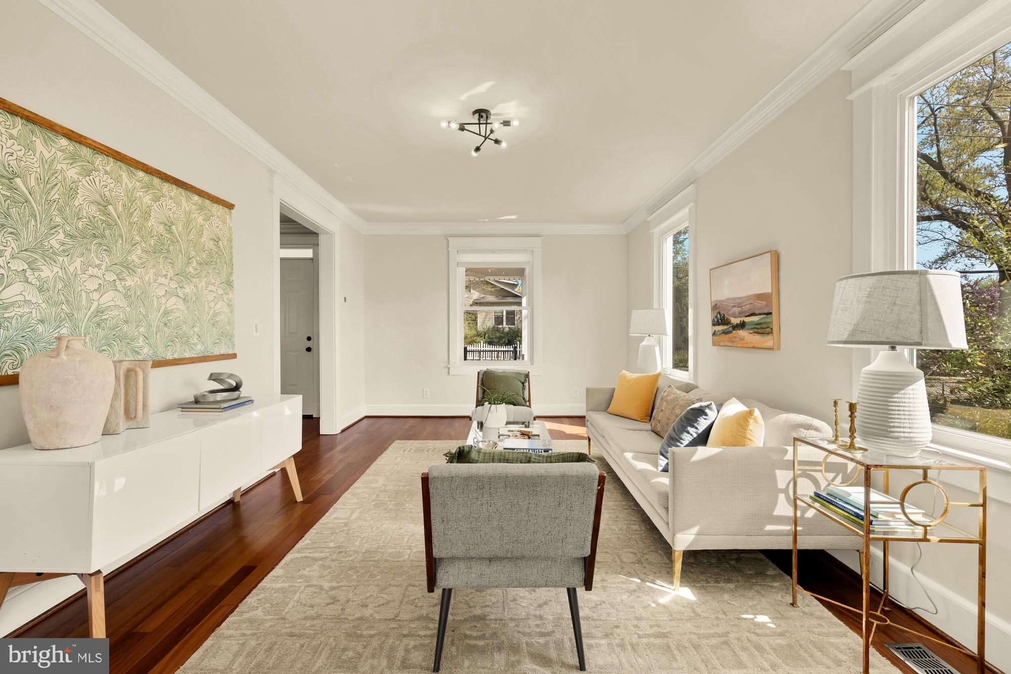 Welcome home to this brightly renovated 3BD/2BA farmhouse style single-family home that puts you in walking distance of everything beautiful Brookland has to offer. Lovingly landscaped (and fenced) front and side yards make you feel like you're nestled in a private grove, and the spacious covered front porch offers the perfect setting for relaxing with a good book and your favorite beverage. High ceilings, wood floors, crown molding, and plentiful windows add light-drenched luxury to the main level, which greets you with a foyer and a sitting room for entertaining guests. Folding doors lead to a living room that looks out on the backyard and loops around to the kitchen, made complete with plenty of cabinets and an induction cooking range. Three full-sized bedrooms on the upper level offer a variety of options for rest, including a primary bedroom with convenient dual closets and a cozy reading nook. Any of these bedrooms could easily become your next home office or den; all of them let in lots of natural light and share a renovated full bathroom. The fully finished basement is home to an entertainment room or bonus bedroom. The included wet bar and dining space makes hosting movie nights or small parties a breeze. A separate entrance leads you out into the delightful side garden spaces (with convenient shed storage). The generous back lawn also includes off-street spaces for multiple cars, making the frustrating hunt for parking a thing of the past. Along with its charming renovations, 1009 Taylor Street NE offers an incredible amount of convenience. You'll be just blocks from the Brookland-CUA Metro station (serving the Red Line), steps from major neighborhood bus routes, and within walking distance of restaurants and everyday amenities along 12th Street and at the neighborhood's popular Monroe Street Market and Arts Walk, including a Starbucks and Trader Joe's. Come inside and explore this move-in ready, single-family home! ABOUT BROOKLAND: With everything from impressive Victorian homes and innovative loft-style living to acclaimed fine dining and eclectic small shops, Brookland has gone from well-kept secret to bustling Northeast DC neighborhood. Bordered by Michigan Avenue NE, South Dakota Avenue NE, Rhode Island Avenue NE, and 9th Street NE, Brookland offers residents easy access to a Red Line Metro station, the Metropolitan Branch Trail, public transportation routes, and major roads and highways.