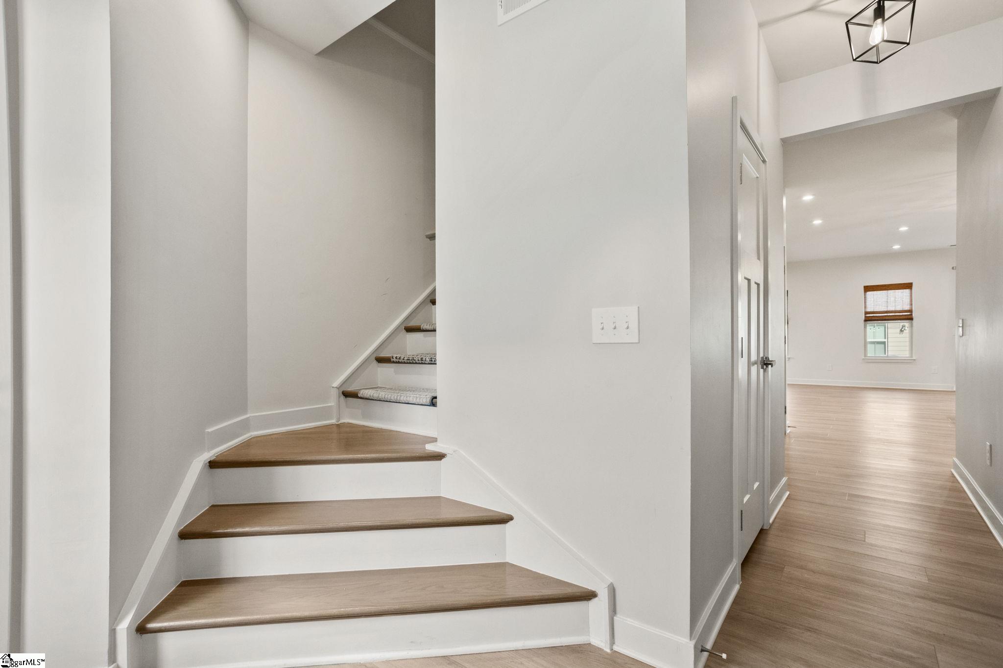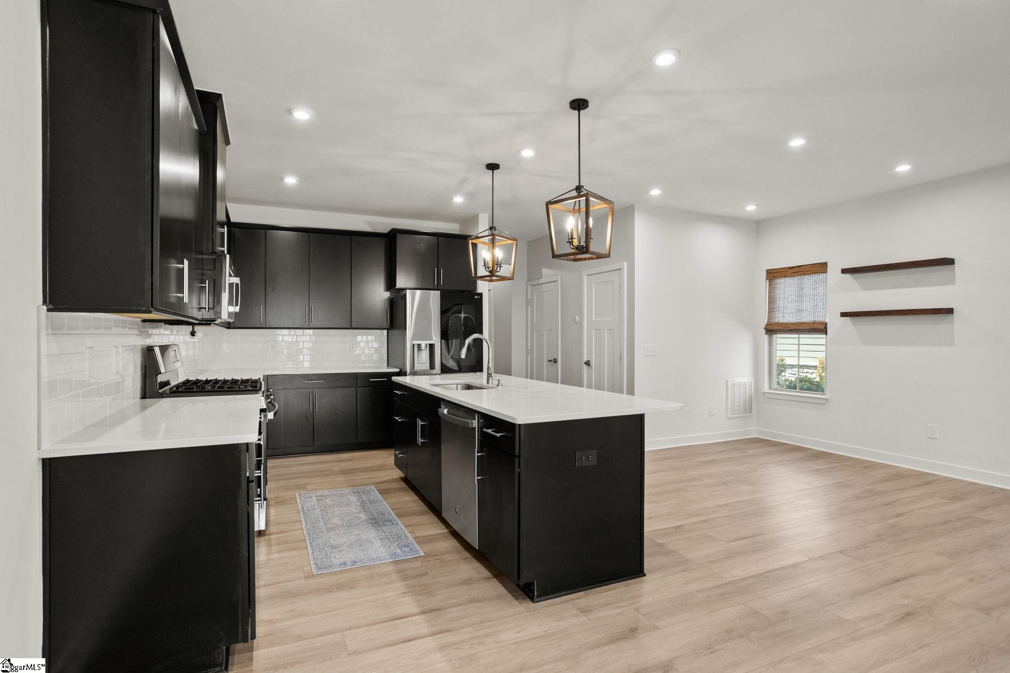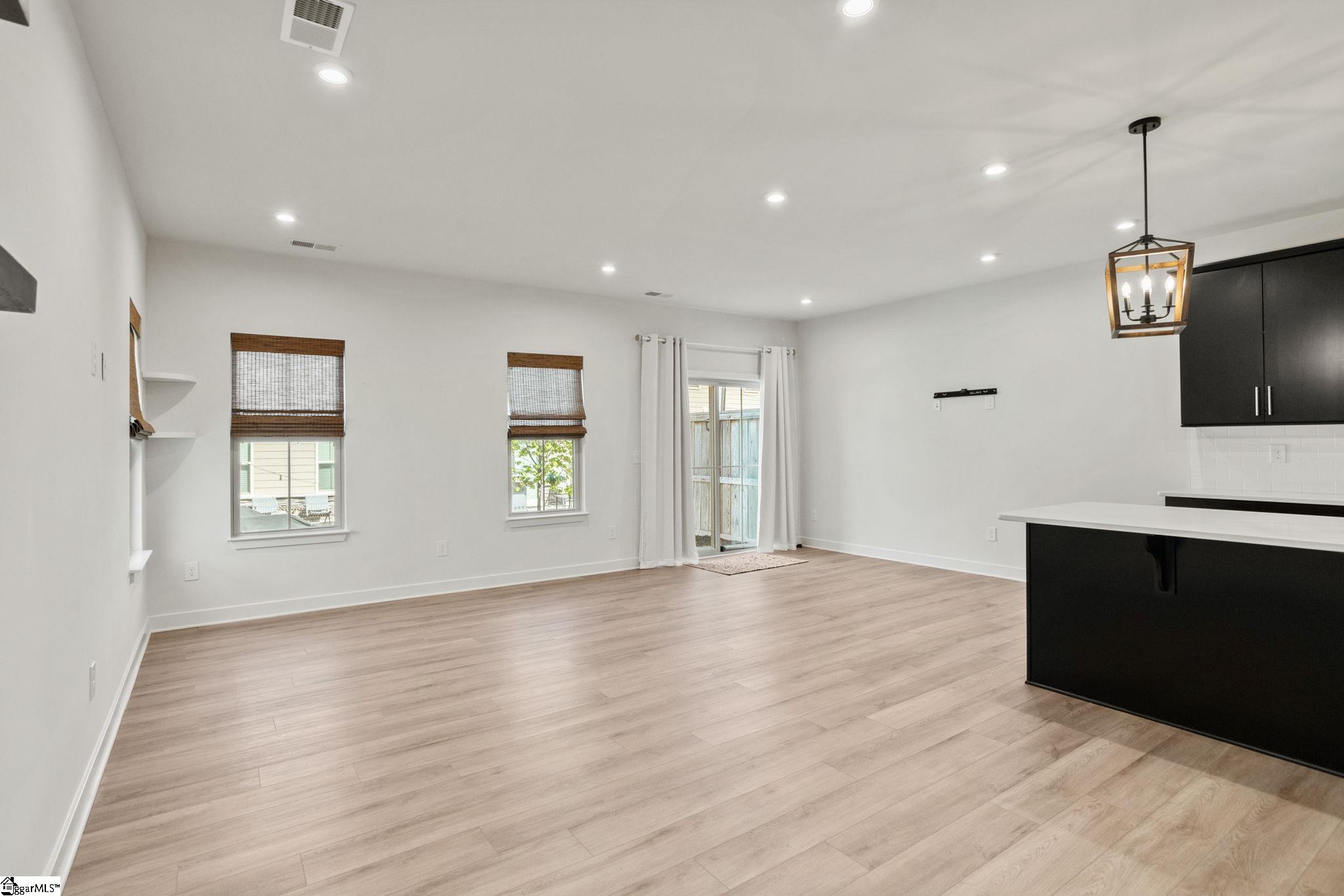 Location, convenience, and easy living come together in this beautifully designed townhome at 146 Eagle Wood Dr.! This 3-bedroom, 2.5-bath end unit in the sought-after Market Point Townes community offers the perfect blend of style and low-maintenance comfort. Enjoy a prime location just a short walk to The Shops at Greenridge, with endless dining, shopping, and entertainment options along Woodruff Road. Commuters will love the quick 3-minute access to I-85! Step inside to an inviting open-concept main level, ideal for both everyday living and entertaining. The spacious kitchen flows seamlessly into the dining and living areas and features quartz countertops, a large island with breakfast bar, stainless steel appliances, 42" cabinets, and a gas range - perfect for hosting or honing your culinary skills. Upstairs, you'll find three generously sized bedrooms, including a stunning primary suite with a tray ceiling, walk-in closet plus an additional closet, and a luxurious en-suite bath complete with dual sinks, a tiled shower with dual shower heads, and a private water closet. Two additional bedrooms offer ample space, including one with its own walk-in closet. The conveniently located upstairs laundry includes a washer and dryer that convey with the home. Relax outdoors large size patio - perfect for morning coffee or evening unwinding. Additional features include a one-car garage, tankless water heater, and access to fantastic neighborhood amenities such as a pool, fire pit, and dog park. Move-in ready and loaded with upgrades - all appliances convey. Don't miss your chance to call this one home!