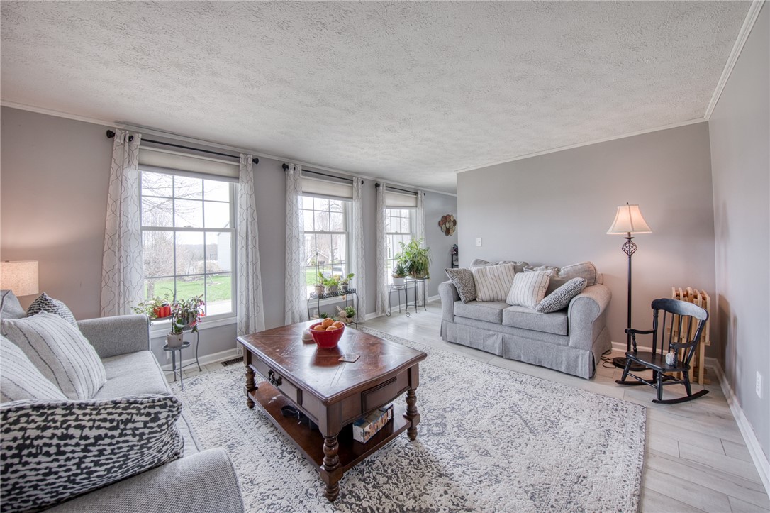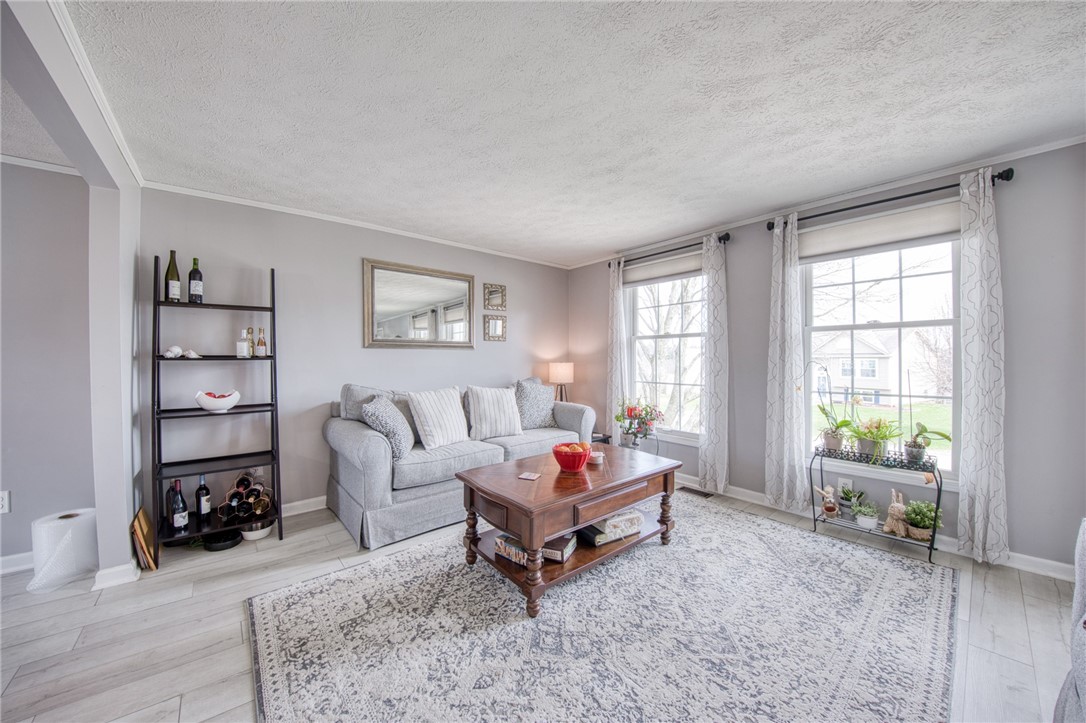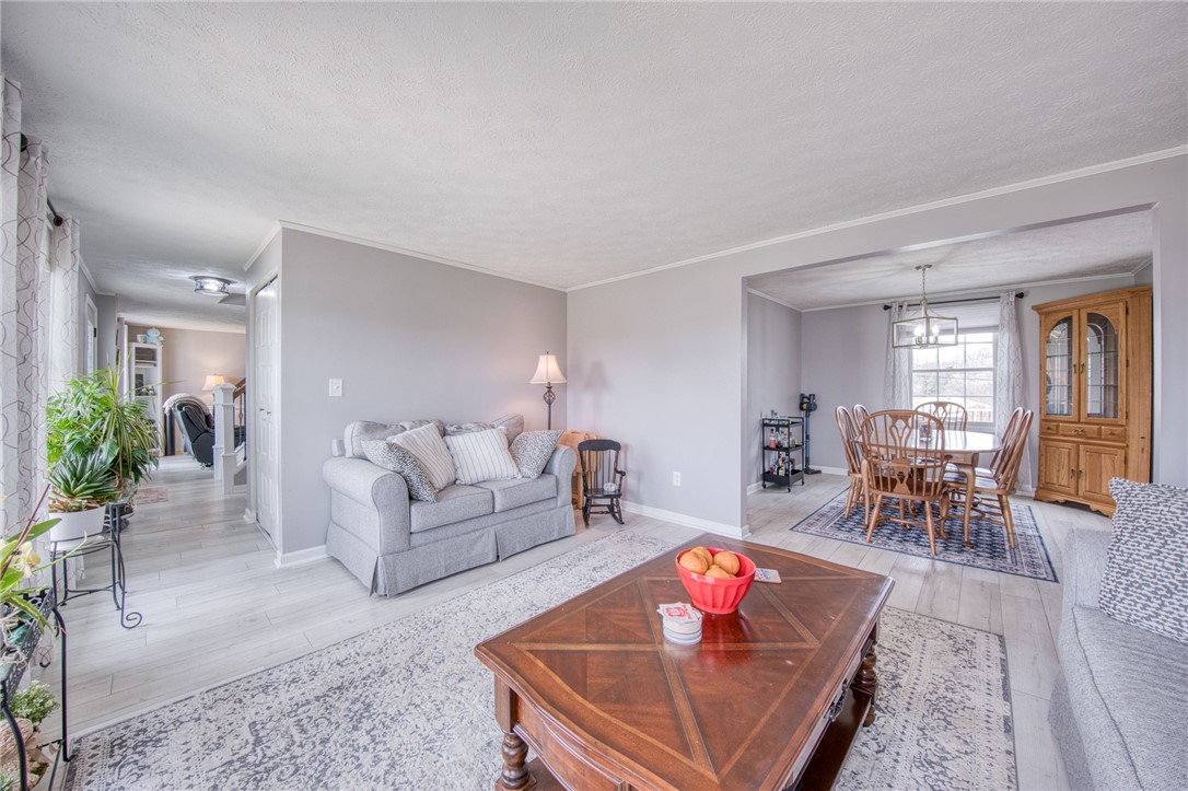 WELCOME TO 644 NORTHAVEN CIRCLE IN SHALER TOWNSHIP ~ Step into your new home through a stunning beveled glass front door, complemented by an updated light fixture that sets a warm and welcoming tone ~ This spacious four-bedroom home is ready for you to move right in and start enjoying the summer ~ The first floor features durable LVT flooring throughout, offering both style and easy maintenance ~ The bright eat-in kitchen includes newer appliances, making it perfect for everyday living and entertaining ~ Relax and unwind in the Patio Enclosure sunroom - ideal for enjoying endless sunny days in comfort. Step outside to the Trex deck, newly added in 2020, overlooking a partially fenced backyard that offers both space and privacy ~ New stone wall lines the driveway with added storage under the front porch ~ This home is close to hospitals, shopping, downtown and restaurants. The living room is enhanced with elegant crown molding and filled with natural light from three large windows, creating a bright and inviting atmosphere.