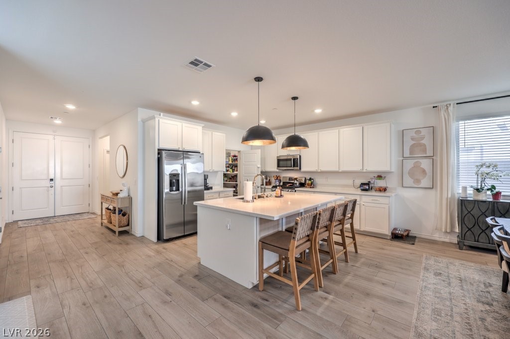 Built in 2023 and better than new! Completely upgraded with all the extras. Features a fully landscaped backyard, custom primary closet, water filtration system, and softener. Two full-size washer/dryer sets - upstairs and downstairs. Thoughtfully designed with ample space throughout: large kitchen pantry, oversized family room, huge laundry room, expansive loft, and 2.5-car garage. Primary suite plus an additional bedroom downstairs. Upgrades include wood look tile plank flooring, white cabinetry, quartz countertops, and stainless steel appliances. Open-concept layout filled with natural light creates seamless flow for everyday living and entertaining. Chef's kitchen overlooks main living area - ideal for gatherings. Upstairs loft offers flexible space for media, office, or playroom. Backyard is ready to enjoy with space to relax or entertain. Truly move-in ready - no waiting, no added expense. No LID/SID