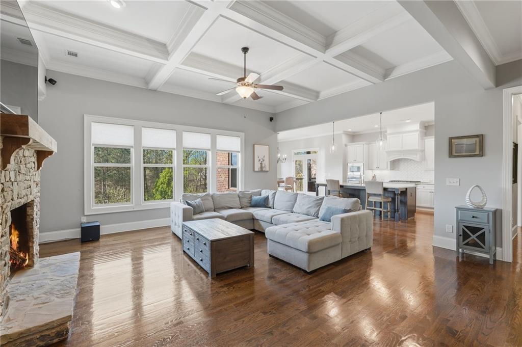 Welcome to this stunning four-sided brick luxury home tucked inside a sought-after gated community, where comfort meets effortless entertaining. Thoughtfully designed for gathering with friends and family, this home features a fully finished basement - perfect for game nights, movie marathons, or hosting guests - and the convenience of two laundry rooms for added functionality. Step outside to your private backyard oasis, complete with a heated, saltwater Gunite pool and spa. Elegant water features and a striking gas torch accent create a true resort-style experience, perfect for unforgettable evenings. In addition, enjoy two private outdoor living spaces with fireplaces, ideal for year-round entertaining or relaxing in a cozy setting. With a WiFi-enabled remote system, you can easily manage pool settings with ease year-round. Whether you're hosting summer pool parties, holiday celebrations, or quiet nights under the stars, this home was made for bringing people together and creating lasting memories. Seamlessly blending timeless construction, modern upgrades, and exceptional indoor-outdoor living, this is truly a rare offering. All of this conveniently located near schools, shopping, restaurants, Lake Lanier, golf courses, and I-85!