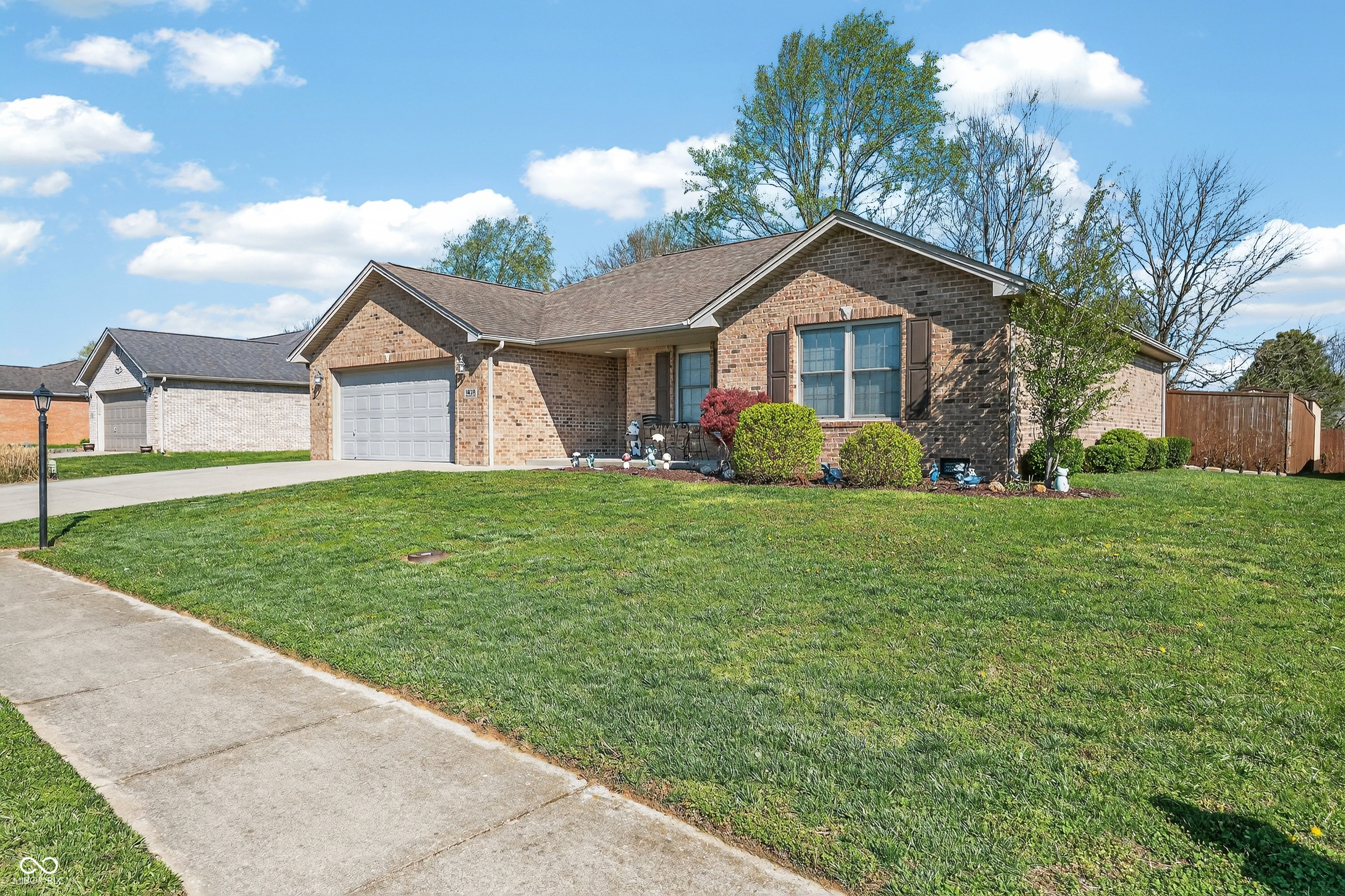 Welcome home to this charming all-brick ranch offering 3 bedrooms and 2 full baths in a desirable location! Step inside and be greeted by a spacious living room featuring a vaulted ceiling that creates an open, airy feel perfect for relaxing or entertaining. The kitchen provides ample cabinet and countertop space, and all kitchen appliances remain, making it move-in ready from day one. The primary suite offers comfort and convenience with a walk-in shower and double closets for plenty of storage. Enjoy outdoor living in the privacy-fenced backyard, complete with a generously sized 12x16 covered back porch, ideal for gatherings, grilling, or simply unwinding. A storage shed is also included for your tools and extras. In the front, a covered porch provides the perfect spot to enjoy your morning coffee. This home is connected to city water, with an existing well still on the property (not currently in use). New HVAC in 2023! Conveniently located near shopping, dining, and quick access to I-65, this home combines comfort, functionality, and location. Don't miss your chance to make this one yours!