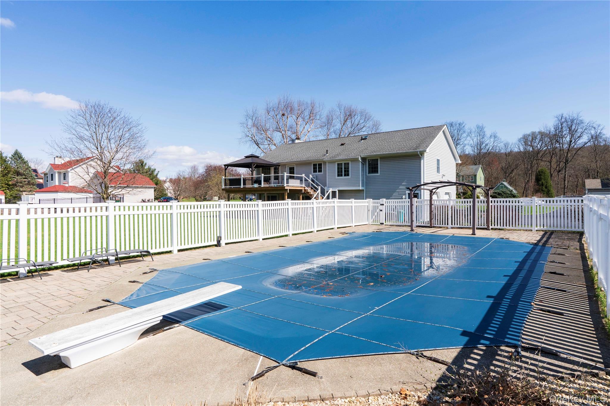 Welcome to this beautifully maintained custom-built raised ranch. This 3-bedroom, 3 full bath home is located in the highly desirable Covered Bridge Farm community in East Fishkill. Filled with natural light and thoughtfully designed for both everyday living and entertaining, this home offers comfort, space, and versatility. Upon entering, you're welcomed into the main living room featuring a cozy fireplace and a large picture window that floods the space with sunlight, creating a bright and inviting atmosphere. The updated kitchen offers both functionality and style, with direct access to the outdoor living area which leads down to the patio and pool - perfect for seamless indoor-outdoor entertaining. The main bedroom offers space and the en-suite has been fully renovated, offering heated floors and additional closet space with a tranquil, spa-like retreat ideal for relaxing at the end of the day. The lower level expands your living space with a generously sized family room, and a dedicated office/den - perfect for today's work-from-home lifestyle - and a full bath for added convenience. This level also provides access to the basement, offering additional storage or potential for future use. A two-car garage completes the home's practical features. Step outside to your own private backyard oasis. A beautiful deck, off the kitchen, partially covered with a gazebo, overlooks the stunning 20x40 in-ground pool. The landscaped yard is truly summer-ready - ideal for entertaining or simply enjoying peaceful outdoor living. This house has been fully updated with major improvements. This includes the kitchen, new roofing, central air system, all bathrooms, high efficiency oil burner, Reverse Osmosis Water System in the kitchen, new pool liner, portable generator, just to name a few. Located in a neighborhood close to shopping, dining, and major commuter routes, this home offers the perfect balance of lifestyle and location. 2 Minutes to the Taconic State Parkway Don't miss your opportunity to make this exceptional property your own!