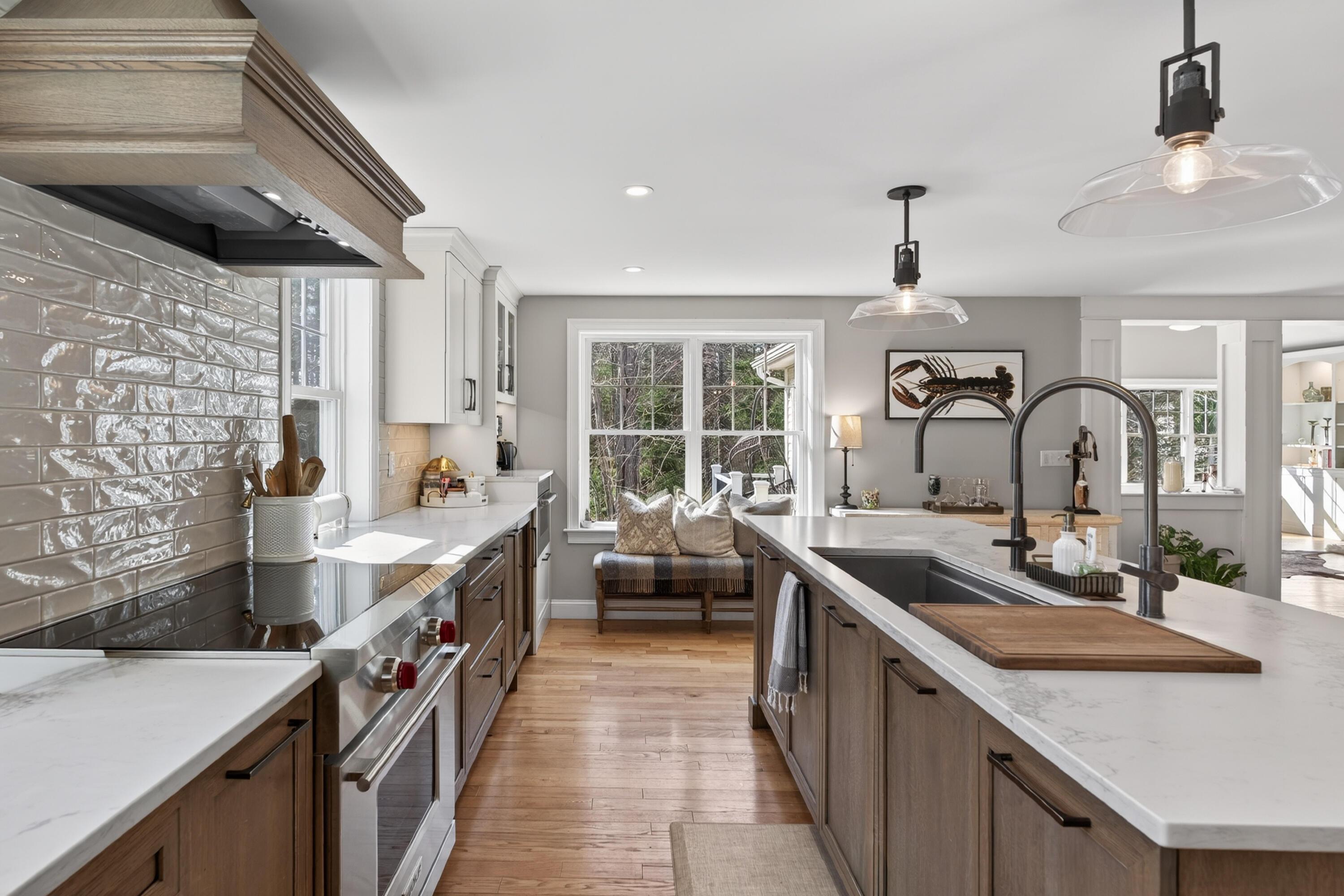 28 Elmwood Avenue is set in Scarborough's highly desirable Oak Hill neighborhood, offering an ideal blend of quiet residential living and unmatched convenience. Tucked away on a peaceful dead-end street, this location provides a sense of privacy while keeping you just minutes from everything Scarborough and greater Portland have to offer, beautiful beaches, shopping, restaurants, top schools, and quick access to the highway for an easy commute in any direction. Inside, the home is wonderfully appointed with thoughtful finishes throughout and a stunning, well-designed kitchen that serves as the heart of the home. The open-concept floor plan creates a natural flow between the kitchen, dining, and living spaces, perfect for both everyday living and effortless entertaining. Set on a beautifully landscaped lot, the property feels both polished and inviting. The fully fenced-in yard offers privacy and functionality, while the deck and patio extend your living space outdoors, ideal for summer gatherings or quiet evenings at home. Blending comfort, style, and location, this home offers an exceptional opportunity in one of Scarborough's most convenient and established neighborhoods.