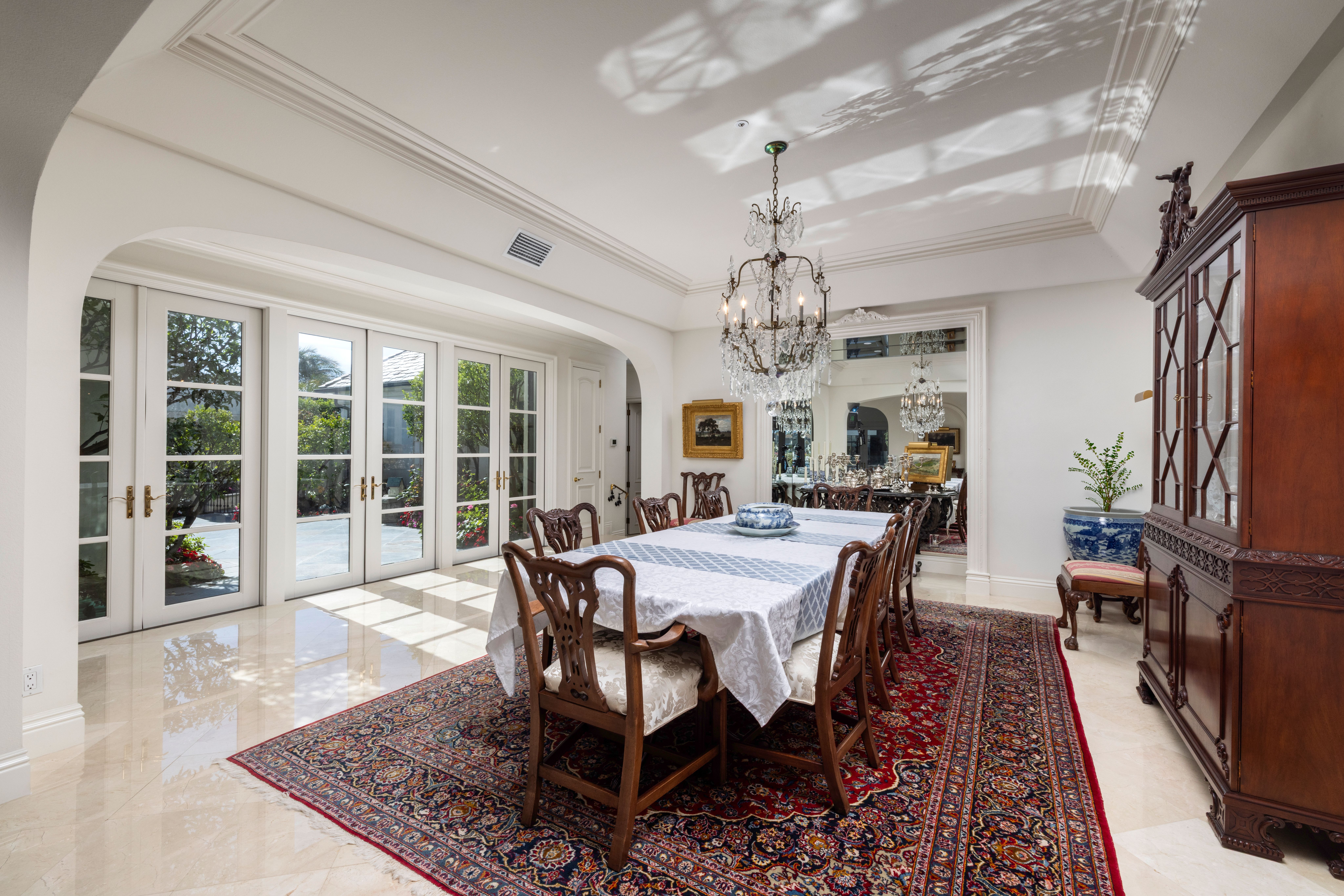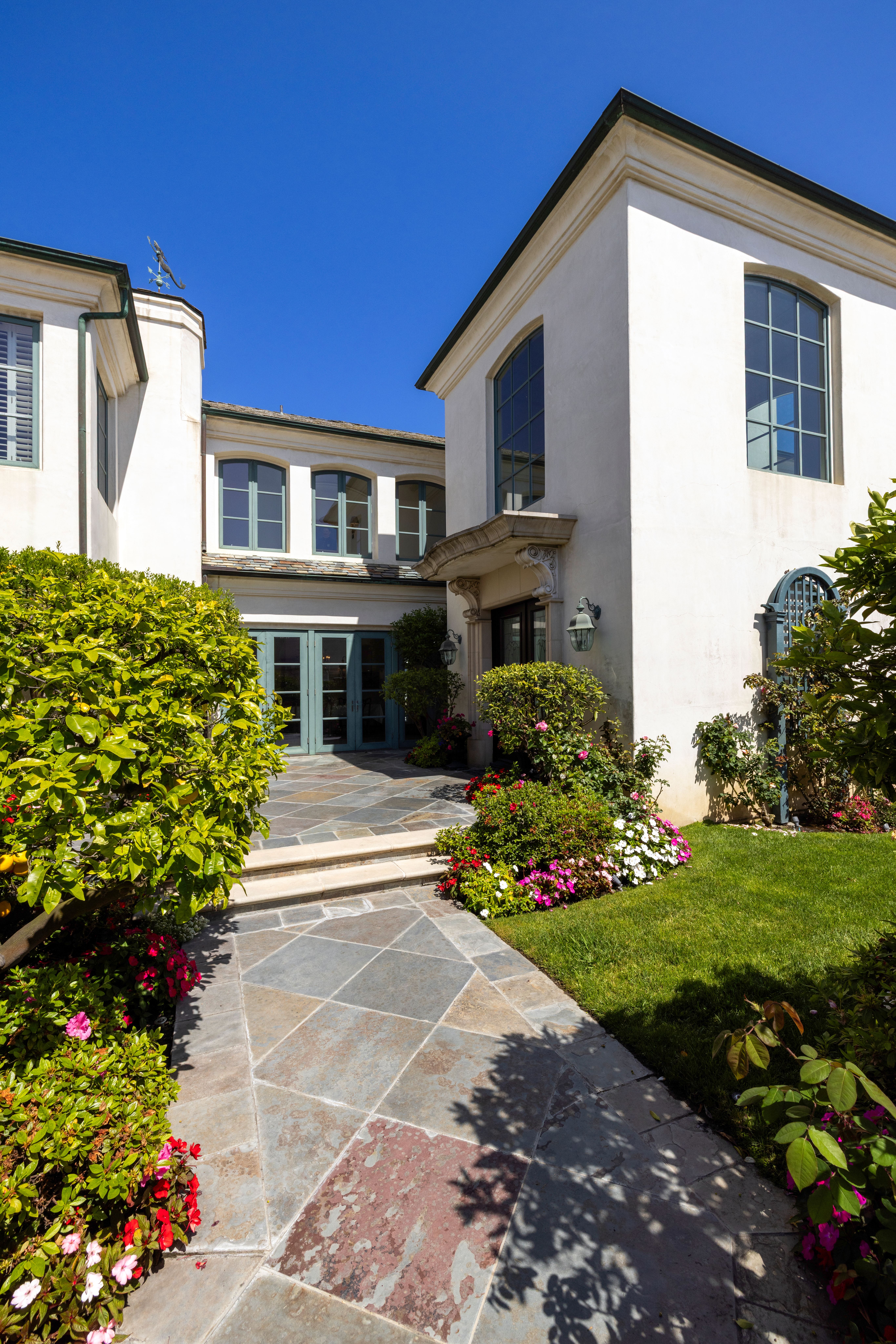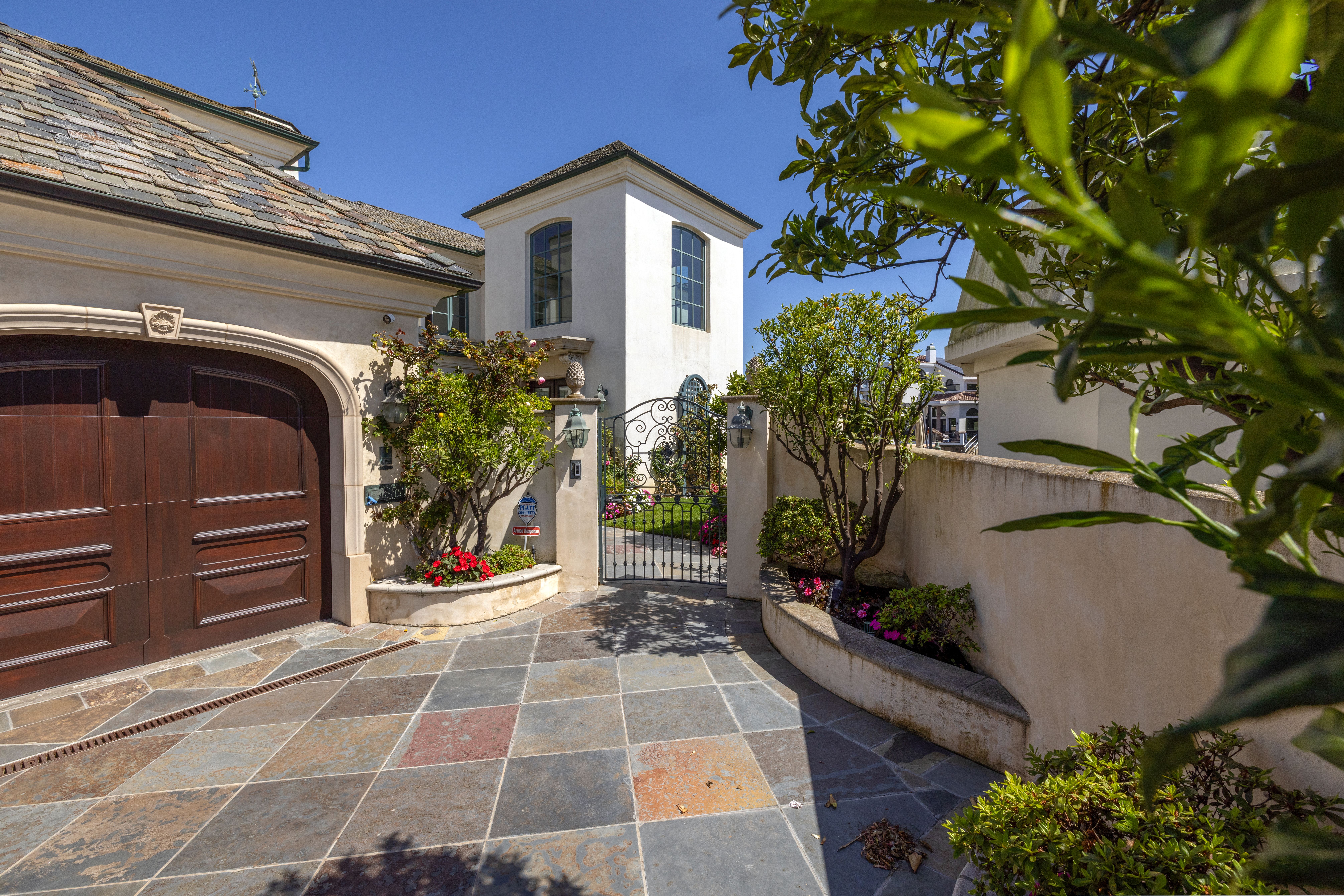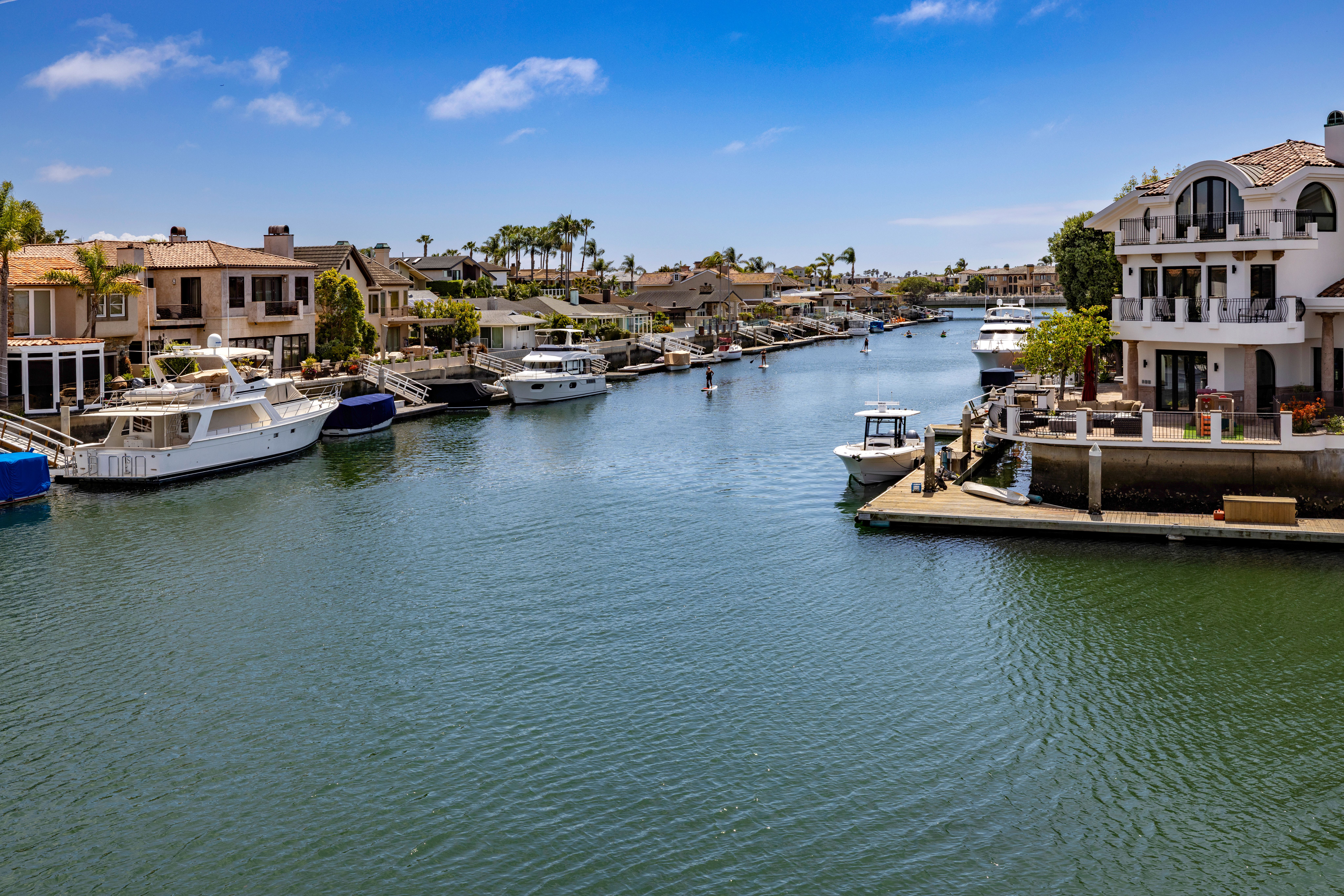 Positioned on a rare corner point within Huntington Harbour, this custom built French Provincial residence commands one of the community's most exceptional waterfront settings – defined by two-sided water exposure, expanded channel frontage, and large dock that could be expanded up to 170 feet. Set on an approximately 8000-square-foot parcel, the home encompasses over 4,500 square feet of interior living space, with 3 car garage, four bedrooms, all en-suite and four-and-a-half baths arranged across a generous, highly livable floor plan. The home’s dramatic foyer and sweeping staircase contribute to the structural presence and underlying scale that define the Harbour's most substantial properties — and that provide the foundation for elevated living. Where most waterfront properties offer a single linear edge, this rare point location broadens the visual field, deepening the connection to the surrounding channels, and creating a spatial relationship to the Harbour with maximized captivating views. The interior spaces are organized around volume and natural light, with well-proportioned living areas designed to support both comfort and larger-scale entertaining. A clear separation between primary and secondary spaces allows the home to function with ease across a range of uses, with the primary suite positioned as a private retreat and additional en-suite bedrooms offering flexibility for guests or extended family. The strong architectural foundation, along with layers of fine materials, enhances the entire dwelling. A small selection includes a dramatic stair; abundant use of stone and custom millwork; three fireplaces; multiple rooms complemented by elegant ceiling details; and an impressive assemblage of custom windows, French doors, and stacking rows of glass capturing cascading illumination and the splendid exterior surround. The outdoor spaces provide a delightful extension of the residence with a private, verdantly landscaped garden courtyard and a sprawling, wrapping waterside terrace. Set just moments from the sands of Sunset Beach, the property is further distinguished by its optimal proximity to the region’s myriad recreational offerings, sought-after dining and shopping, as well as community and local resources – an optimal opportunity to enjoy the benefits of a coastal lifestyle and elegant accommodations.