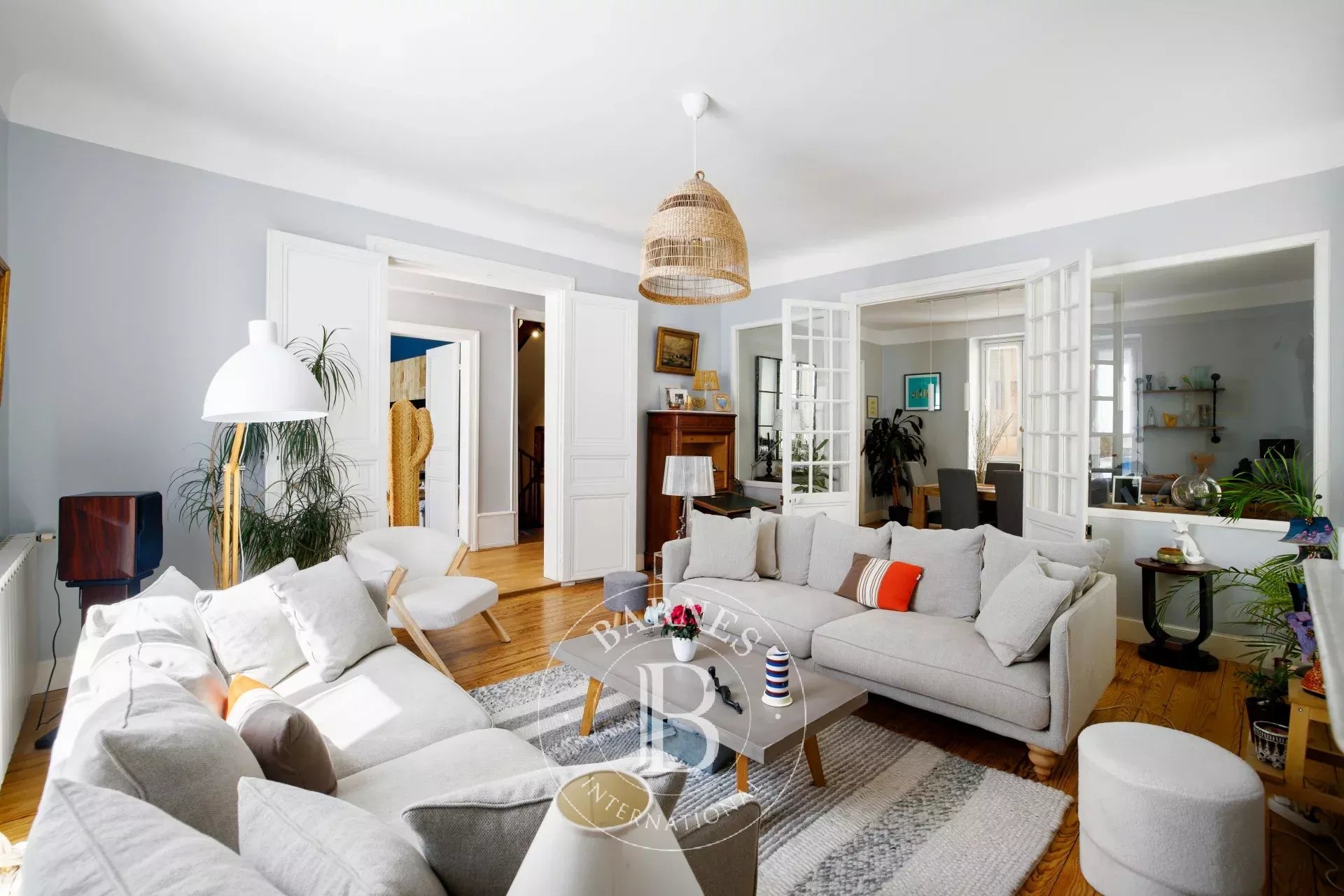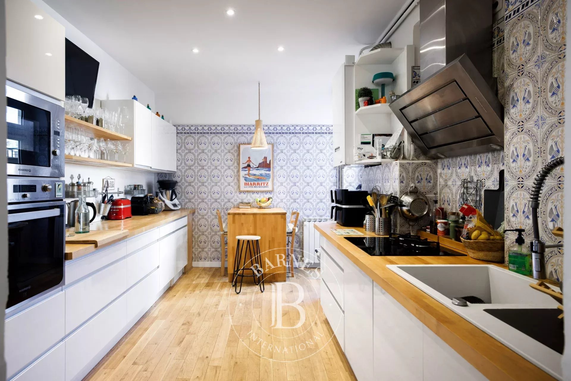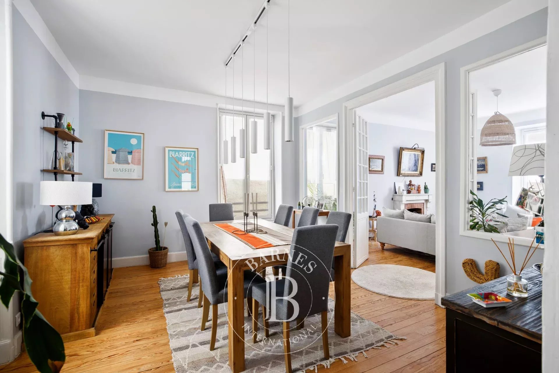 Biarritz, immediate access to the beach, superb apartment fully renovated in 2021, offering 257 m² of Carrez law surface (and 294.32 m² total surface area), featuring a spacious south-facing terrace with sea views. Large living room with fireplace. Wooden flooring and very high ceilings. The apartment is bright and features 6 bedrooms. Cellar located in the basement.