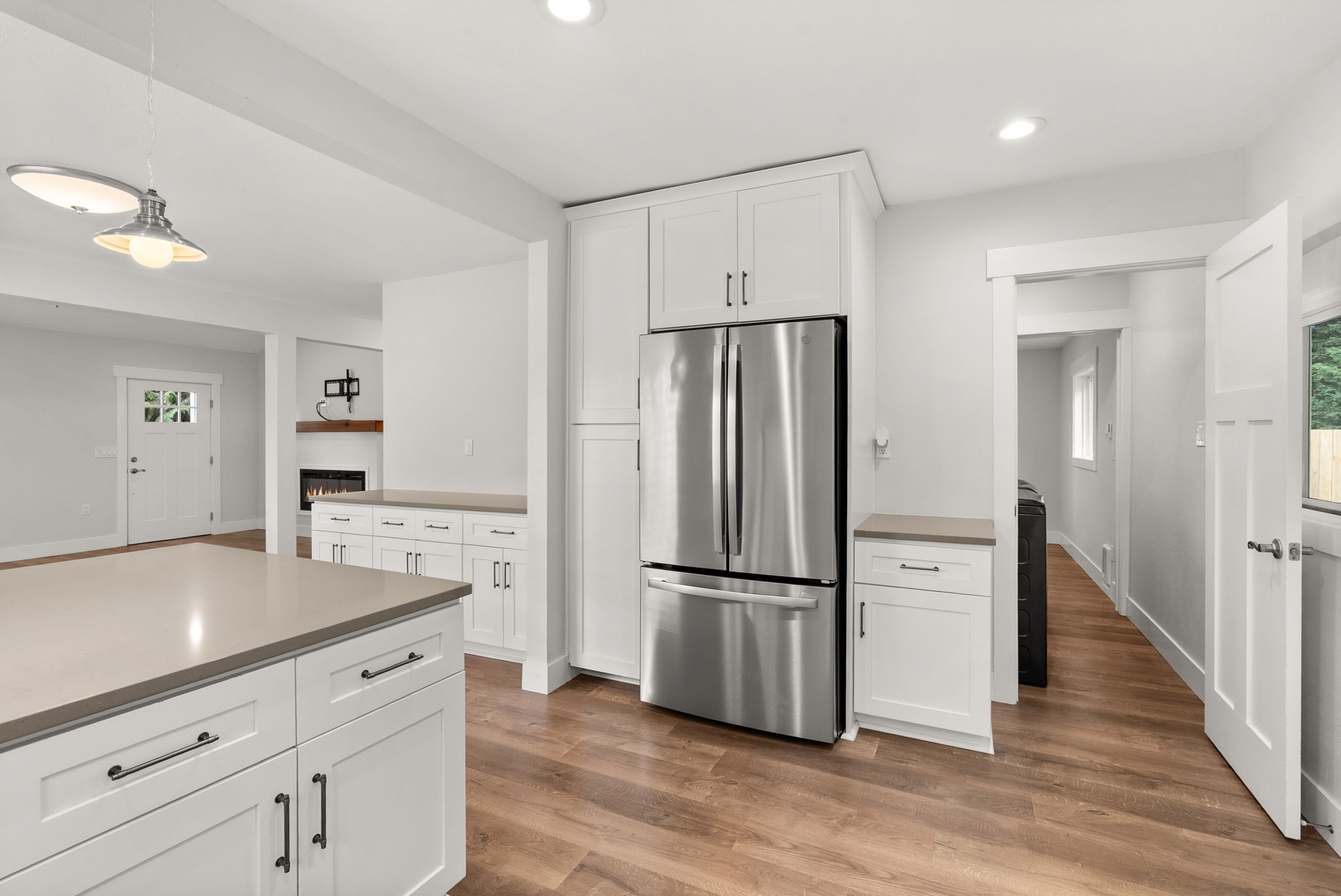 Located in the sought-after South Bay area, this beautifully updated rambler features updated flooring, interior/exterior paint, and a stunning kitchen with quartz countertops. Light-filled living area with a gorgeous electric fireplace and mini split for year-round comfort. Built-in cabinet with quartz countertop off the dining area provides extra storage and display space. All appliances included. Roof is only 3 years old, offering added peace of mind. Situated on a .38+/- acre corner lot with mature landscaping and fruit trees. Plenty of space for RV parking and all your toys. Impressive three-car detached garage/shop with two additional rooms and abundant storage. Close to shopping, dining, and St Peter's Hospital. Covered front and back porches provide year-round enjoyment of the outdoors, even in classic PNW weather. This is a must see!