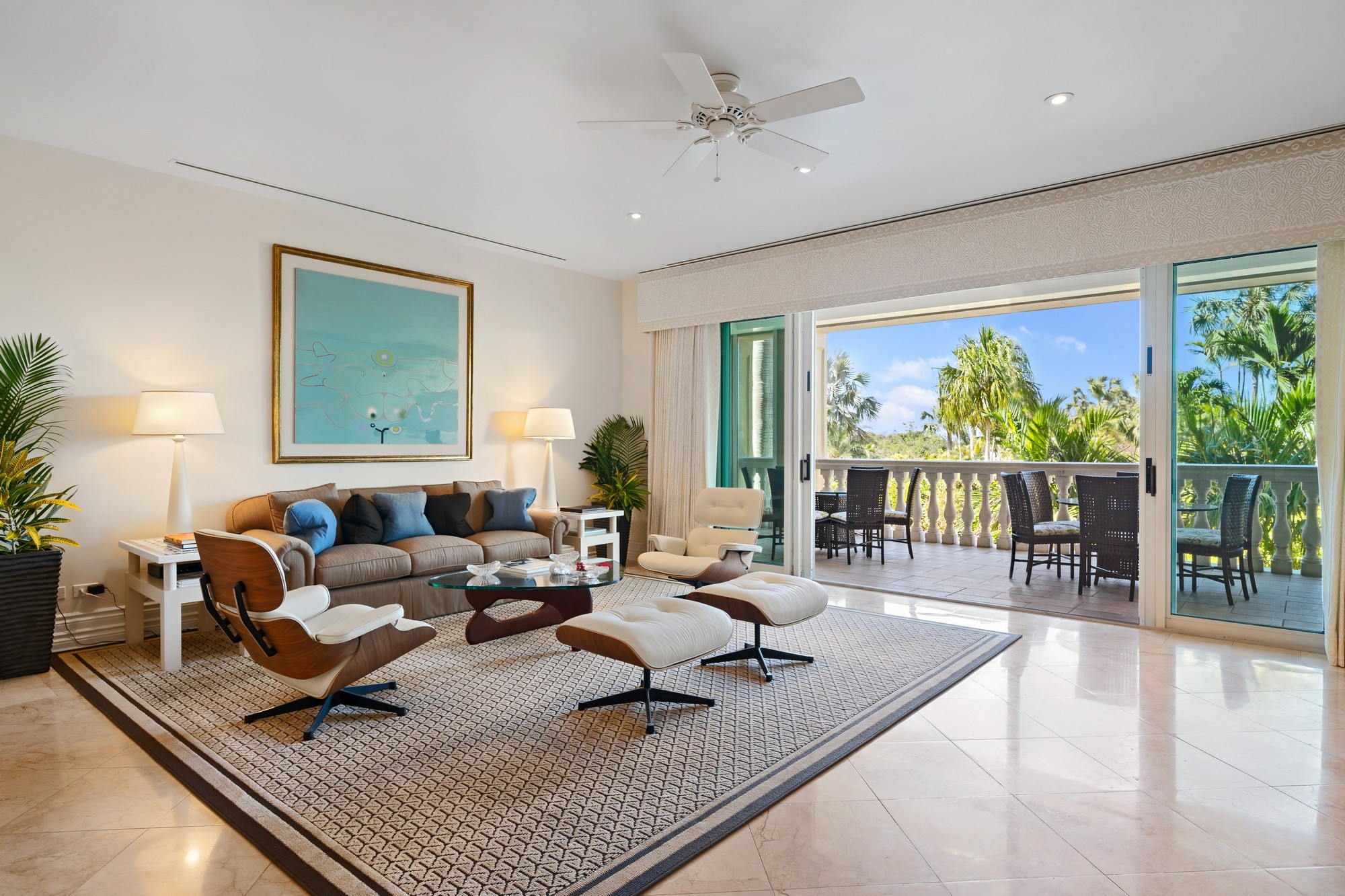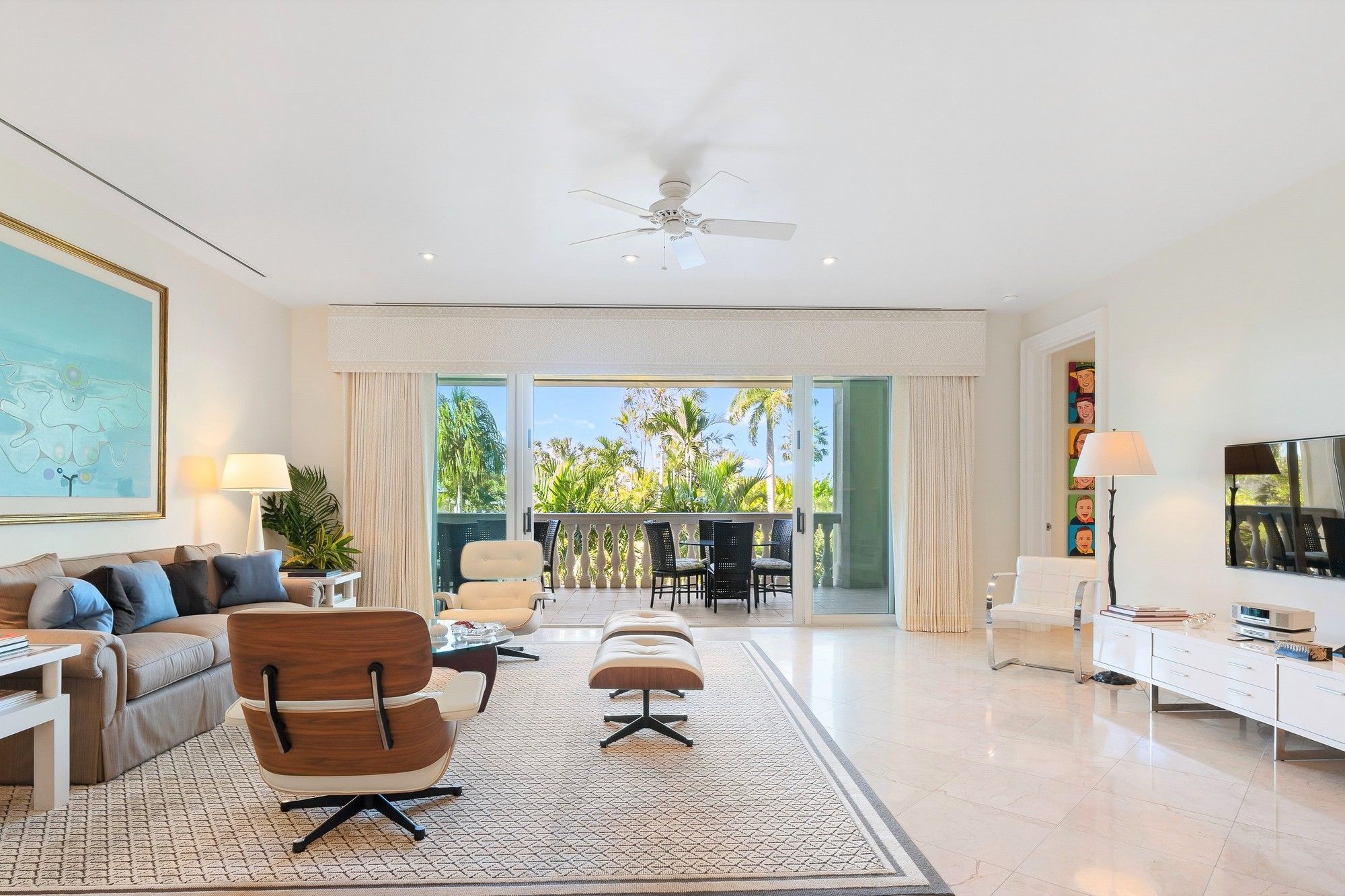 Nestled within the secure, gated enclave of Lyford Cay—one of the most exclusive communities in The Bahamas—Sunnyside Apartment 204 offers the epitome of elegant island living. Set amidst five acres of lush, manicured gardens, this impeccably maintained two-bedroom residence presents a rare opportunity to own a refined second-floor apartment in one of the community’s most coveted addresses. With a grand terrace overlooking cascading waterfalls and tropical landscaping, this home invites serene indoor-outdoor living and entertaining in a timelessly luxurious setting.Signature FeaturesLocated in prestigious Lyford Cay, a gated, private communitySituated within Sunnyside Condominiums on five landscaped acresExpansive 539 sq. ft. private terrace with garden and waterfall viewsSpacious living room with floor-to-ceiling sliding glass doorsElegant dining room with seating for 10Renovated kitchen with Thermador appliances and center islandMaster suite with sitting area, walk-in closet, and direct terrace accessSecond bedroom with en-suite bath and generous closet spaceStorm windows and roll-down shutters for enhanced securityCommunity amenities include pool, exercise room, putting greenMain Living AreasThe main living area exudes understated sophistication. The spacious living room is bathed in natural light from wall-to-wall sliding doors, which open seamlessly onto the expansive terrace, creating a tranquil extension of the living space. Adjoining the living room is a generous dining room, comfortably accommodating ten guests—a perfect space for elegant dinner parties or intimate gatherings.Kitchen & Utility AreasThe kitchen is a sleek, modern space outfitted with high-end Thermador appliances and a central island ideal for culinary preparation or casual dining. Adjacent to the kitchen, a well-appointed laundry room features custom built-in storage and cabinetry, alongside a convenient powder room for staff use.Primary SuiteOffering a peaceful retreat, featuring plush wall-to-wall carpeting, a cozy sitting area, and a spacious walk-in closet. The en-suite bathroom is elegantly designed, and direct access to the terrace allows for morning coffee or evening reflection amid the lush garden views.Guest BedroomThe second bedroom is equally well-appointed, offering a full en-suite bathroom with a walk-in shower and a generous closet. Ideal for family or guests, this private suite ensures comfort and convenience.Exterior & Outdoor LivingA defining feature of Apartment 204 is the expansive terrace—measuring 539 square feet—offering sweeping views of the tropical gardens and water features below. Whether hosting guests or enjoying a quiet moment surrounded by nature, this outdoor space exemplifies the Caribbean lifestyle at its most refined.Sunnyside AmenitiesSunnyside Condominiums provide residents with an array of premium amenities, including 24-hour security, a full-time doorman, underground parking, and a dedicated storage unit. Residents also enjoy access to a swimming pool, an exercise room, and a charming putting green. A standby generator ensures uninterrupted comfort and security.