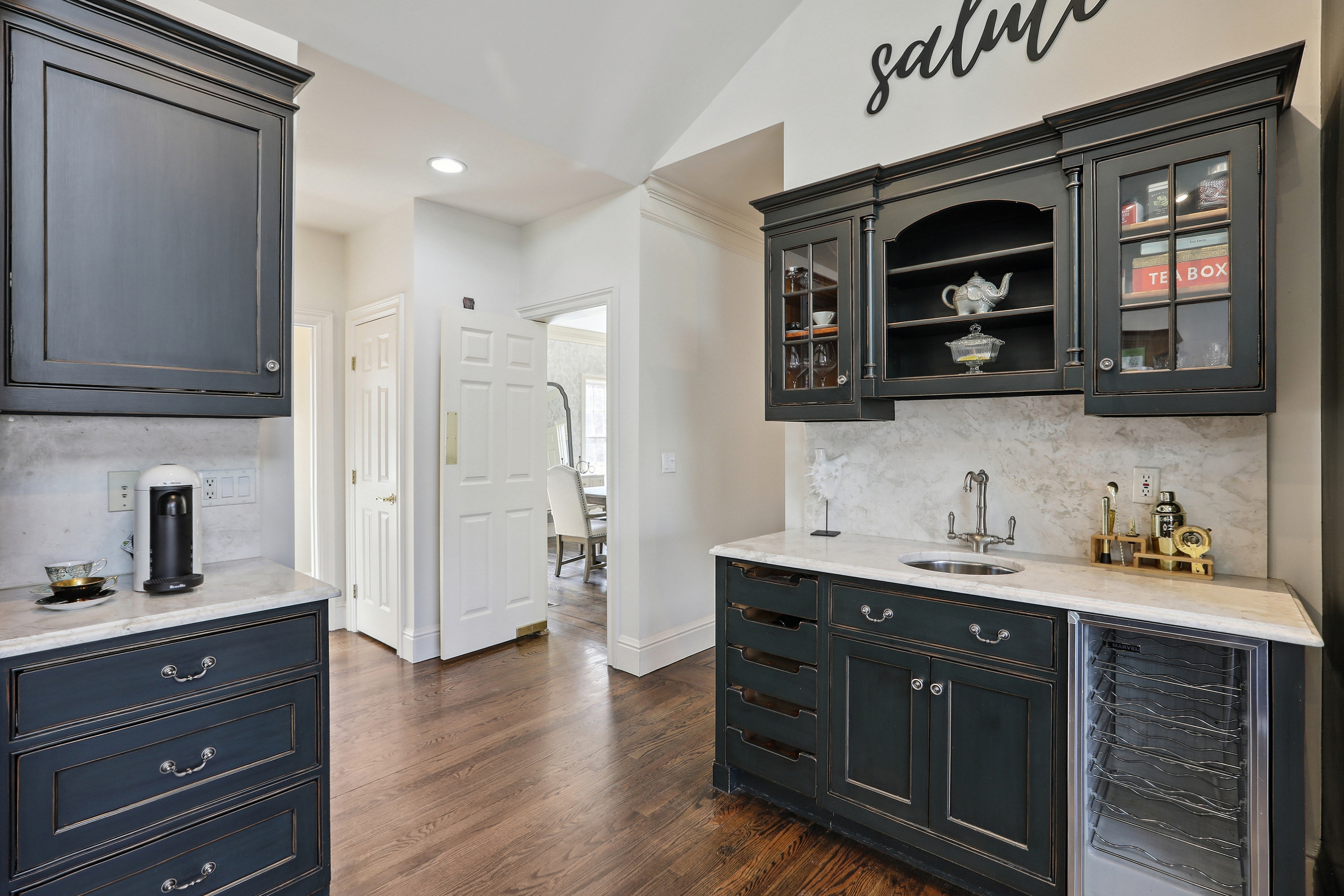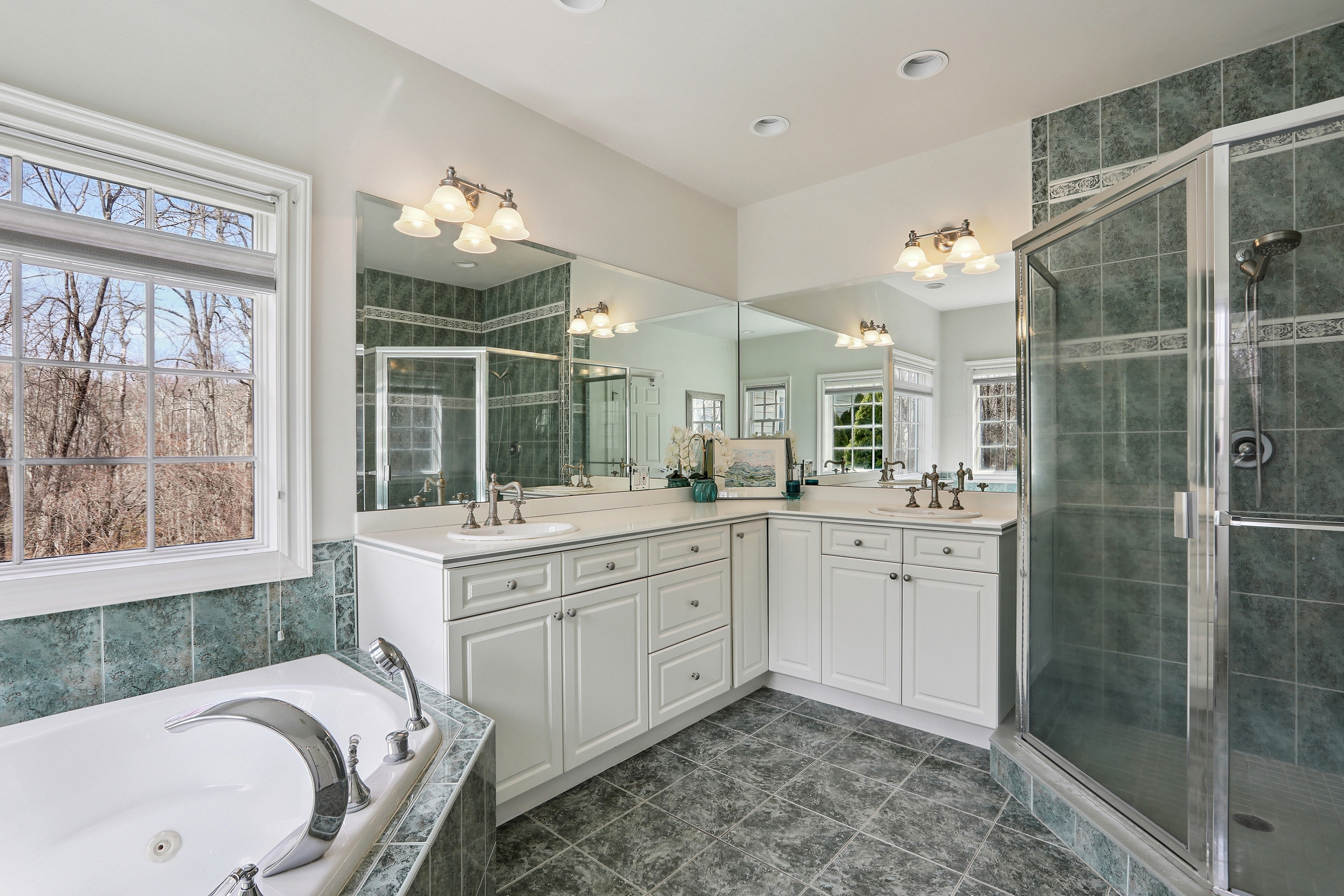A dramatic two-story entry sets the tone, drawing your eye to the sun-drenched great room, where soaring ceilings and walls of glass frame ever-changing light. The eat-in kitchen with vaulted ceiling and skylights feels bright and inviting, complimented by premium appliances including a six-burner Viking cooktop, double ovens, Sub-Zero refrigerator, and Bosch dishwasher. A marble backsplash, expansive center island, and wet bar with beverage refrigerator complete the space. Designed for both everyday living and effortless entertaining, the kitchen flows into the family room with a striking double-sided fireplace, as well as the formal dining room. The main level primary features a vaulted ceiling, dual walk-in closets, and ensuite bath. The office offers a refined work-from-home setting, complete with custom built-ins and a marble fireplace. Upstairs, four bedrooms and two full baths are thoughtfully arranged into two suite-style layouts, offering flexibility for family, guests, or additional workspace. The finished walk-out lower level expands the home's versatility, featuring a large rec space and a separate area currently used as a media room, also ideal for an in-law or au pair suite with its own full bath. Outdoors, a full-length deck spans the rear of the home, accessible from both the kitchen and family room, creating seamless indoor-outdoor living. Located minutes from top-rated schools, golf, dining, shopping, and commuting routes.