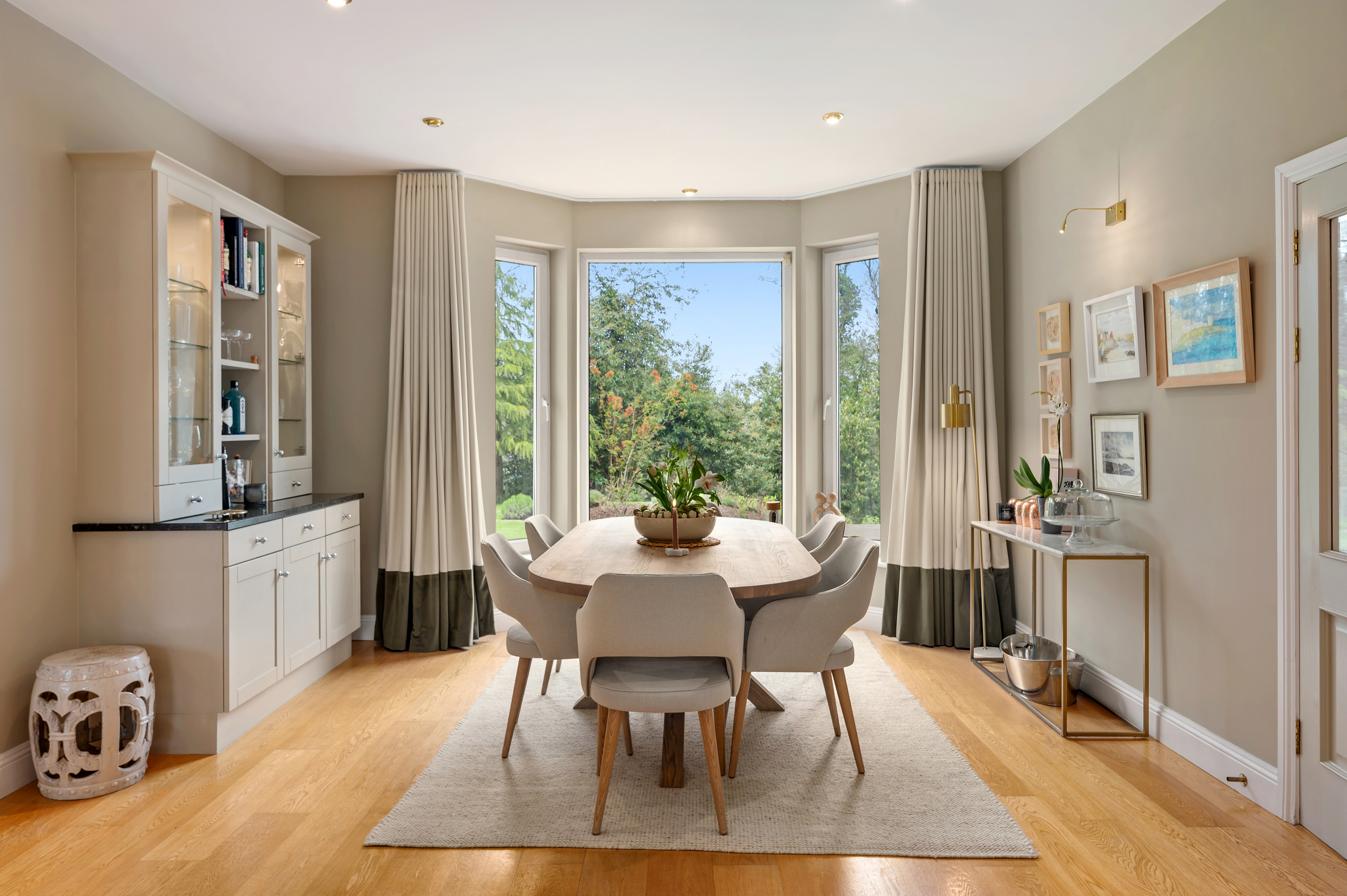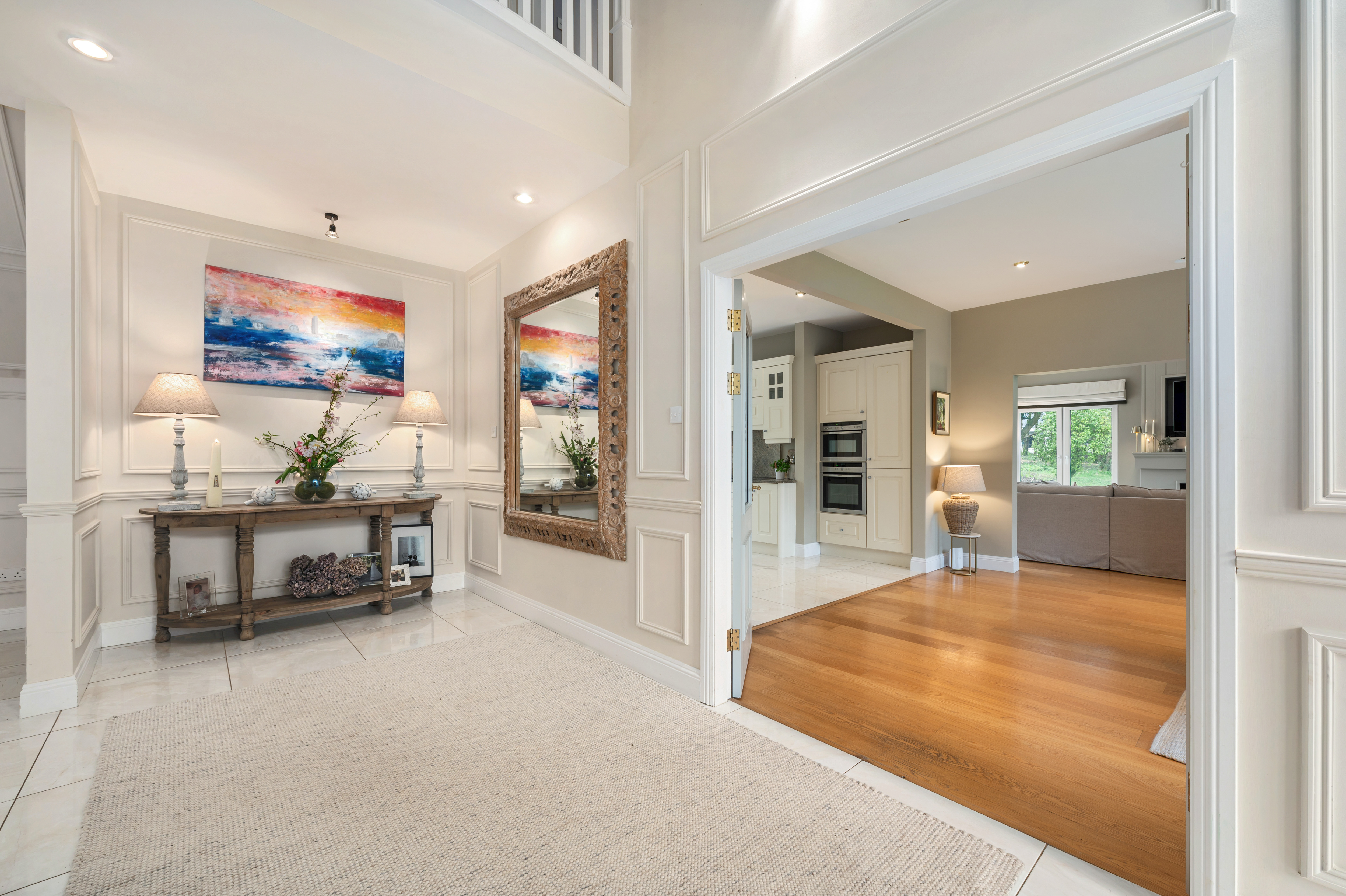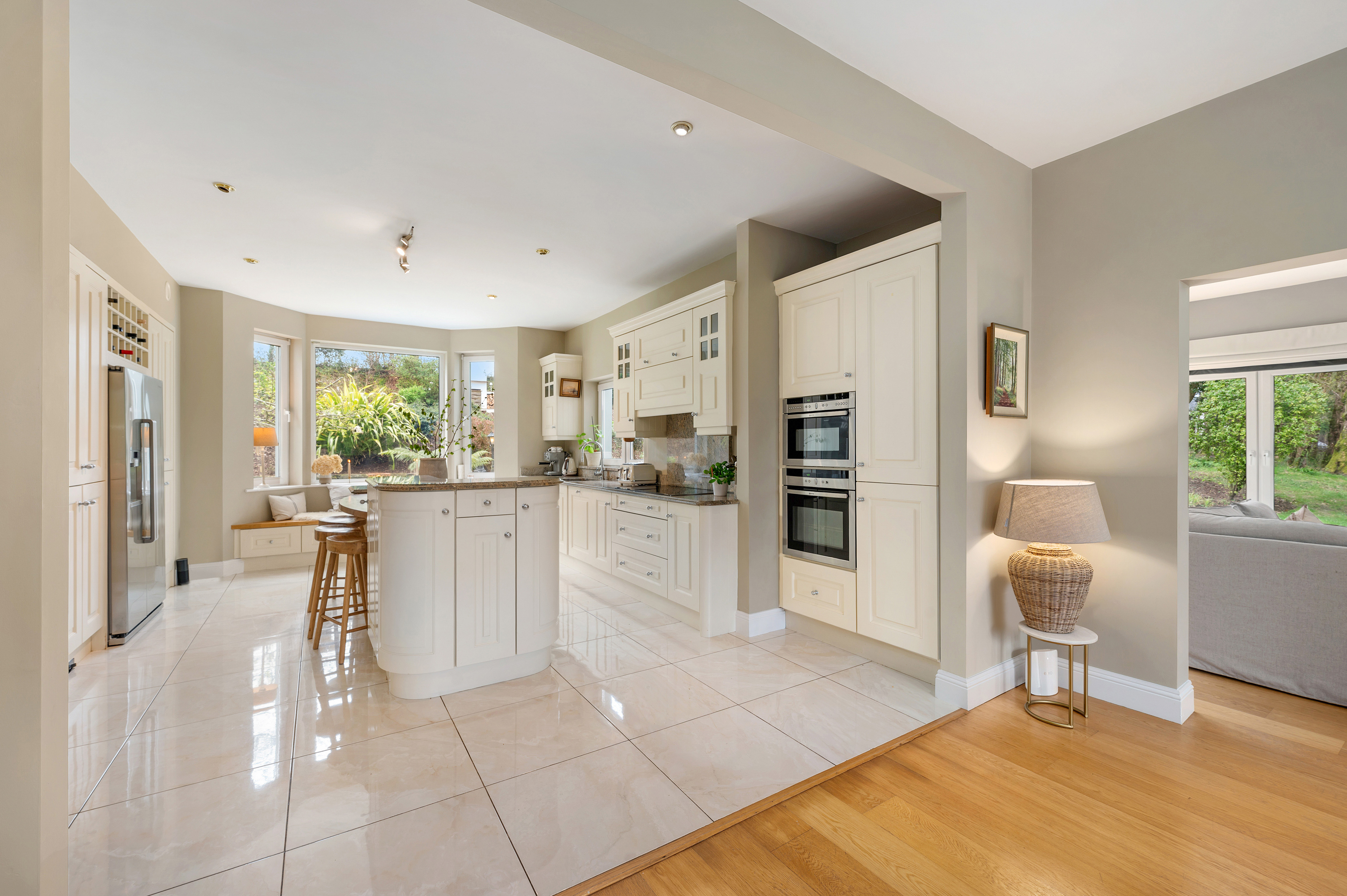 Internally, Beechville House is equally impressive. Upon entering, you are greeted by a striking entrance hall with a dramatic 20-foot ceiling, setting the tone for the rest of the home. A multi-fuel stove forms the centrepiece of this space, creating an immediate sense of warmth and understated luxury. The design throughout is both elegant and functional, with generous living areas that are perfectly suited to modern family living and entertaining.
