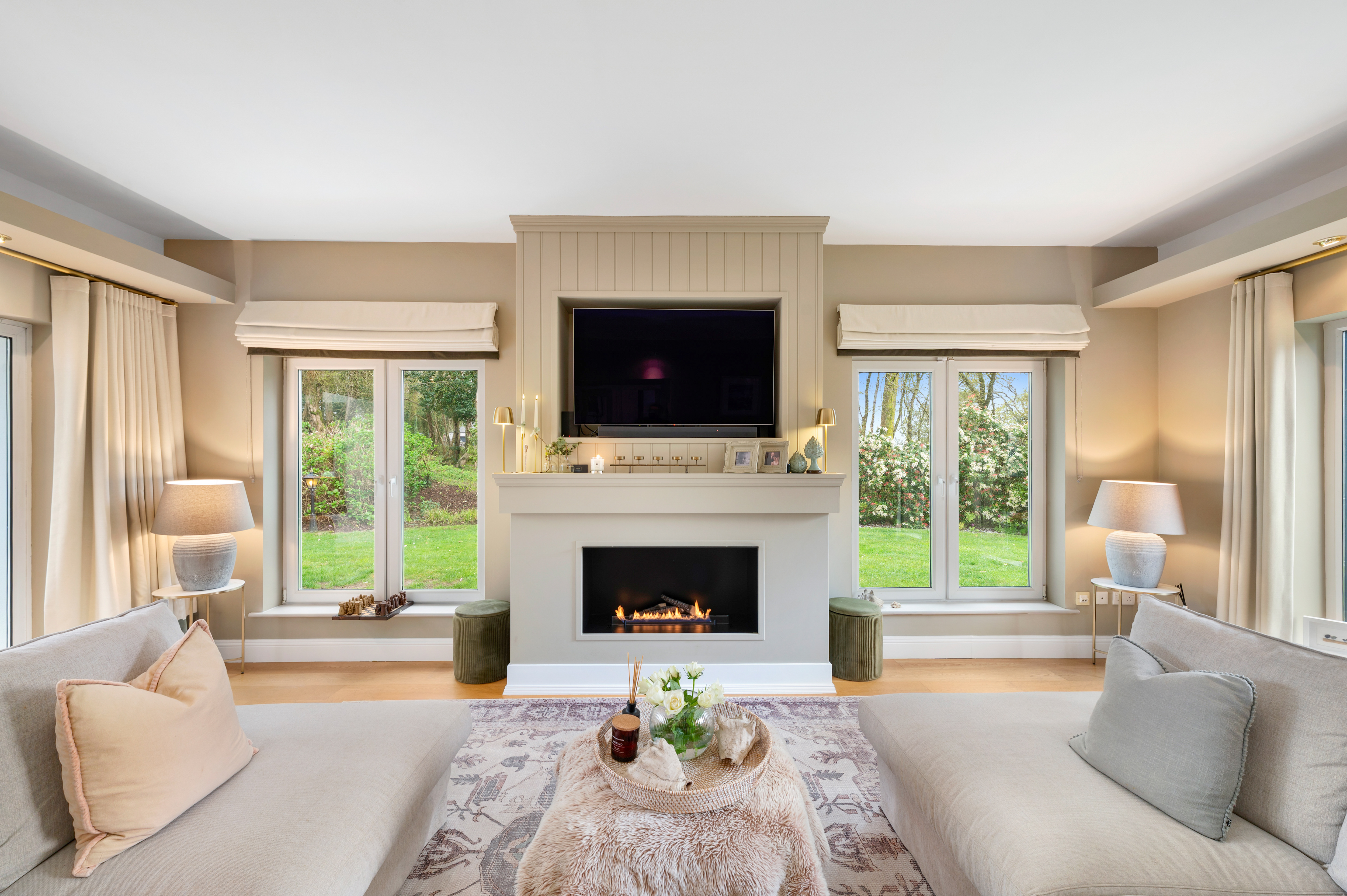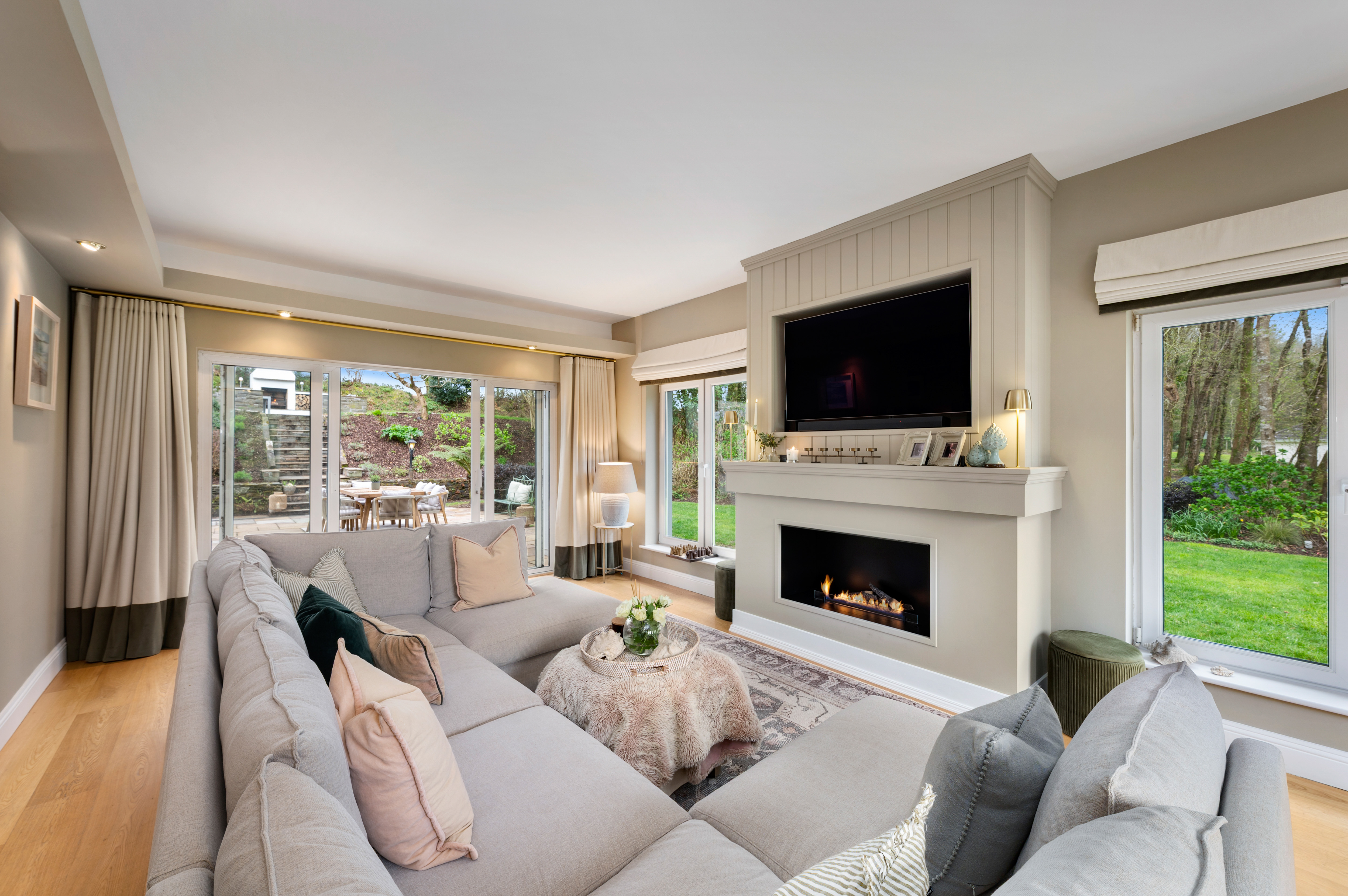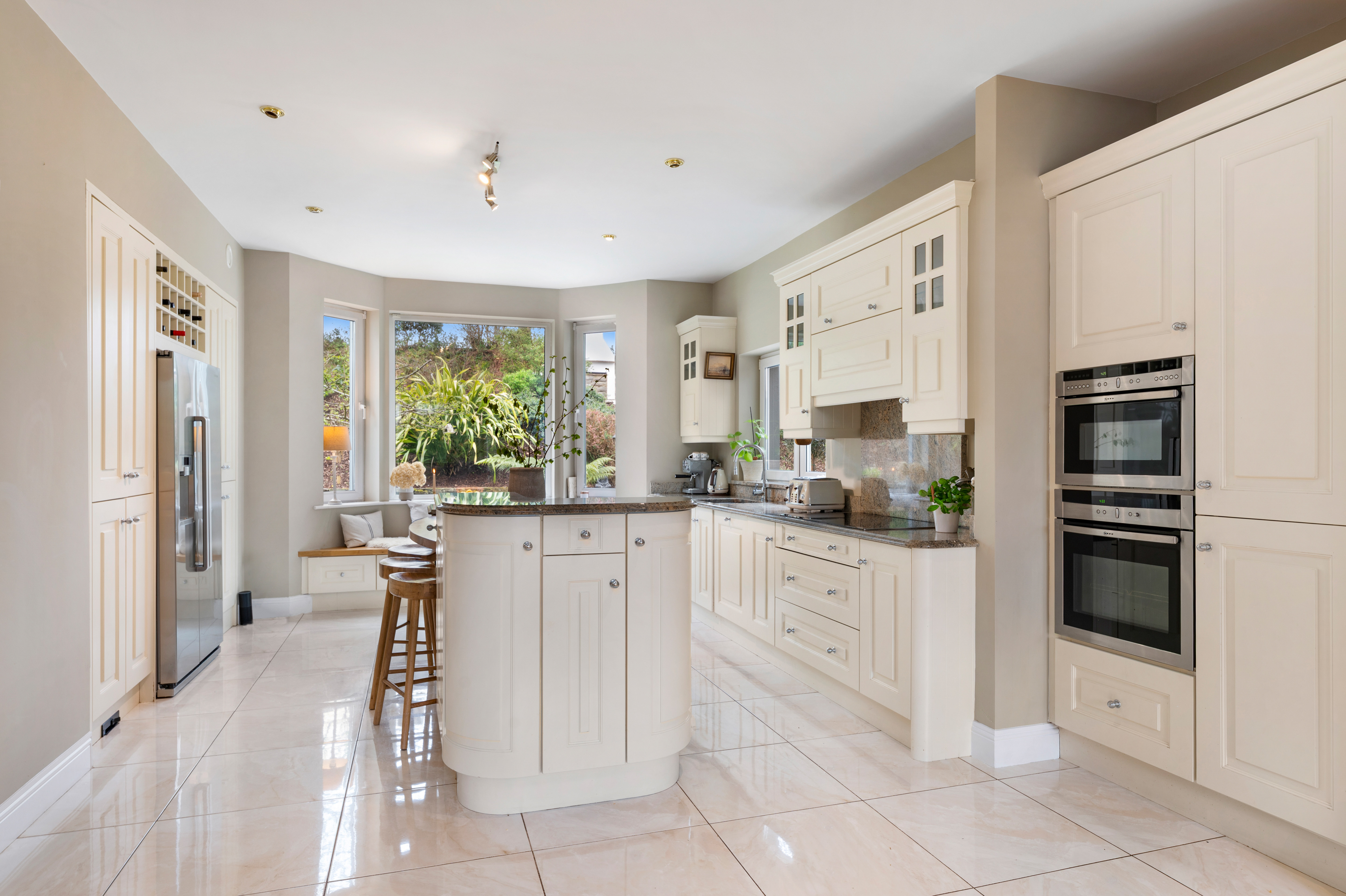 Internally, Beechville House is equally impressive. Upon entering, you are greeted by a striking entrance hall with a dramatic 20-foot ceiling, setting the tone for the rest of the home. A multi-fuel stove forms the centrepiece of this space, creating an immediate sense of warmth and understated luxury. The design throughout is both elegant and functional, with generous living areas that are perfectly suited to modern family living and entertaining.