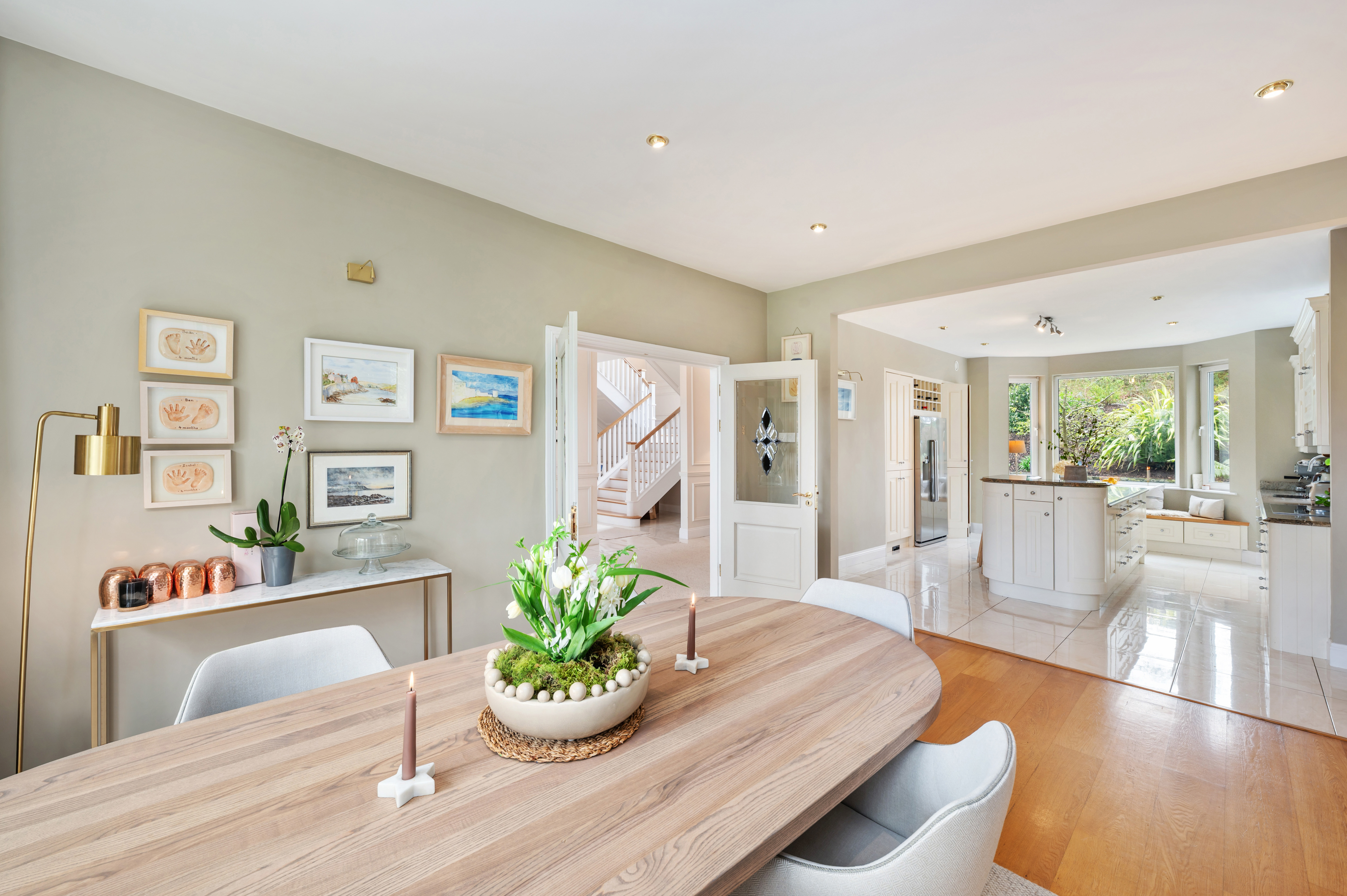 Beechville House, located on the highly sought-after Crosshaven Road in Brookwood, represents a rare opportunity to acquire a truly exceptional family home set within a private and picturesque setting. Extending to over 5,000 square feet and positioned on approximately 1.7 acres, this magnificent five-bedroom detached residence effortlessly combines luxury living with modern energy efficiency, all surrounded by stunning natural beauty.