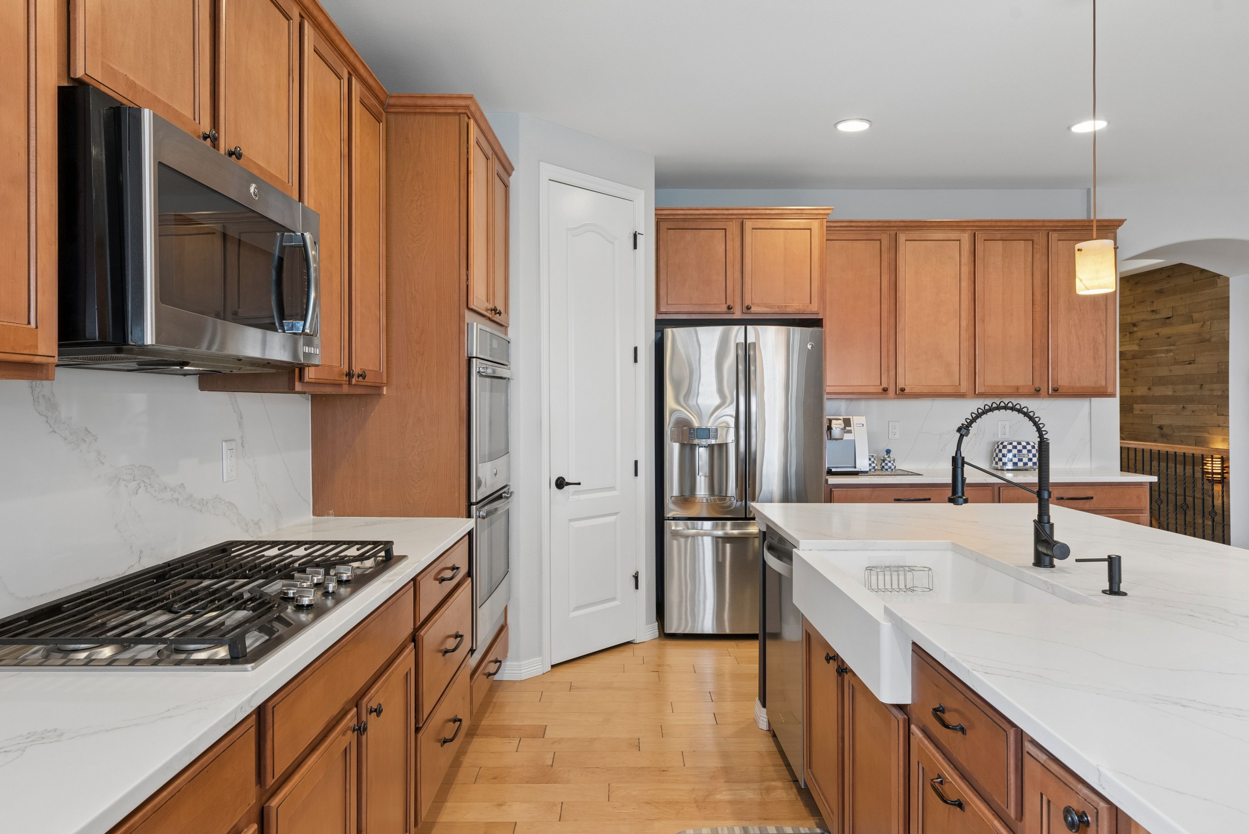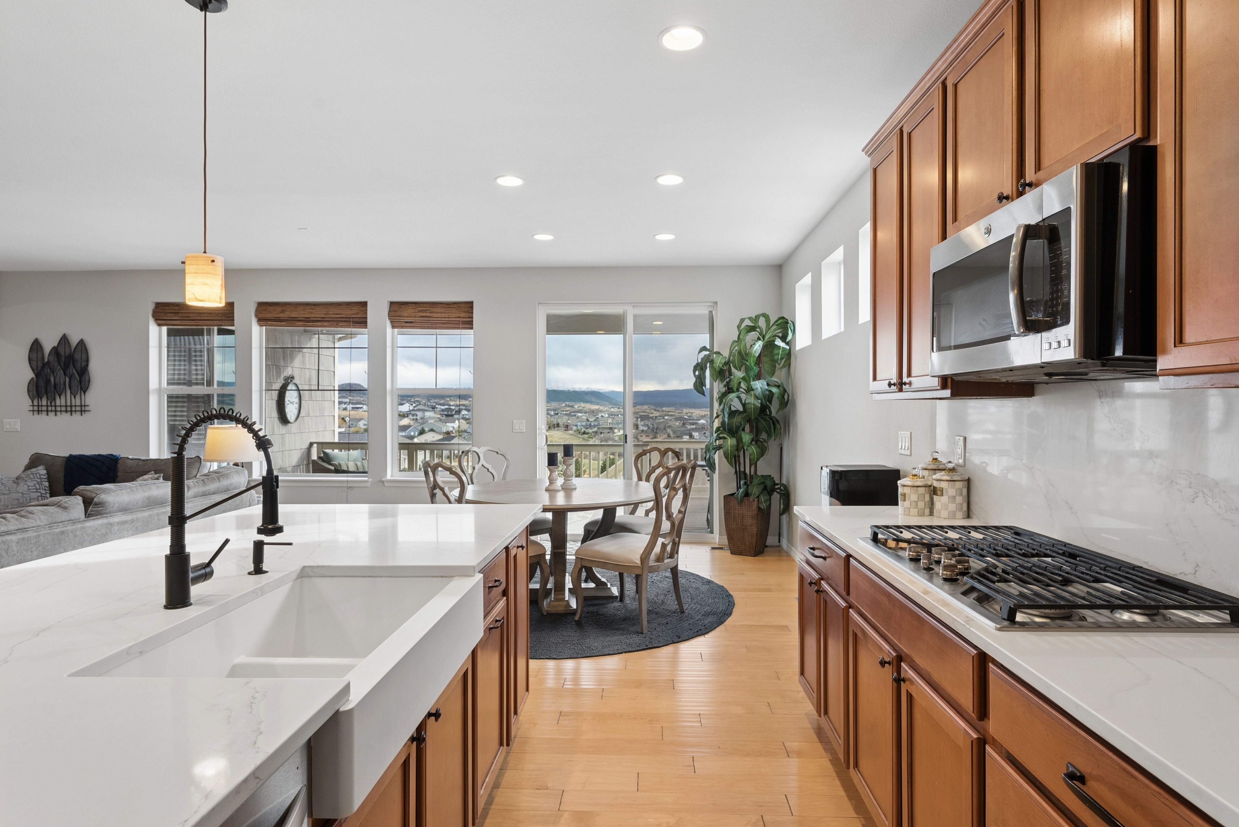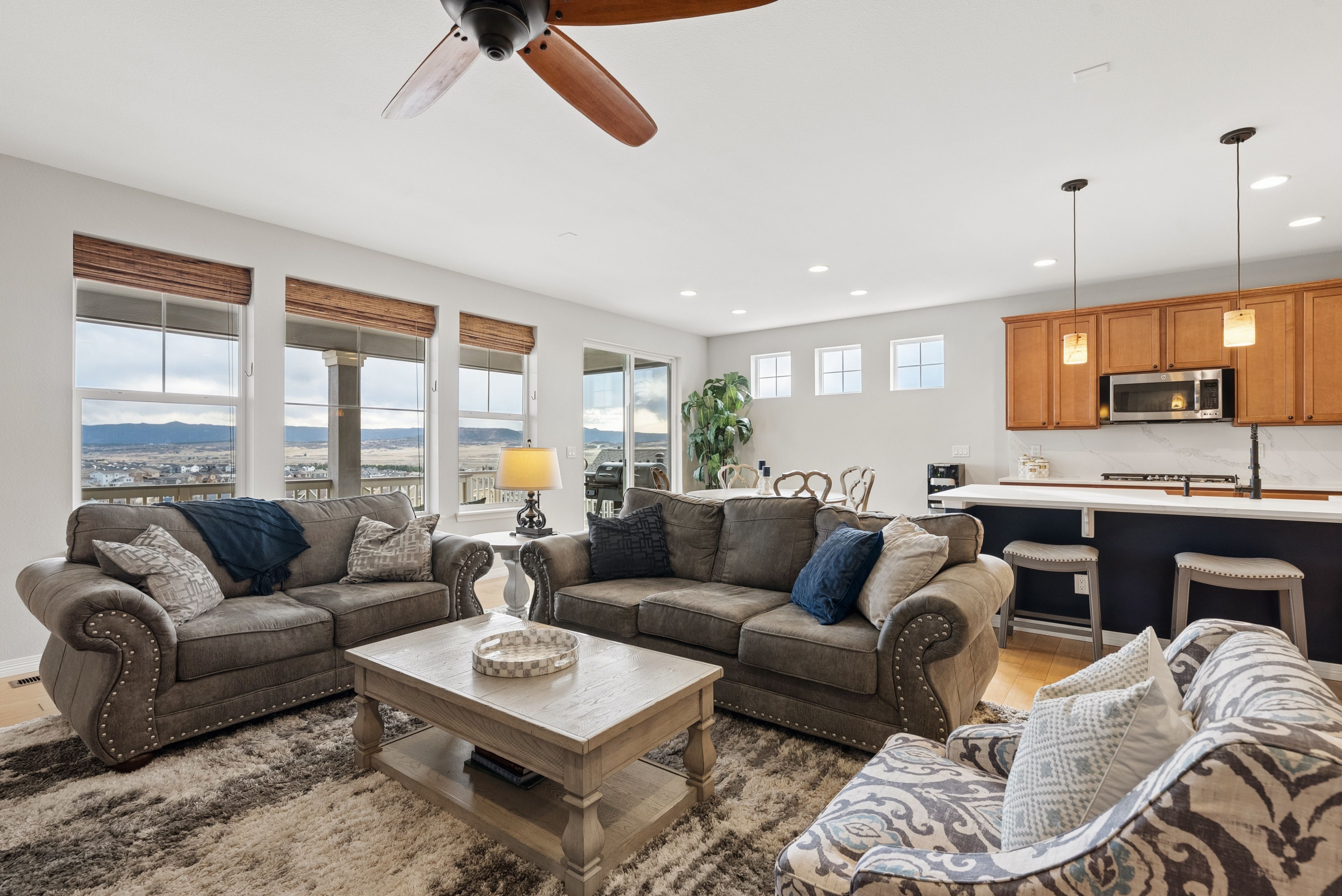 Exceptional home on premier lot in highly sought-after community. Open space behind and directly across the street. Breathtaking views of Pike's Peak, Devil's head and Dawson Butte, expansive skies, and unforgettable sunsets—offer a rare sense of privacy that is increasingly hard to find. The thoughtfully designed floor plan captures views from every room. The recently updated kitchen features marble quartz countertops with a striking matching backsplash, double ovens, a spacious pantry, and a generous island that opens seamlessly to the living and dining areas; perfect for both everyday living and entertaining. Just off the main living space, the covered deck is a true highlight with an incredible vantage point to take in the panoramic views while enjoying outdoor dining, relaxing, or quiet mornings. The primary suite is a true retreat, complete with a spacious layout and a versatile bonus room featuring some of the home’s best views and direct access to the deck, creating a seamless indoor-outdoor connection. The newly remodeled five-piece en suite bathroom features a freestanding soaking tub, walk-in shower, and private water closet, while the walk-in closet conveniently connects directly to the laundry room. Fully finished walkout basement offers exceptional additional living space, a large recreation area and custom wet bar. The lower-level patio and beautifully landscaped yard further extend the home’s indoor-outdoor lifestyle. Enjoy fantastic neighborhood amenities including trails, a 55-acre regional park, and a rec center. Steps away, the Quarry Mesa Trailhead offers a scenic 3-mile loop. Located less than 10 minutes to downtown Castle Rock, you’ll have easy access to local shops, restaurants, and farmers markets. Commuting is a breeze with the Denver Tech Center under 30 minutes away, DIA approximately 40 minutes, and downtown Denver within 45 minutes. Offering a rare combination of luxury, views, and lifestyle, this home is truly one of a kind.