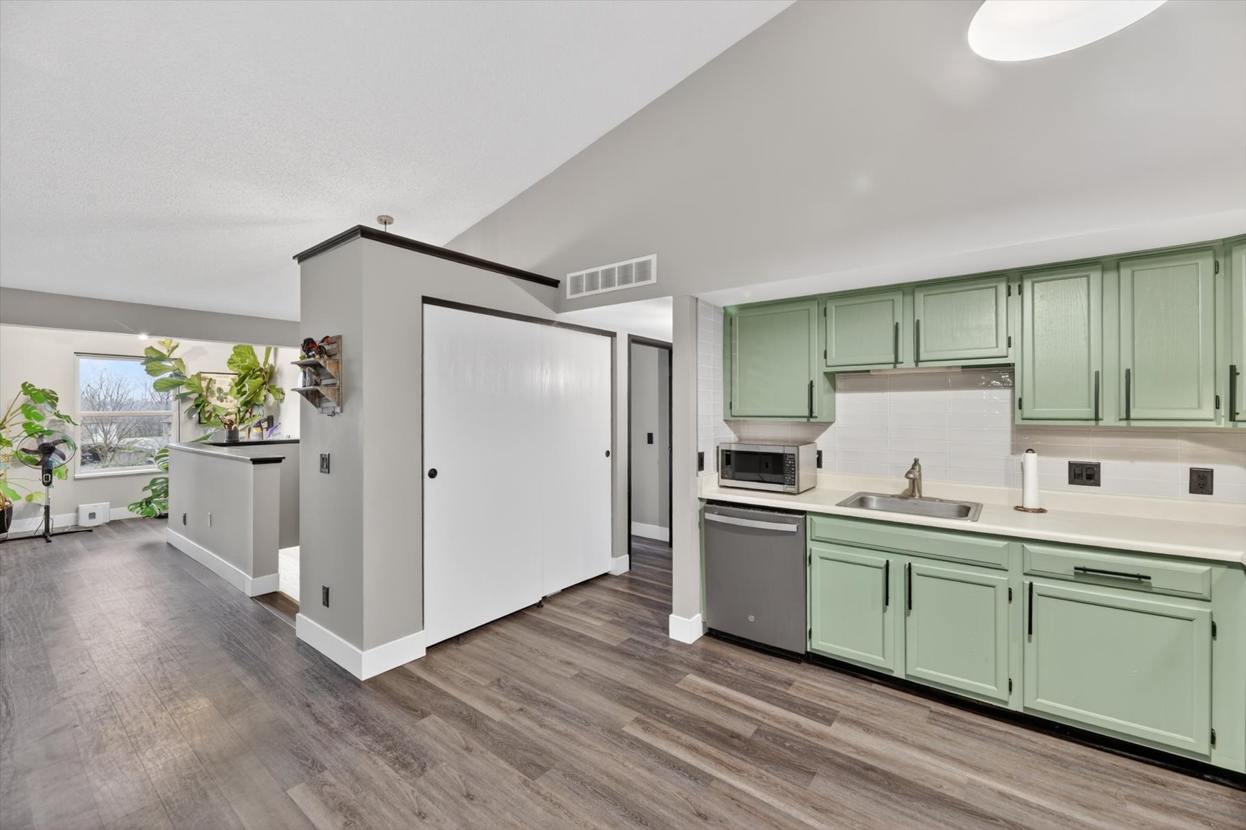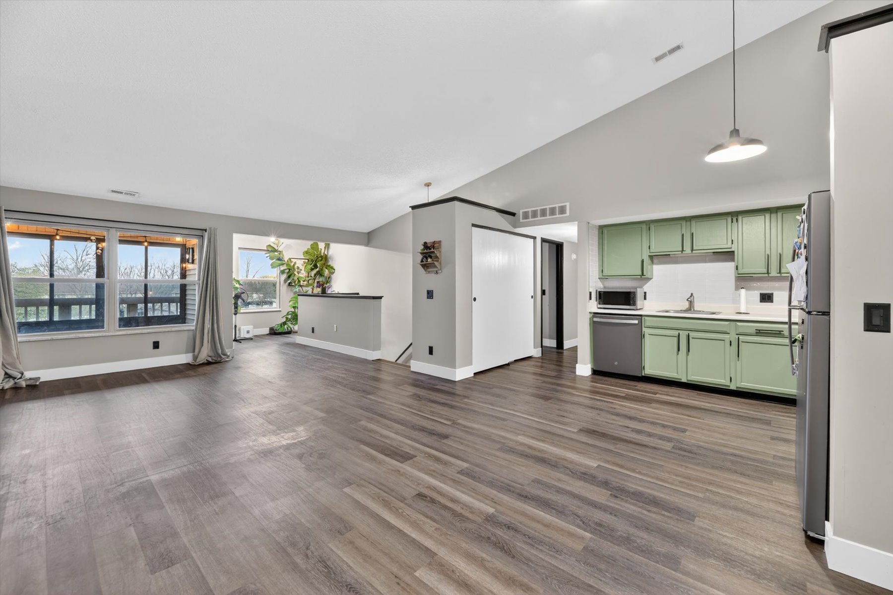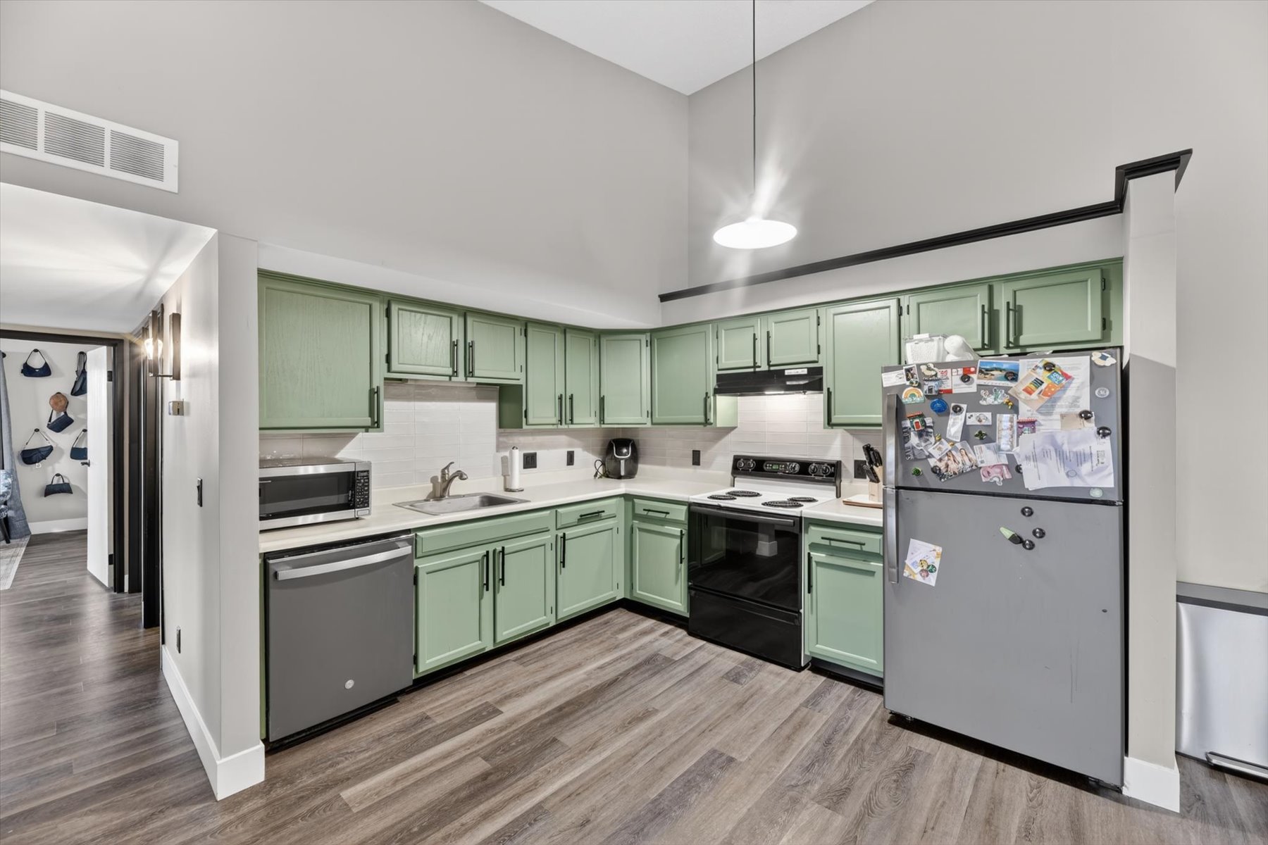 Welcome to this beautifully updated, move-in ready 2-bedroom condo ideally located in the heart of town—just minutes from shopping, dining, and everyday conveniences. This well-maintained home offers a bright, open floor plan featuring a spacious living area, dedicated dining space, and a versatile enclosed patio perfect for relaxing or enjoying three-season living. The generous primary suite is filled with natural light and features a private en-suite bath with new doors, along with a walk-in closet. The kitchen is designed with functionality in mind, offering ample cabinetry, neutral finishes, and brand-new stainless steel appliances including a refrigerator, dishwasher, and microwave. Recent updates include new flooring, a new water softener, and a newly installed fence, providing added comfort and peace of mind. Major mechanicals have been taken care of as well, with a furnace and A/C replaced in 2019. Enjoy community amenities such as a refreshing in-ground pool and nearby walking trails. HOA covers water, sewer, and trash—making for easy, low-maintenance living.