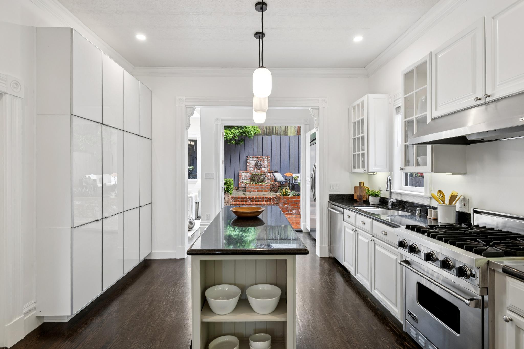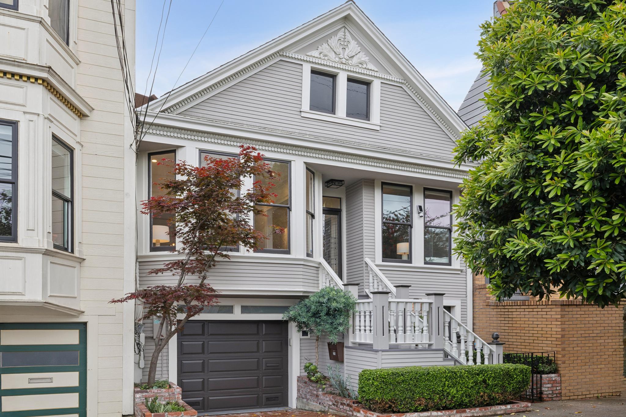 Sitting on a highly coveted, tree-lined block on the North slope of Bernal Heights, 274 Precita is an artfully remodeled and light-filled 3 bedroom 3 bathroom Single Family Home that timelessly blends modern upgrades with period architectural detailing. The main level features 2 bedrooms, formal living and dining rooms, a large chef's kitchen that opens to a stunning informal living room with a ceiling of angled skylights that generously supply the home with natural light. Oversized windows and large glass doors enhance the indoor-outdoor lifestyle and creates seamless flow to the beautiful terraced south-facing garden. The bottom level presents a large primary suite, ample storage, two office/den/flex-use spaces, laundry, and a one-car garage. There is also a large undeveloped attic. 274 Precita offers what few others can as it harmonizes a truly premier location less than a block from Precita Park with a home carefully designed with the joy of every day living in mind.