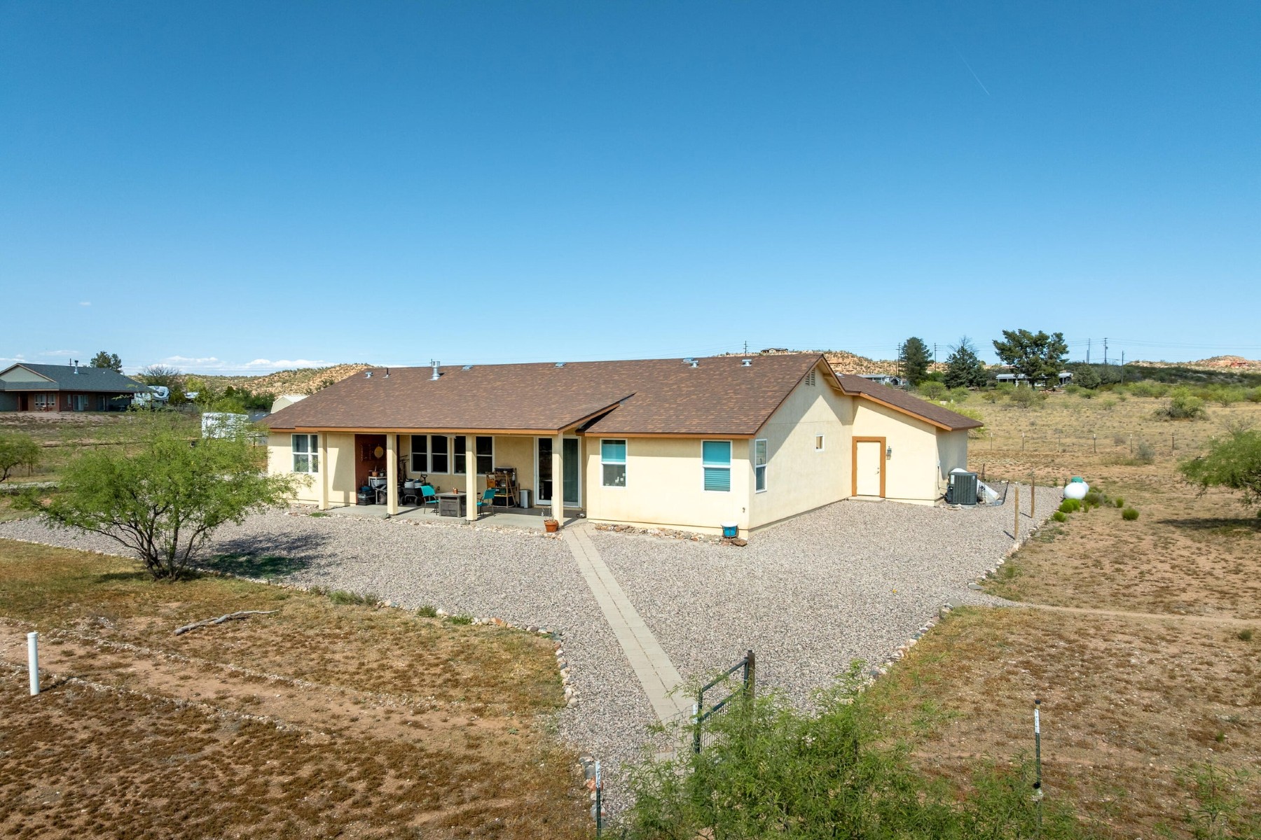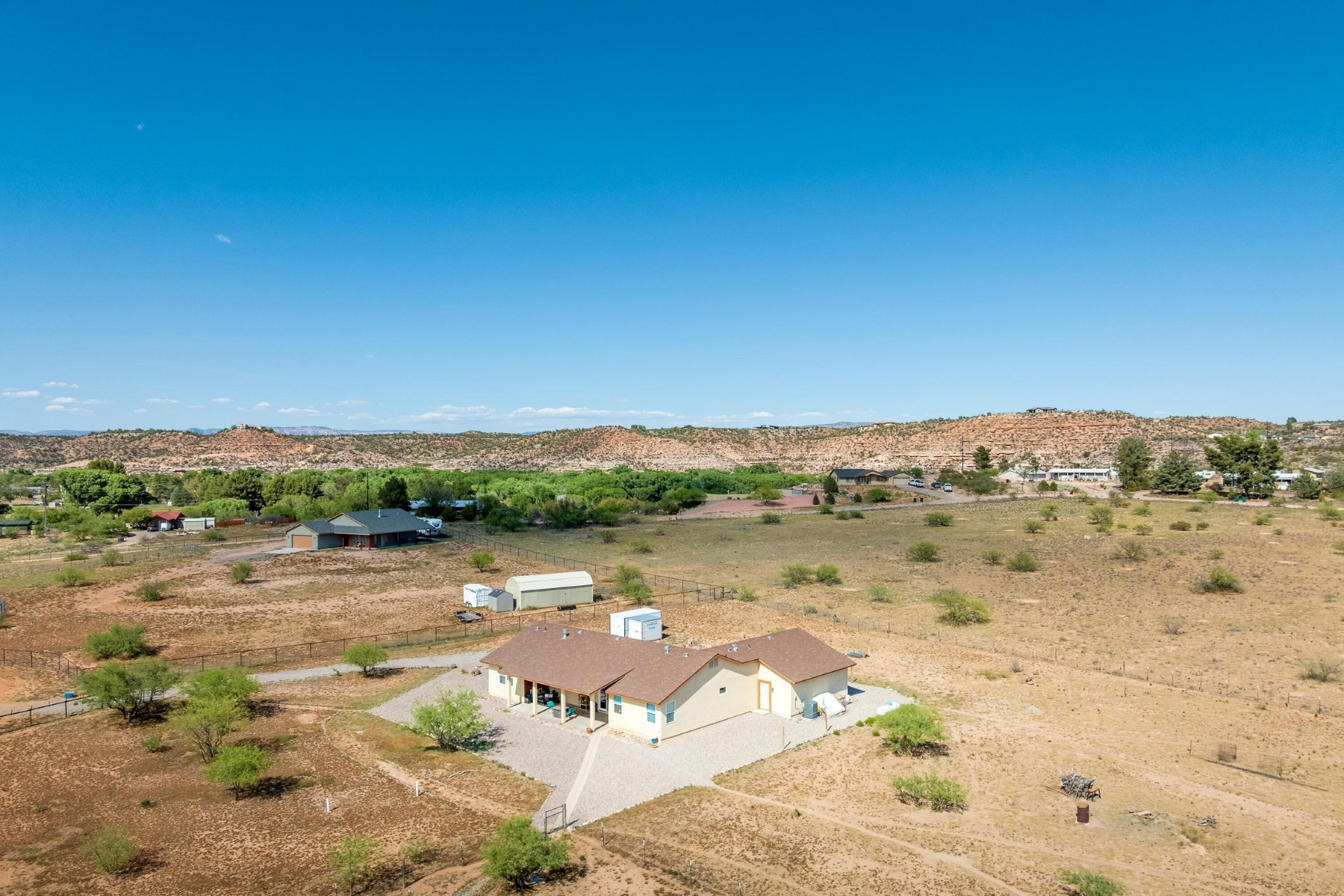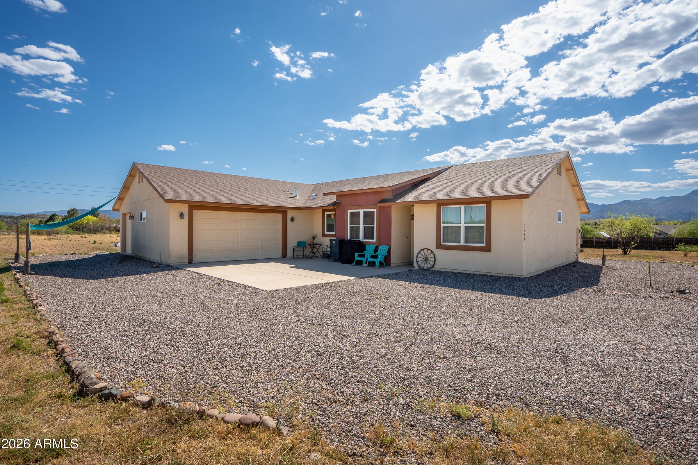 You pull up to 2771 Country Hill Road and it just feels right. Wide open sky, that quiet you cannot fake, and space to actually breathe. Out here in Cornville, the pace slows down in all the ways you hoped it would. Evenings roll in with those unreal western sunsets pouring over Mingus Mountain, and by nightfall the lights of Jerome flicker on like a little secret. This is a no HOA, 4 bedroom home that knows exactly what it is doing. Built in 2019 and dialed in with marble countertops, sharp cabinetry, custom backsplash, and the kind of thoughtful details that make everyday living feel a little more like a reward. The primary suite leans into that spa life with a soaking tub and a walk in shower. Storage is generous, the 3 car garage is ready for all your toys, and the 2019 Trane HVAC system and private water well keep things running smooth and steady. This home is not part of an HOA allowing you the freedom to do as you please.Step outside and it only gets better. Sitting on 2.3 fully fenced acres, this place is ready for your horses, your animals, or just your need for space and freedom. The Verde River is close enough to become part of your routine, whether that means quiet mornings by the water or long afternoons exploring. Hiking trails and horseback riding are right nearby, and the whole Verde Valley opens up around you with vineyards, wildlife, and wide open skies.You are just 10 minutes to Cottonwood for anything you need, but far enough out to feel like you finally got away from it all. Sedona and Jerome are right down the road when you want a little adventure, a good meal, or a reminder of how special this area really is.This is not just a home. It is that Verde Valley Country dream people talk about and rarely find. Come see us soon!