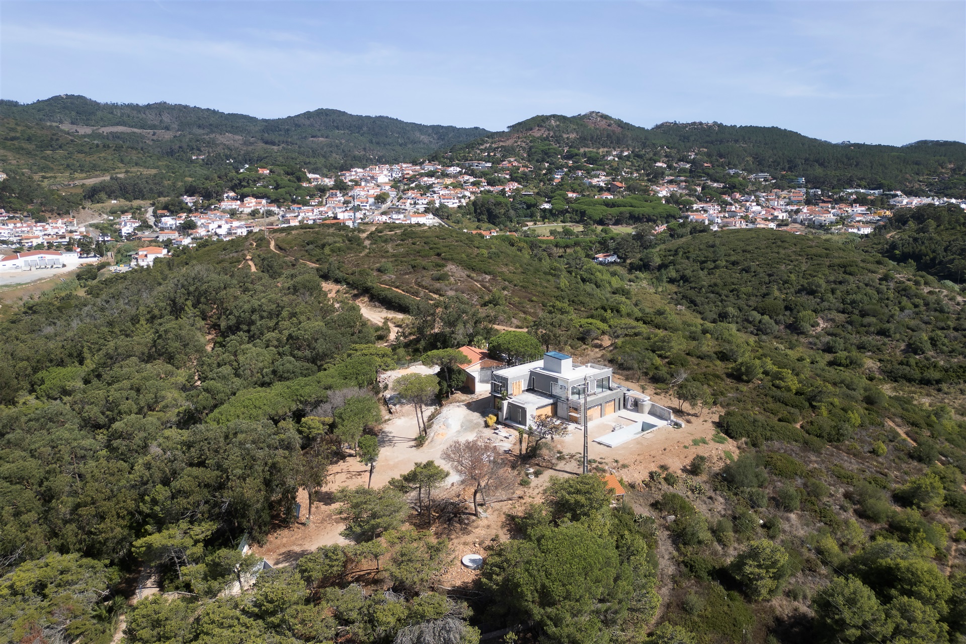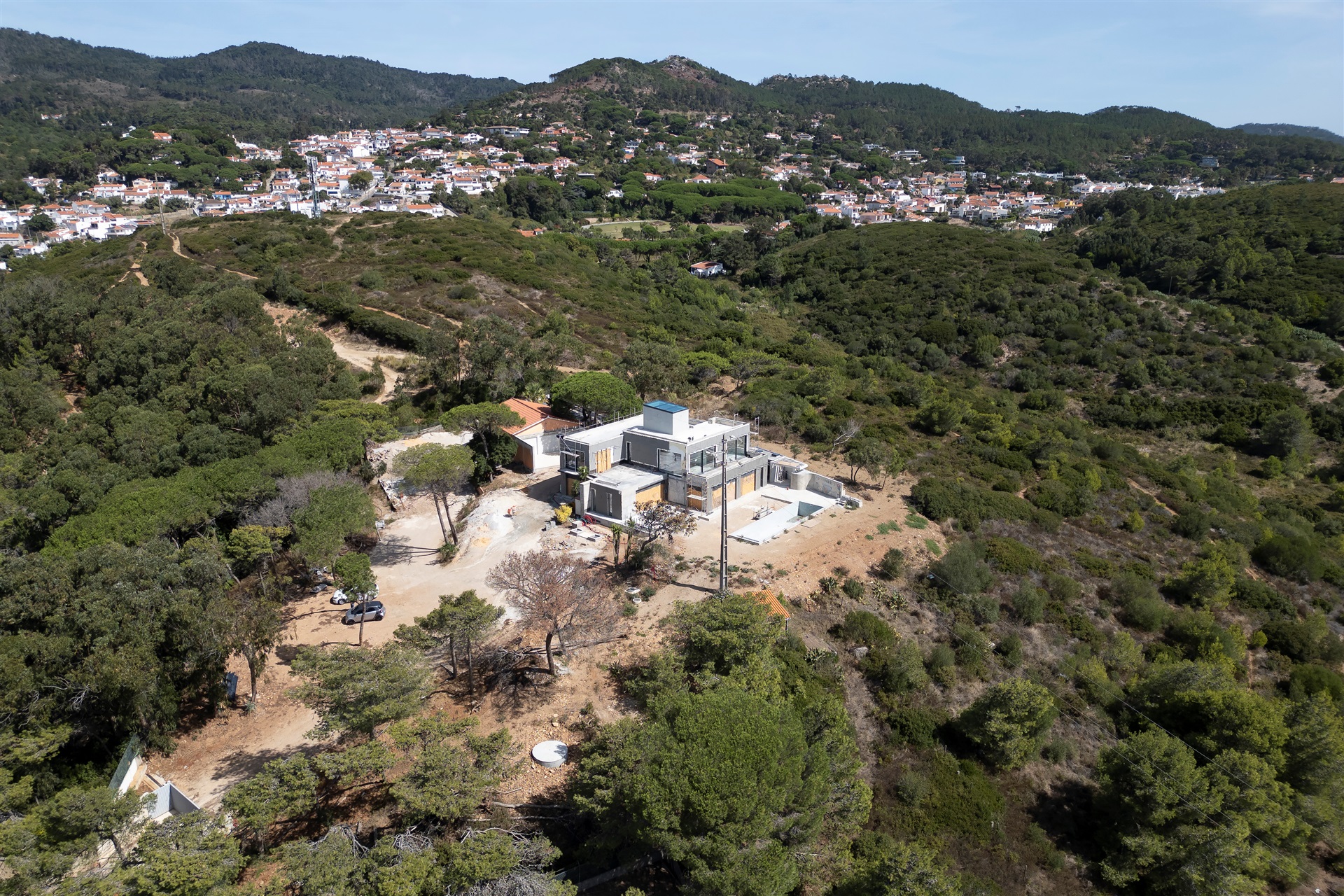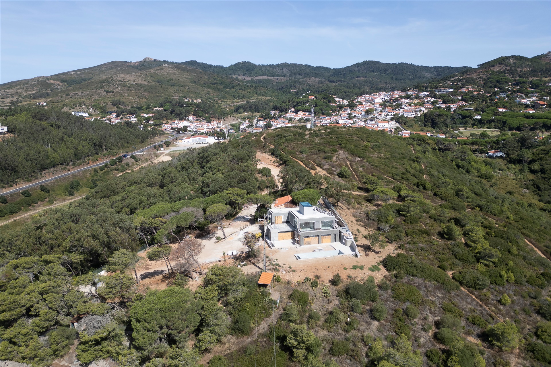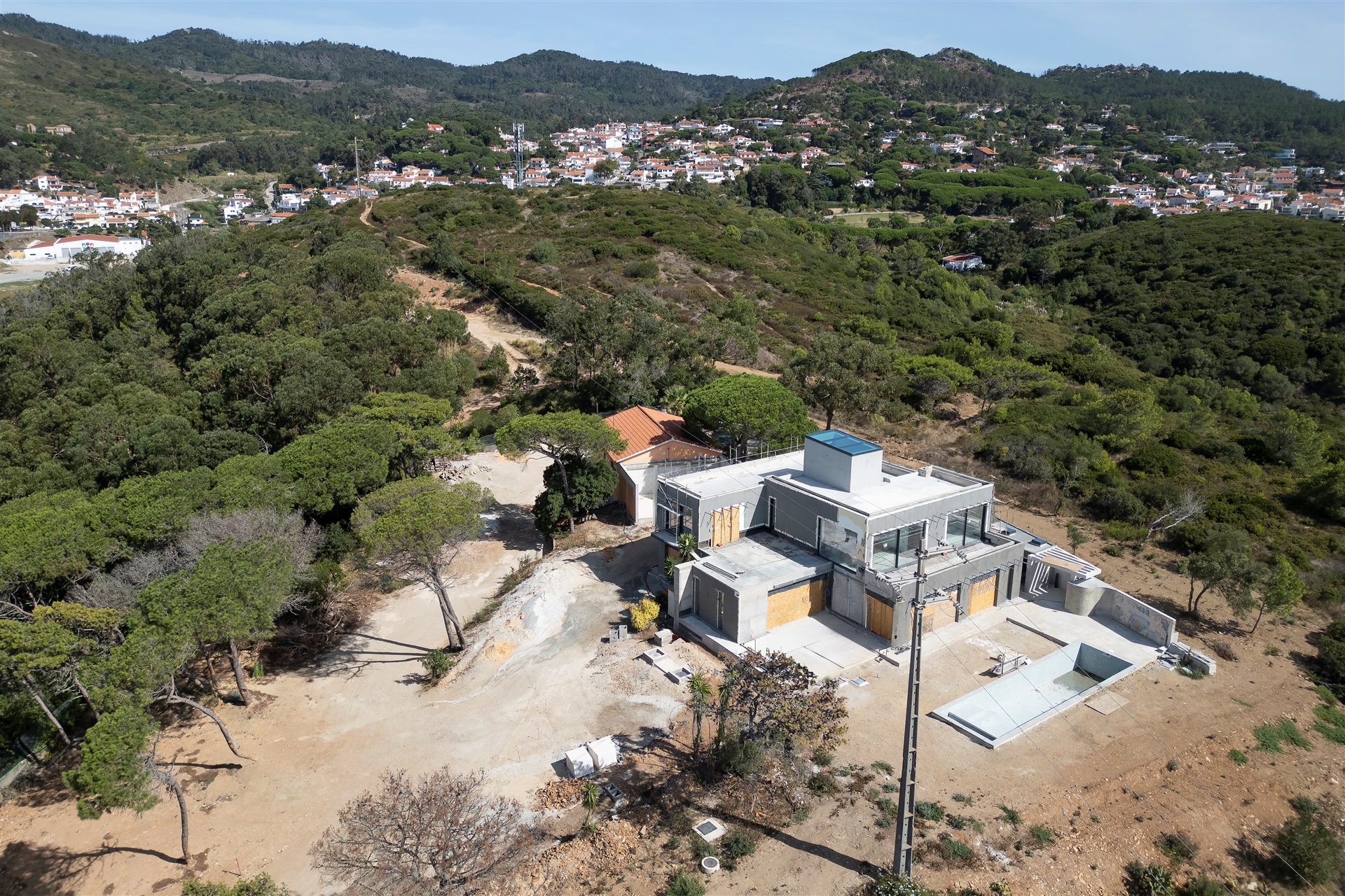 Outstanding and exceptional villa offering approximately 600 sqm of built area, set within a magnificent 5,000 sqm plot. Featuring contemporary architecture with elegant lines, this property boasts breathtaking views over the ocean and the Sintra mountains. The villa comprises five spacious suites, a generous living and dining area, a fully equipped open-plan kitchen, laundry room, and fireplace. Several terraces provide perfect spaces for relaxation and entertaining, while the top floor showcases an exclusive jacuzzi with panoramic views. The exterior is equally impressive, featuring a swimming pool, beautifully landscaped garden, and private parking. Surrounded by lush nature and mature trees, this is undoubtedly a unique and truly stunning property.