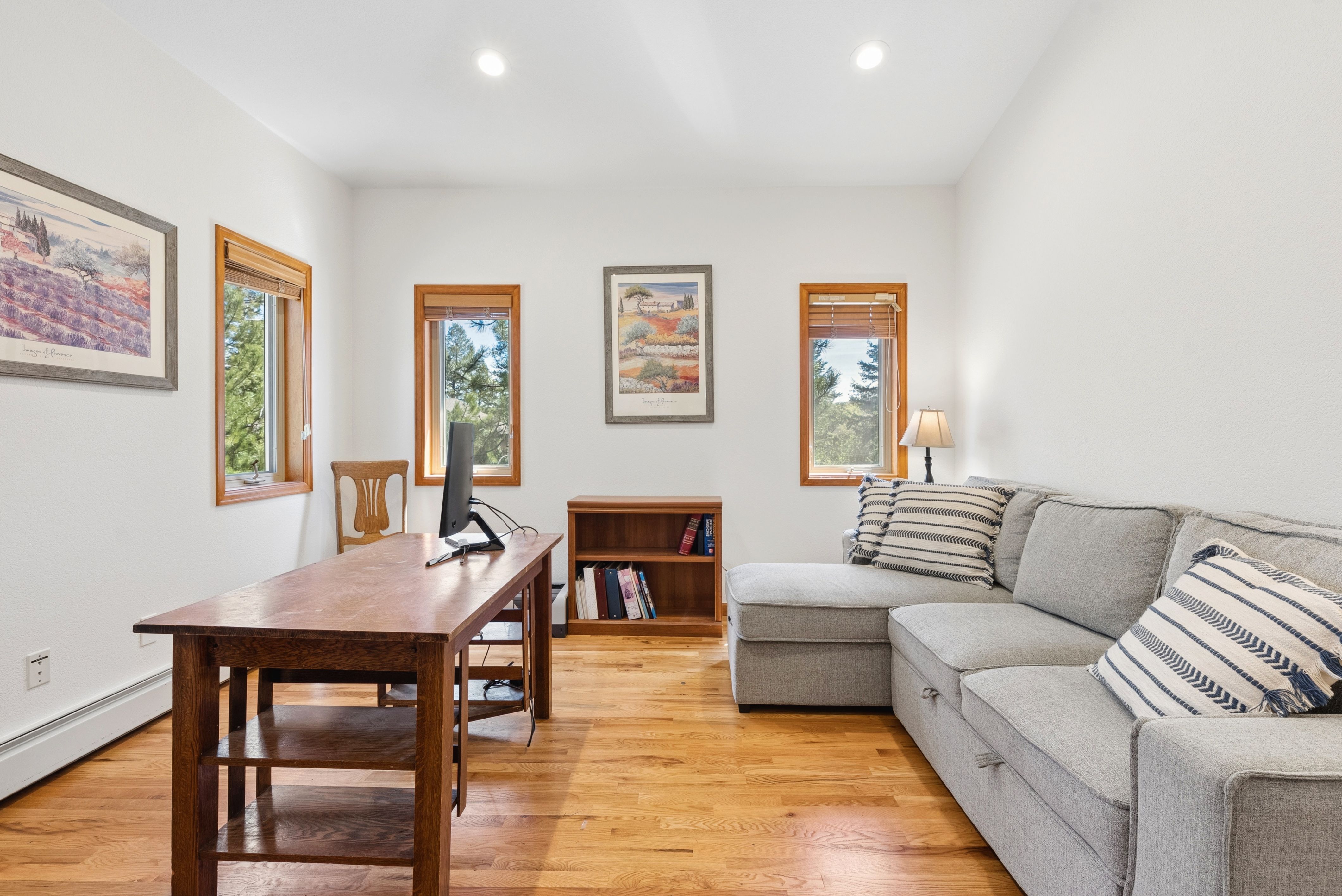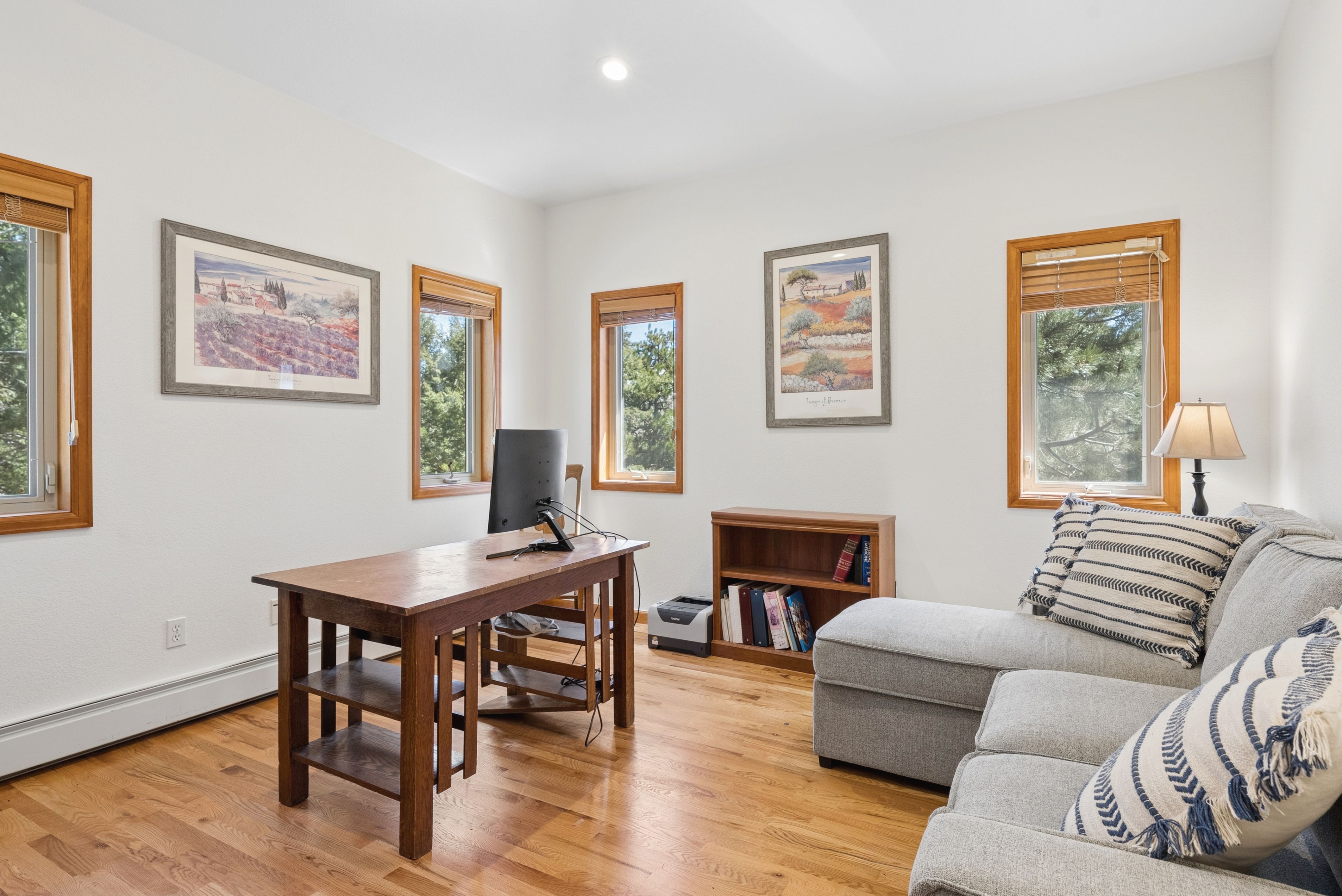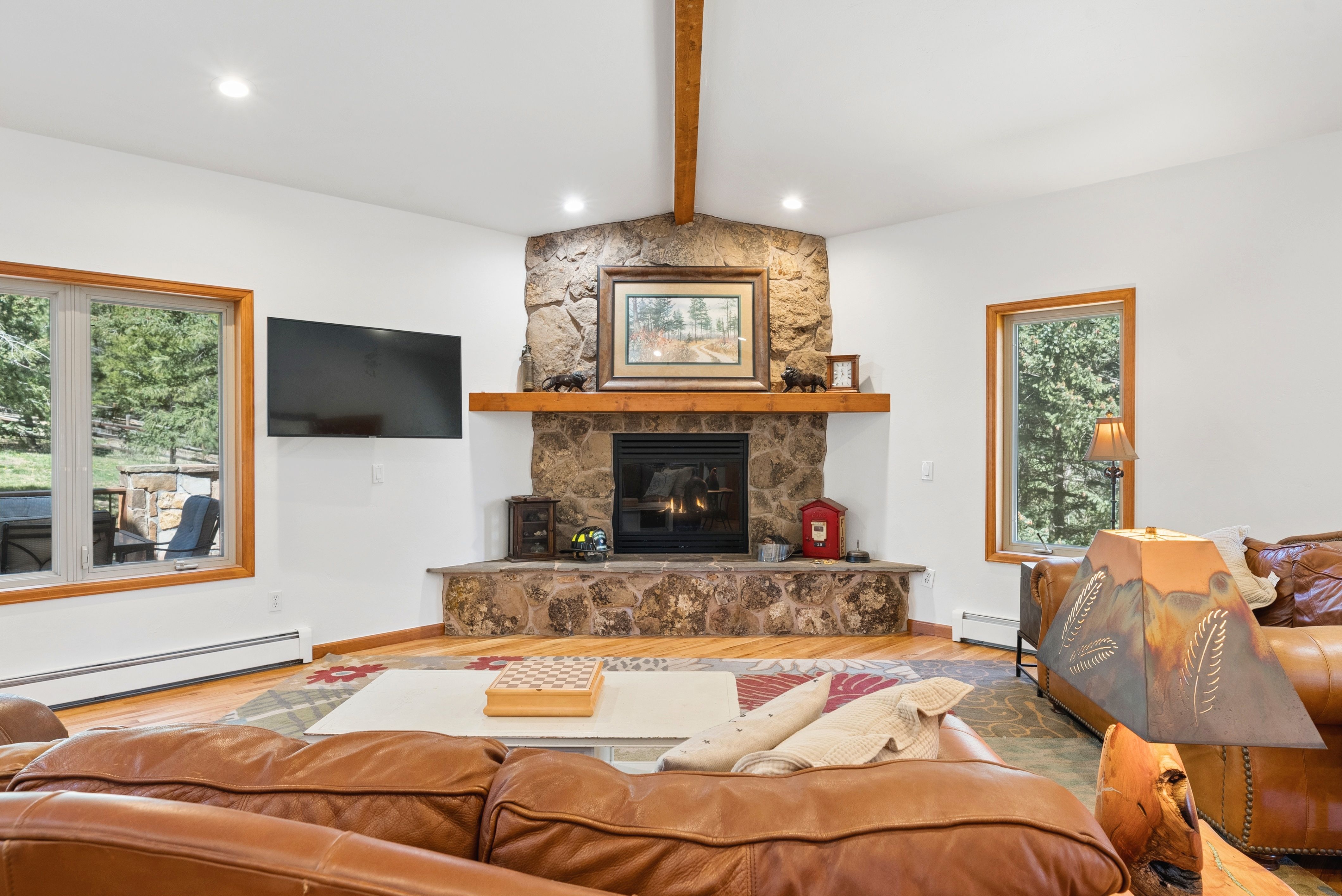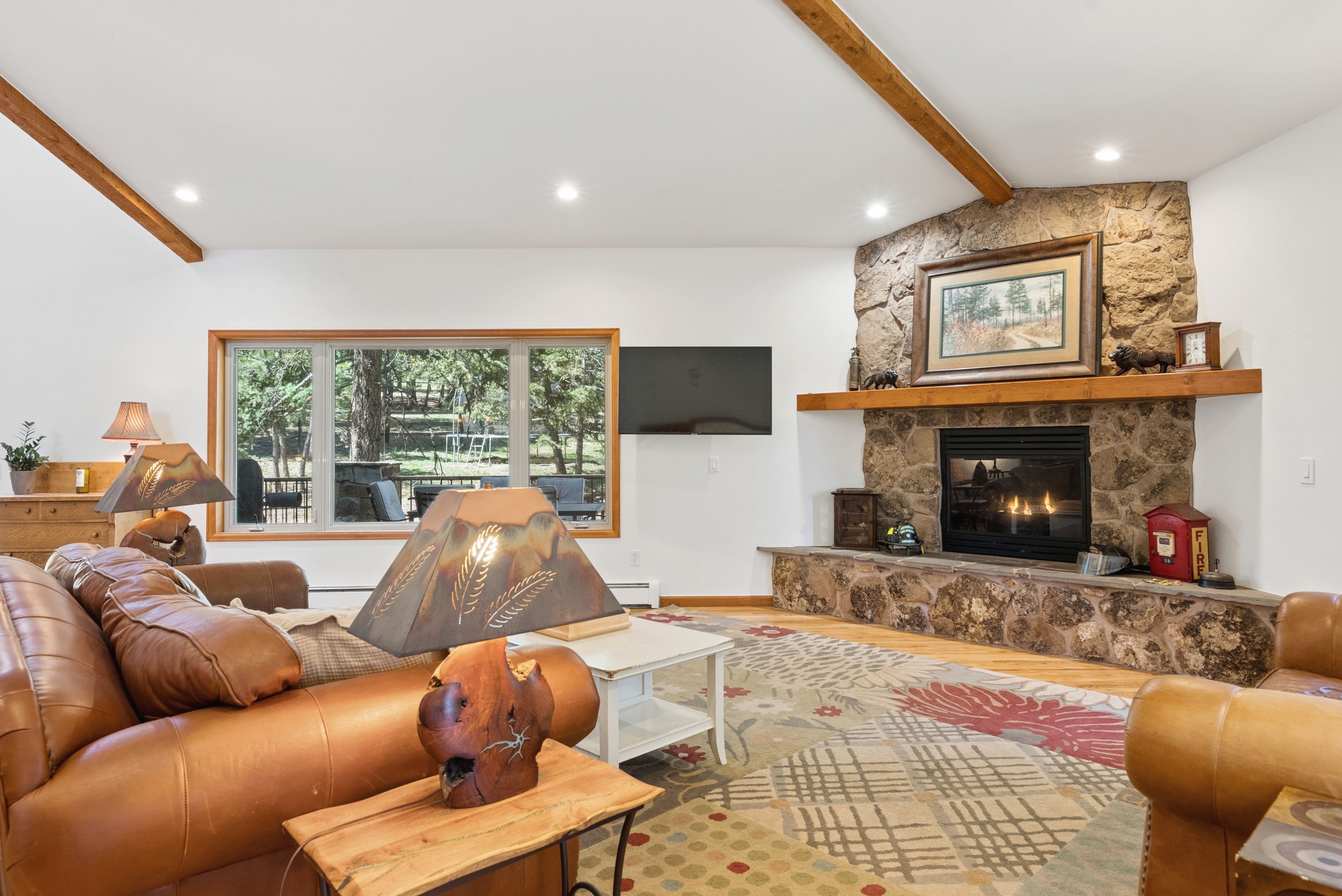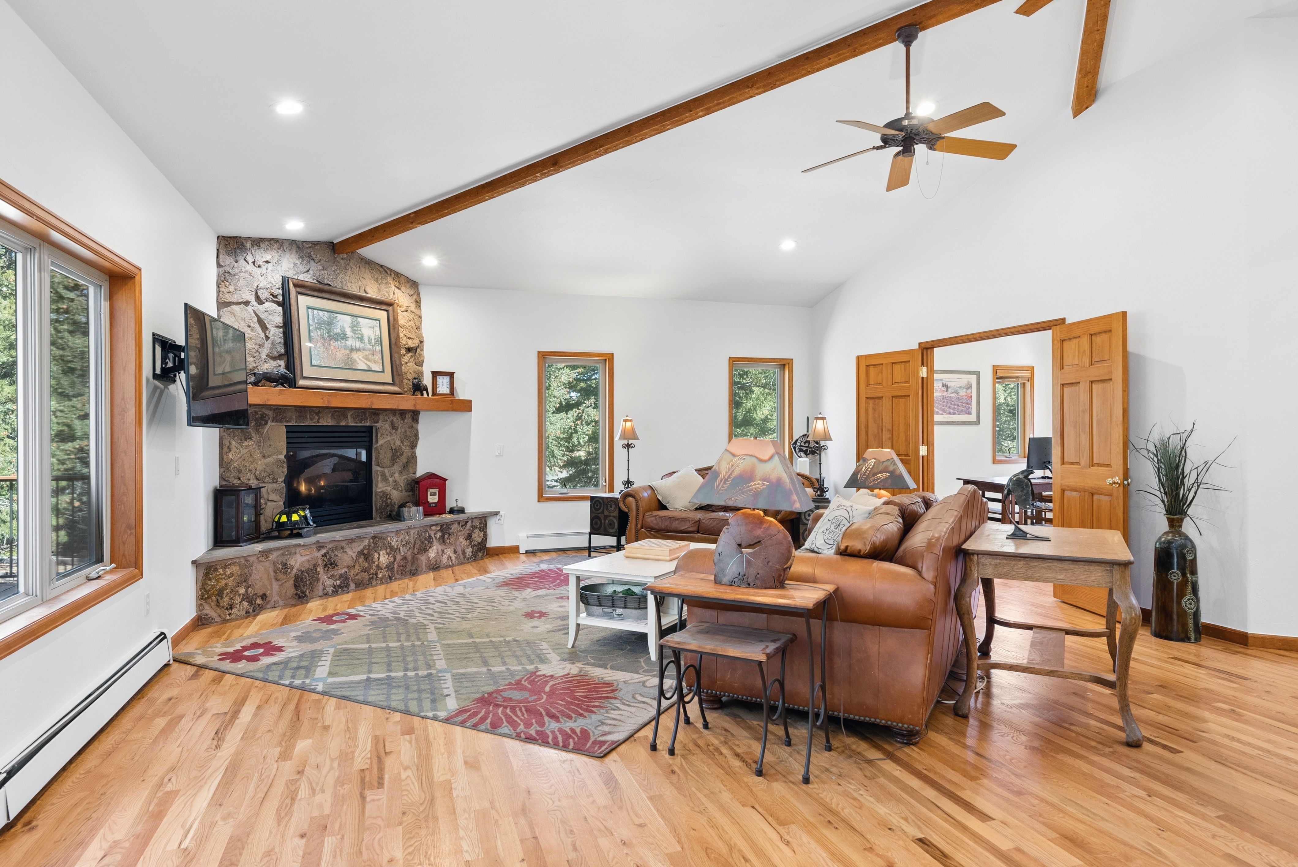 Nestled in one of North Evergreen’s favorable enclaves, The Promontory at Soda Creek offers an exceptional opportunity to experience elevated mountain living with everyday convenience. Set on a level, partially fenced lot, this property delivers a special combination of usability, privacy, and natural beauty. The thoughtfully designed open floor plan showcases exposed beams, graceful archways, and abundant natural light, creating a warm and tastefully curated ambiance. The main level features a spacious great room with a focal point fireplace, an inviting dining area, and a private office—ideal for both productive workdays and relaxed living. The kitchen is both functional and stylish, featuring a large center island, abundant counter space, eat-in dining area, and a comfortable lounge area —perfectly suited for entertaining or daily living. An expansive deck extends the living space outdoors, offering generous seating areas and access to a usable, level yard—ideal for recreation, gatherings, or simply enjoying the peaceful surroundings. Upstairs, three generous sized bedrooms include a well appointed primary suite with vaulted ceilings, gas fireplace, and dual walk-in closets. The ensuite bath provides a private retreat, while the secondary bedrooms share a convenient, dual-access full bath. The lower level with additional exterior, separate entrance enhances flexibility with a spacious family room, guest bedroom, and full bath. A secondary kitchen space and dedicated washer and dryer create an ideal setup for guests, multigenerational living, or private accommodations. The South facing, level driveway with bonus parking turn around spaces provided easy in/out access. With close proximity to Evergreen Recreation Center, hiking/biking trails, parks, schools, hundreds of acres open space—and convenient access to Denver—this home offers a great blend of comfort, versatility, and the very best of Evergreen living.