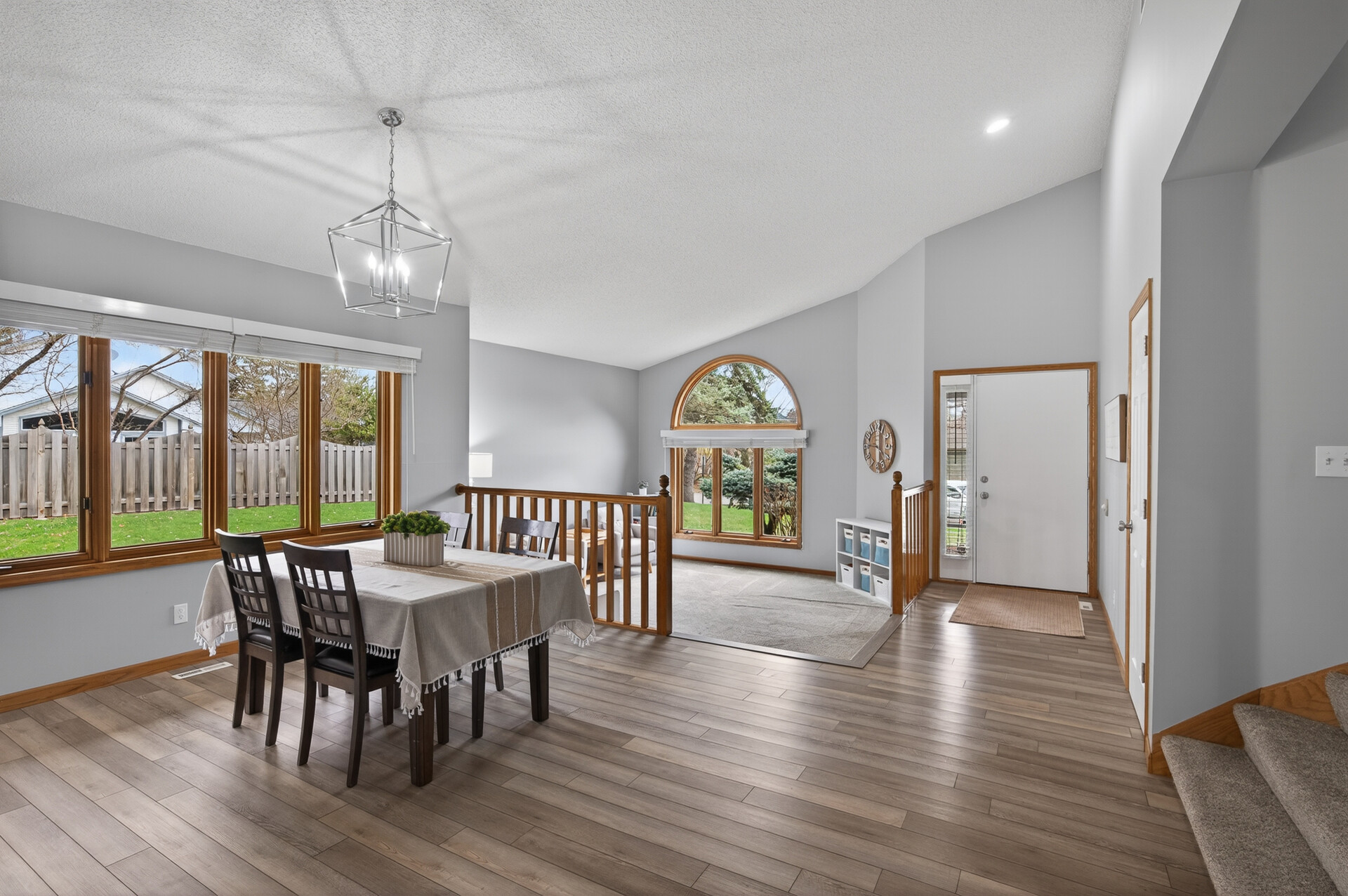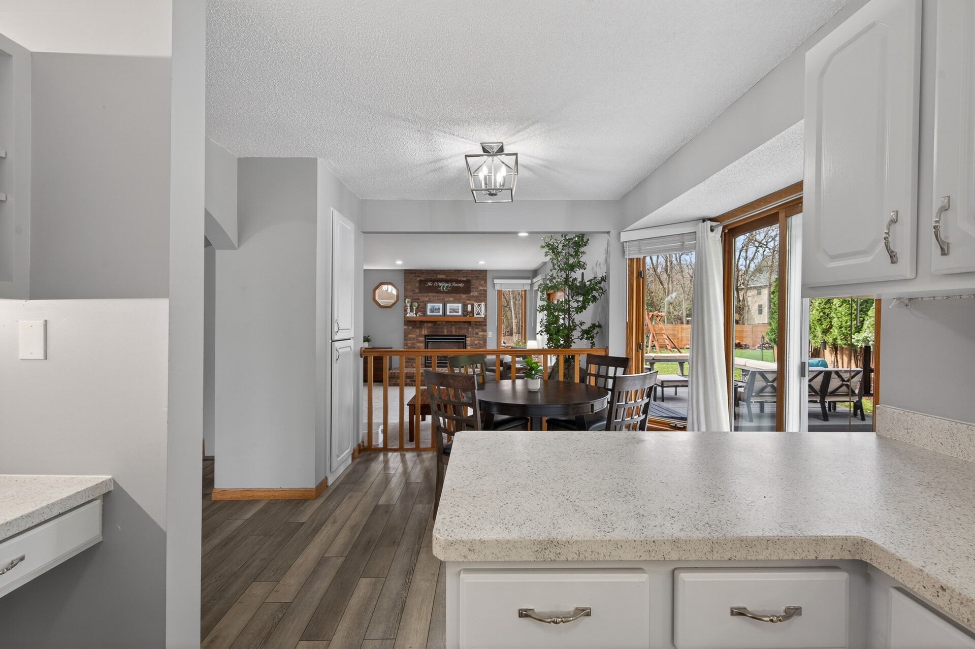 Thoughtfully updated home on an oversized lot tucked at the back of a cul-de-sac. This is the best of life in Eden Prairie with proximity to schools, shops, parks, and lakes. The lot itself is special with mature trees, careful landscaping, a patio and deck for entertaining, a firepit and even a playset. Inside the home is designed for modern living with a breakfast nook just off the kitchen as well as a separate formal dining room. The main floor also has both a formal living room and a large family room which has the fireplace and a sliding door out to the deck. Laundry and a powder room also on the main level. The layout lets you flow easily from space to space but gives each room purpose. All three bedrooms are upstairs with a full bathroom in the hall as well as the primary bathroom. Downstairs is another family room and recreation room as well as a substantial storage room. The newer roof and siding highlight the many recent updates. Enjoy Eden Prairie.