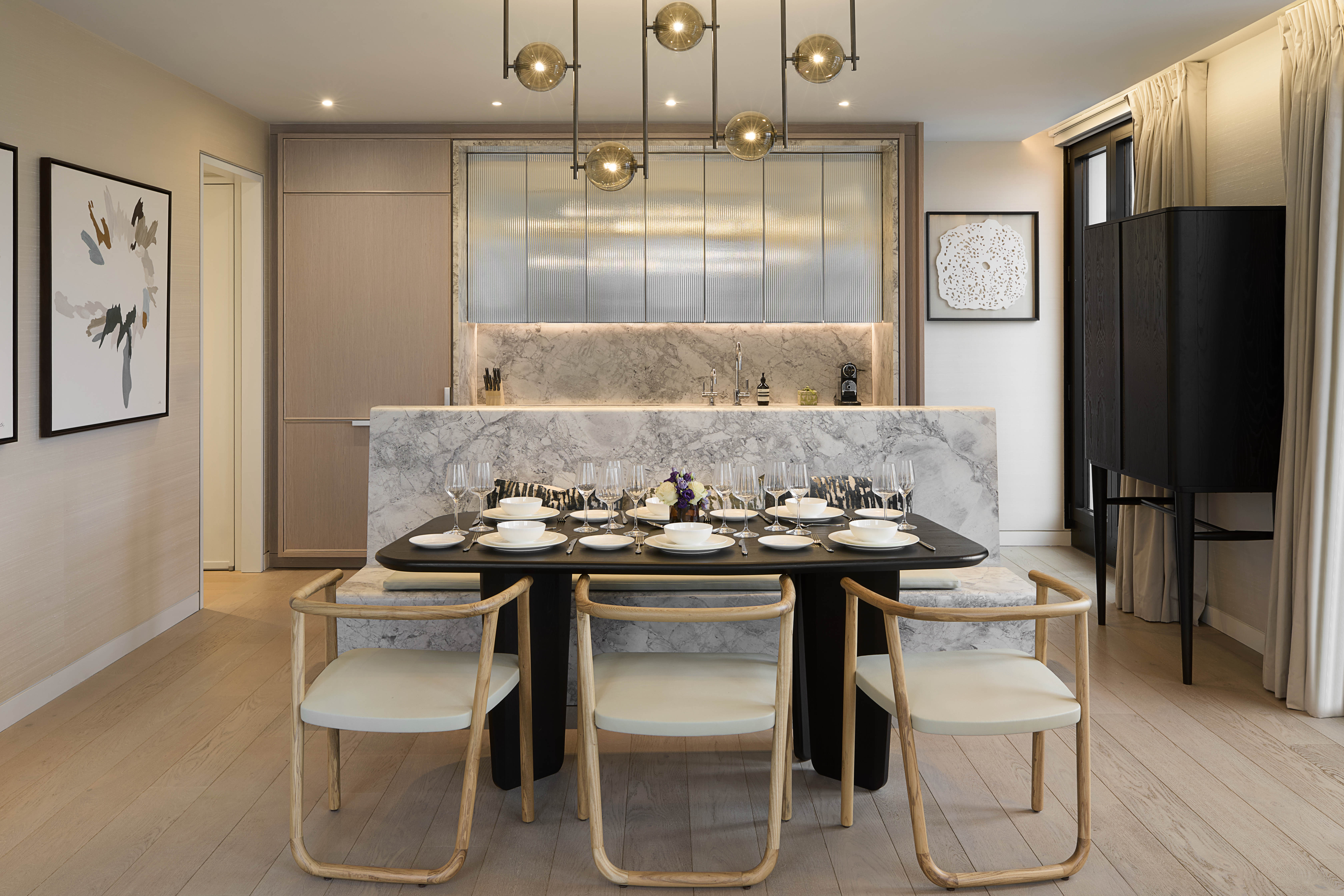 Positioned on the sixth floor of The Residences at The Mandarin Oriental on sought-after Hanover Square, this 982 sq ft. apartment occupies a corner position and is one of the few residences in the development to offer a private terrace. Interiors by Thomas Juul-Hansen combine natural oak flooring, marble finishes, and floor-to-ceiling glazing throughout.