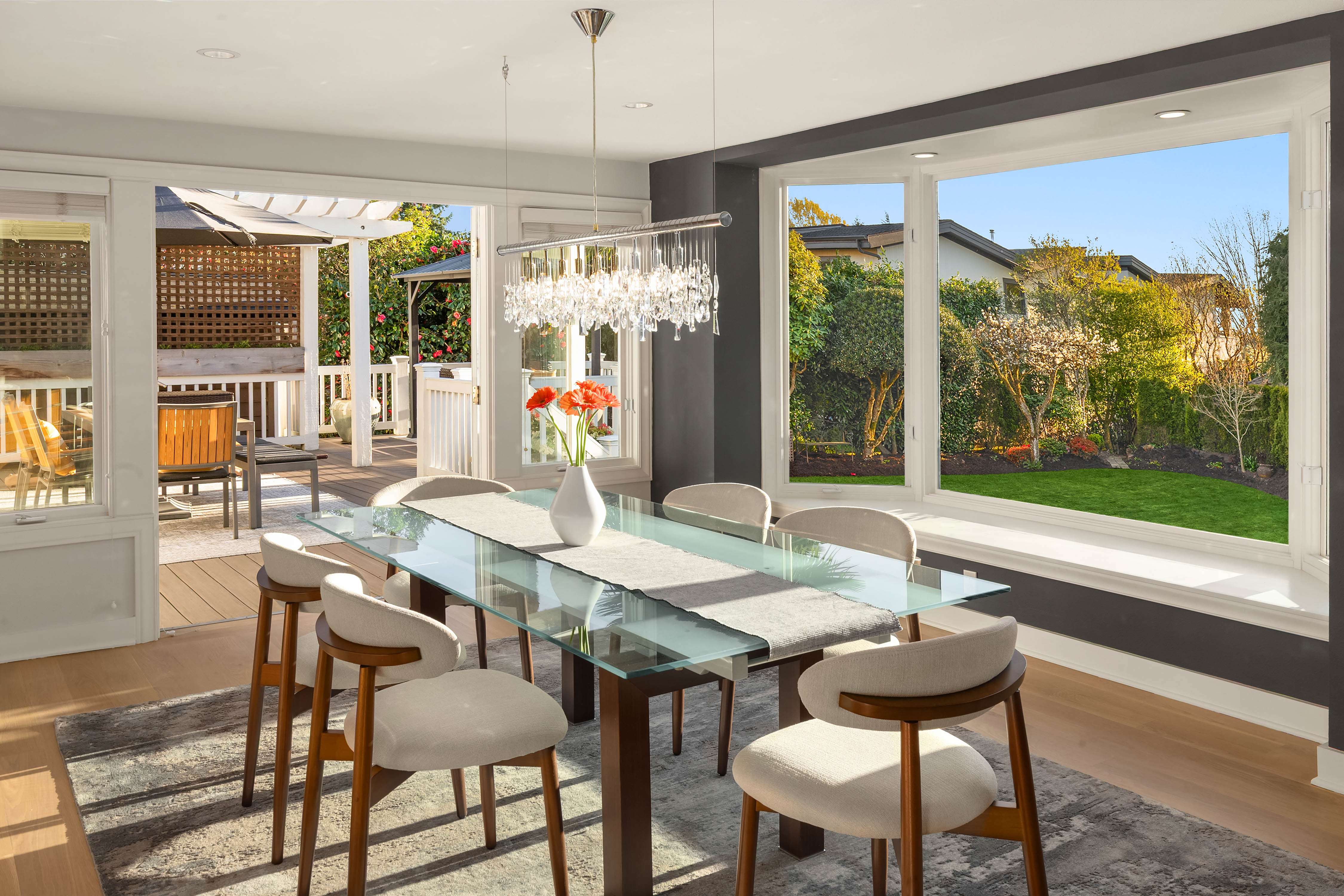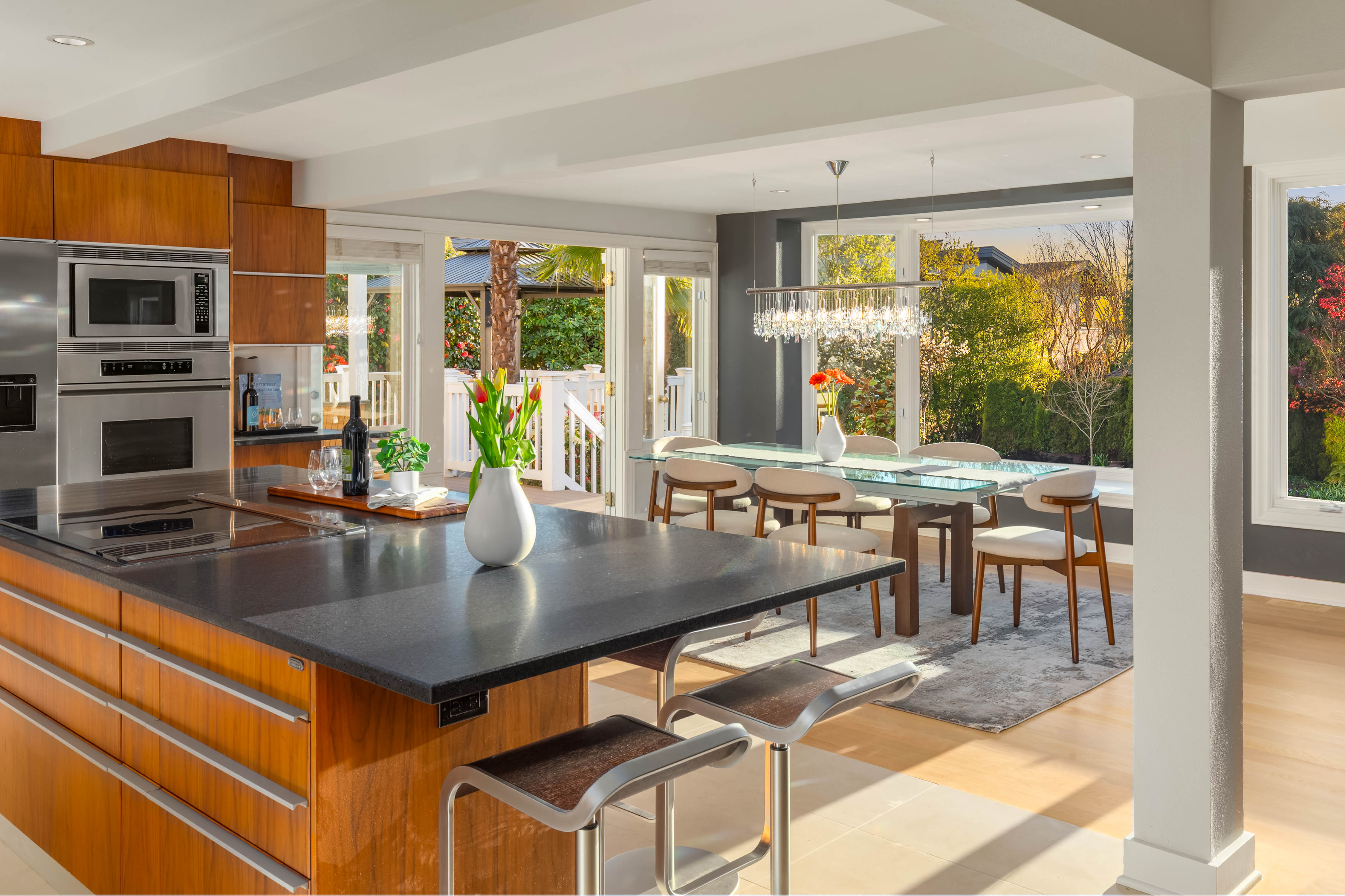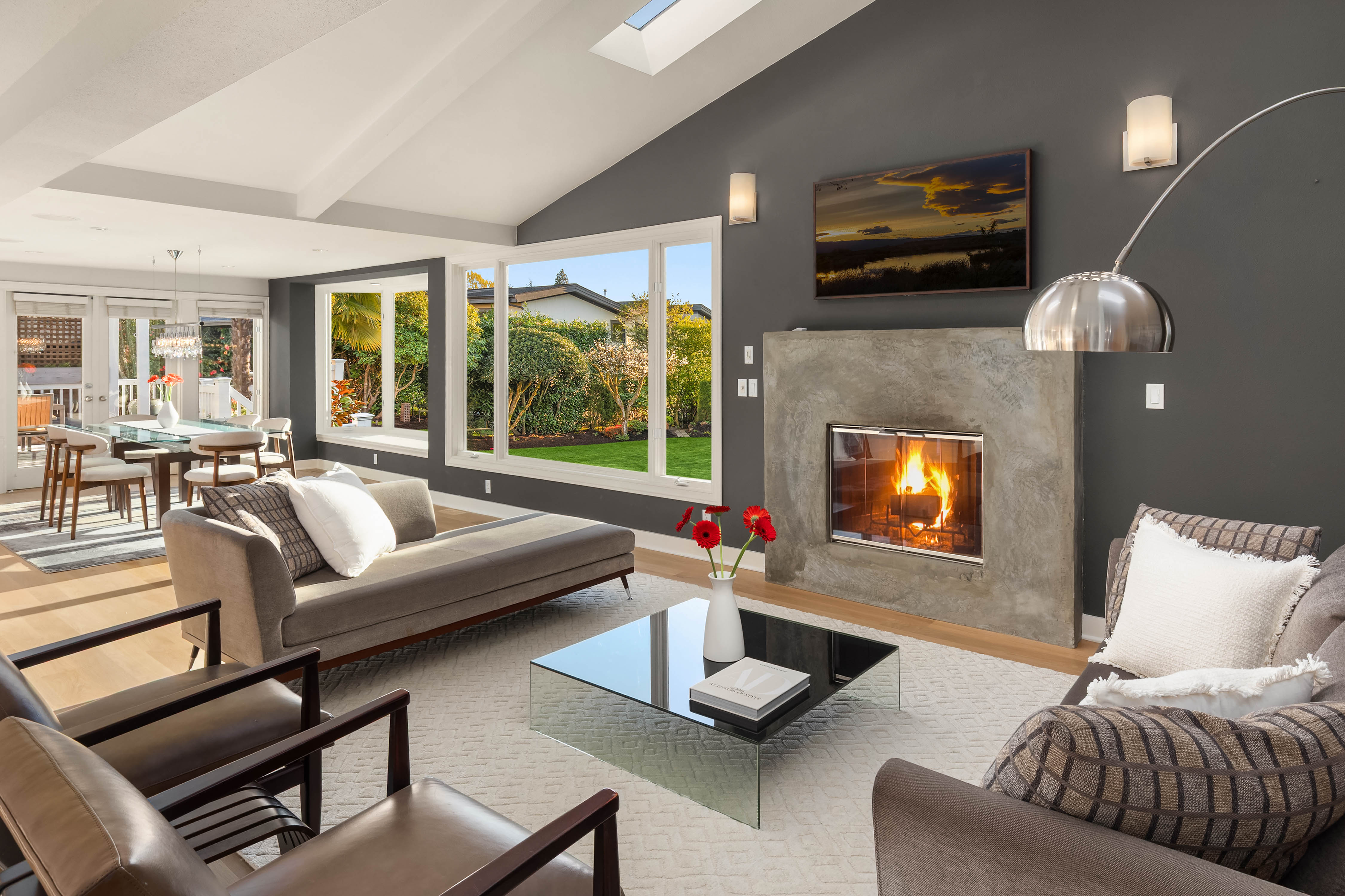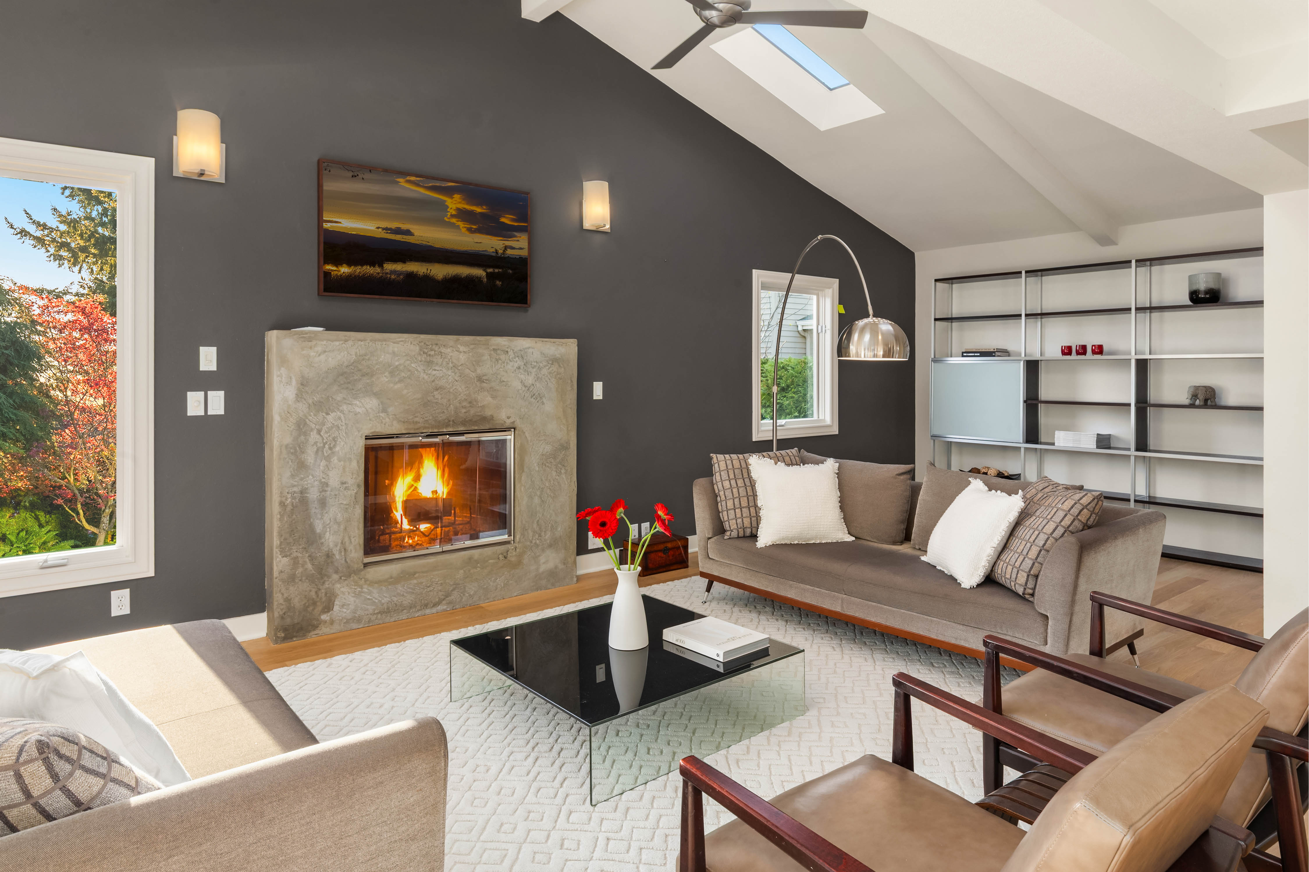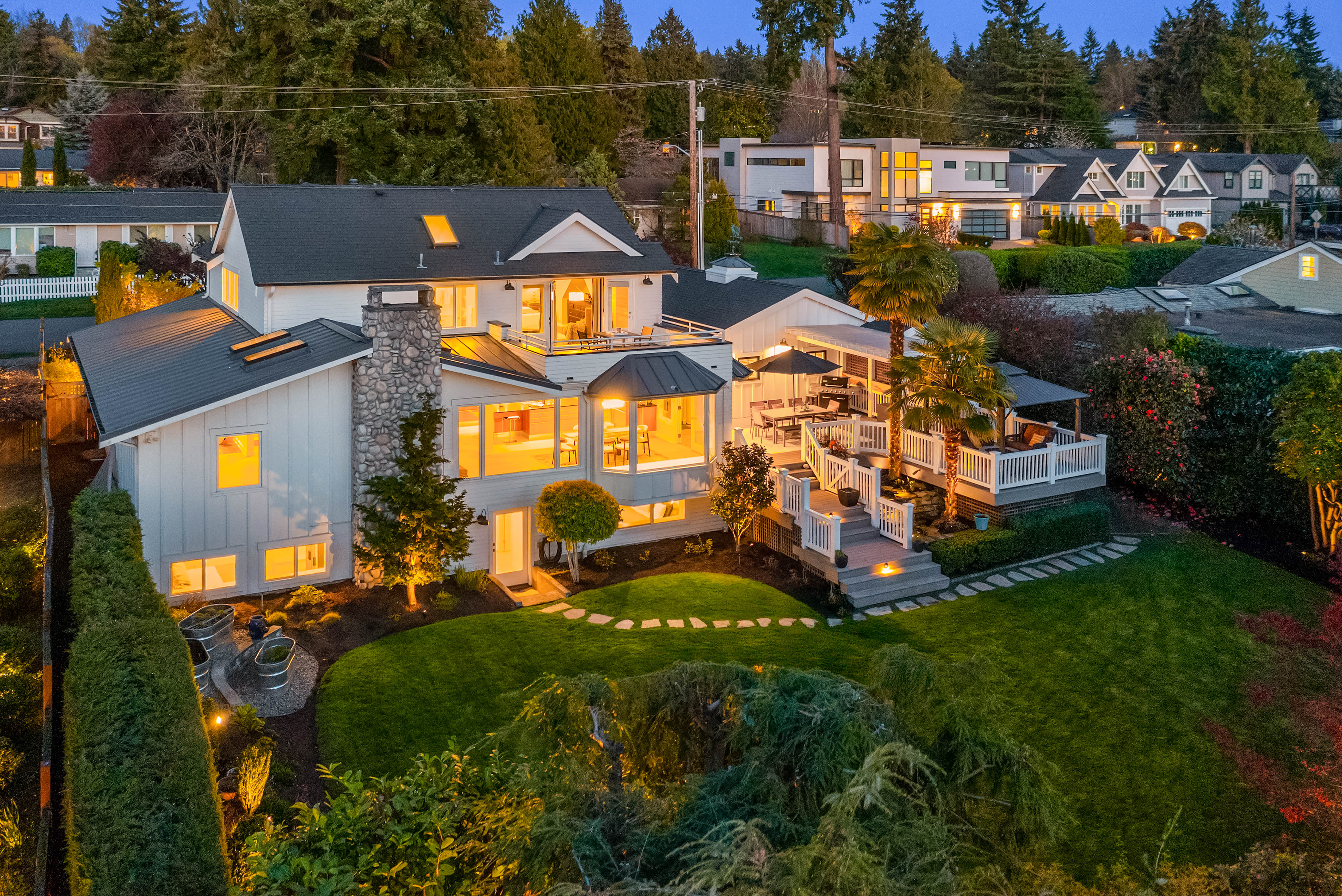 This exceptional Modern Farmhouse with a refined mid-century influence seamlessly blends timeless design with elevated contemporary living in the heart of Houghton. Featuring 4 bedrooms, an office and 3 bathrooms, the home is thoughtfully designed for both effortless entertaining and sophisticated everyday living. At its center, the Danish-designed chef’s kitchen is a true showpiece, highlighted by oversized single-slab granite countertops, premium stainless-steel appliances, and a sleek induction cooktop. Radiant heated tile floors warm the kitchen and entry, while solid white oak hardwoods add warmth and elegance throughout the main living spaces. Expansive windows flood the home with natural light, creating a bright, airy ambiance. Designed for seamless indoor-outdoor living, the spacious entertainment deck extends directly from the kitchen and is surrounded by lush greenery and palm trees, an idyllic setting for hosting or relaxing in complete privacy. The primary suite is a serene retreat, featuring a spa-inspired luxury bath and a custom California Closets system. A private view deck offers stunning sunsets along with captivating mountain and cityscape views. The daylight basement provides exceptional versatility with a separate entrance, ideal for a guest suite, home office, or potential apartment, along with new carpeting and generous storage. Set on a rare 12,500-square-foot level lot, the fully fenced and irrigated grounds create a private outdoor sanctuary. Professionally landscaped with mature plantings, landscape lighting, and a tranquil waterfall reminiscent of an English garden, the property also features a large flat lawn with ample space for a future sport court or pool. Additional highlights include generator readiness, an oversized 2 car garage and parking with space for three vehicles in the driveway plus easy street parking. A peaceful neighborhood setting located just minutes from Metropolitan Market, Starbucks, and the International School, with a 15-minute stroll to Houghton Beach and quick access to the Kirkland Cross Corridor. Close to Google and an easy commute to Microsoft and Amazon, all within the award-winning Lake Washington School District. A rare opportunity to own a private sanctuary in one of Kirkland’s most sought-after neighborhoods, where lifestyle, location, and design come together beautifully.